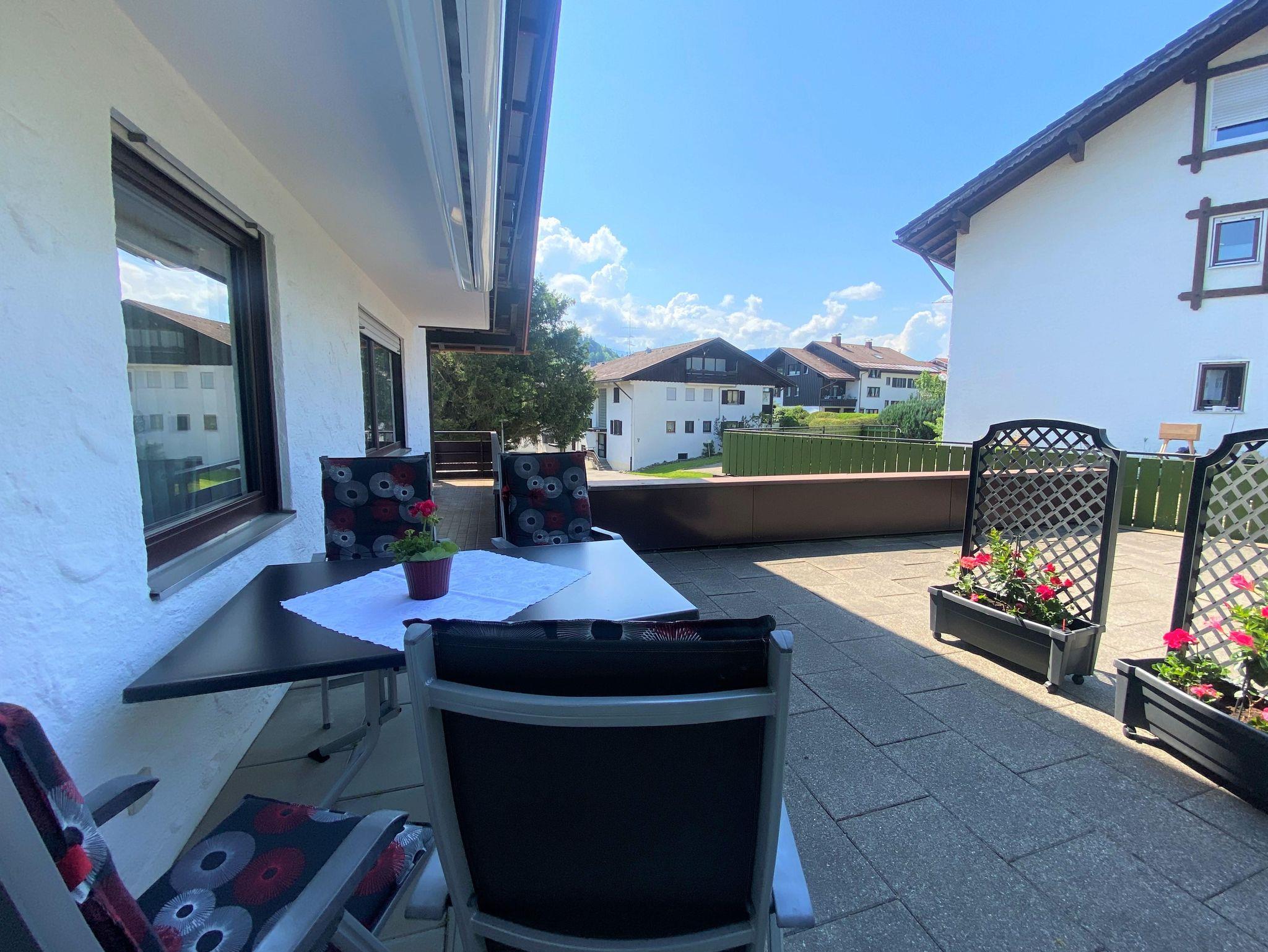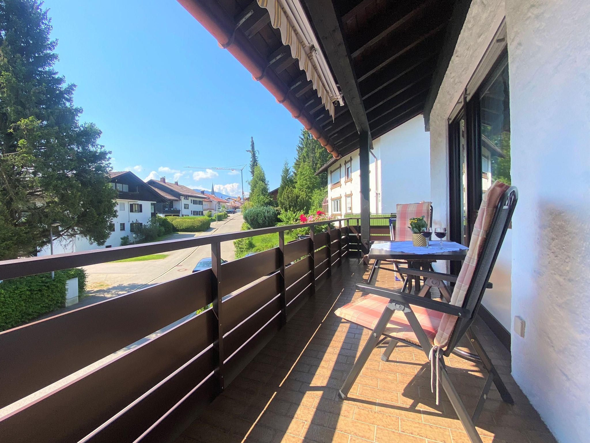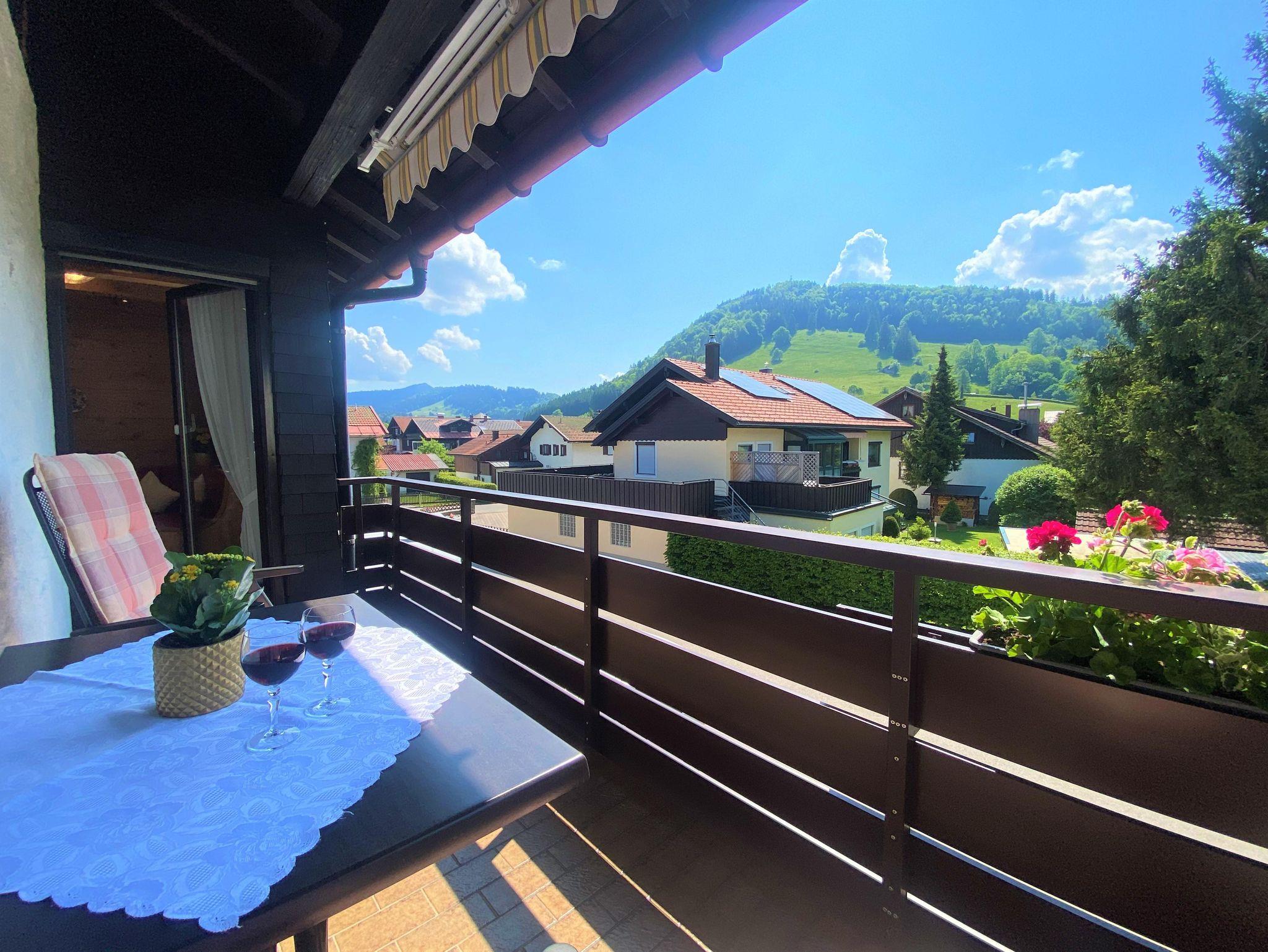 Ein großer Rundumbalkon mit Tischgarnitur und eine große Terrasse bietet Ihnen zu jeder Jahreszeit herrliche Sicht auf die umliegenden Berge.