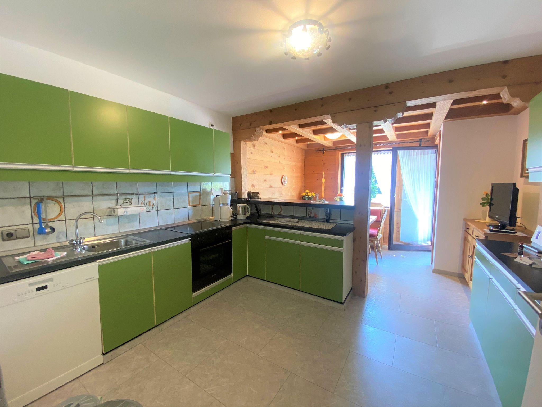 Küche, komplett mit Herd, Spülmaschine, Mikrowelle usw. ausgestattet. Rustikale Essecke mit Eckbank/Tisch und Theke. Kabel-TV, Durchwahltelefon,
