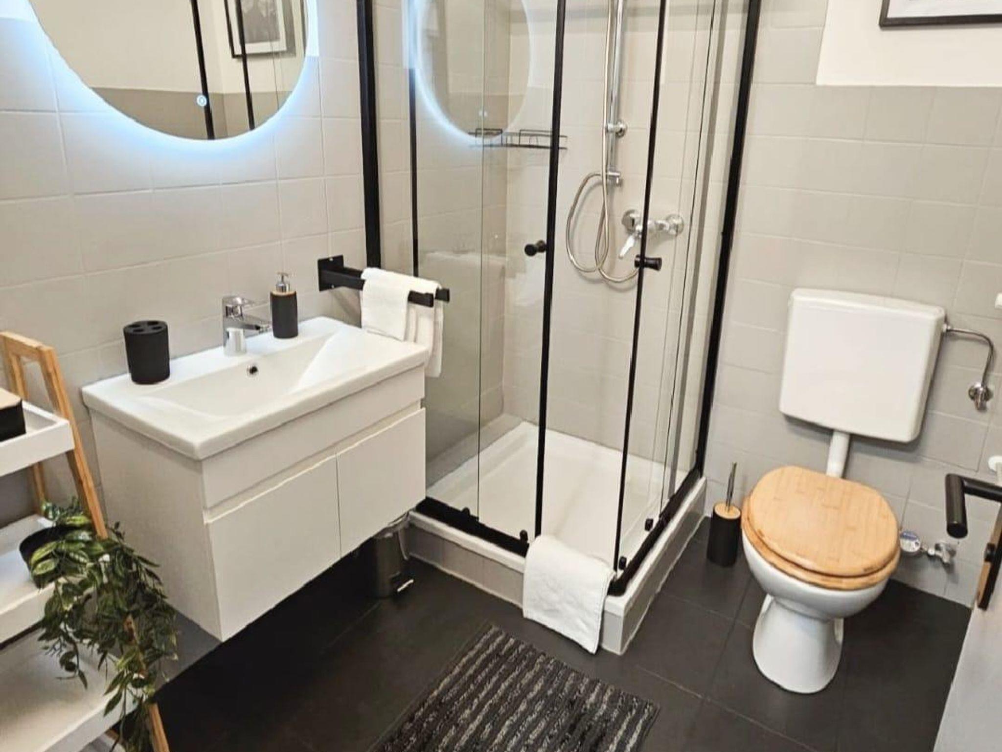 Die moderne Wohnung verfügt über 30qm Wohnfläche. Ein Schlafbereich für 2 Personen mit 160x200 Boxspringbett bietet durch einen Trennvorhang Privatsphäre.Das Wohnzimmer bietet Ihnen eine Schlafcouch für weitere 2 Personen (160x200) mit TV,WLAN und kostenlose Netflix.Wir stellen Ihnen Handtücher und Bettwäsche zur Verfügung.Sie erwarten eine grosse Küche mit allem Geräte(Kaffe und Tee inkl.),eine Esstisch sowie ein Badezimmer mit Dusche.