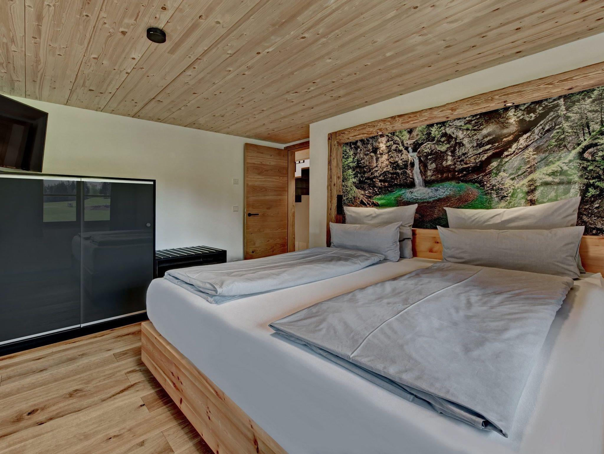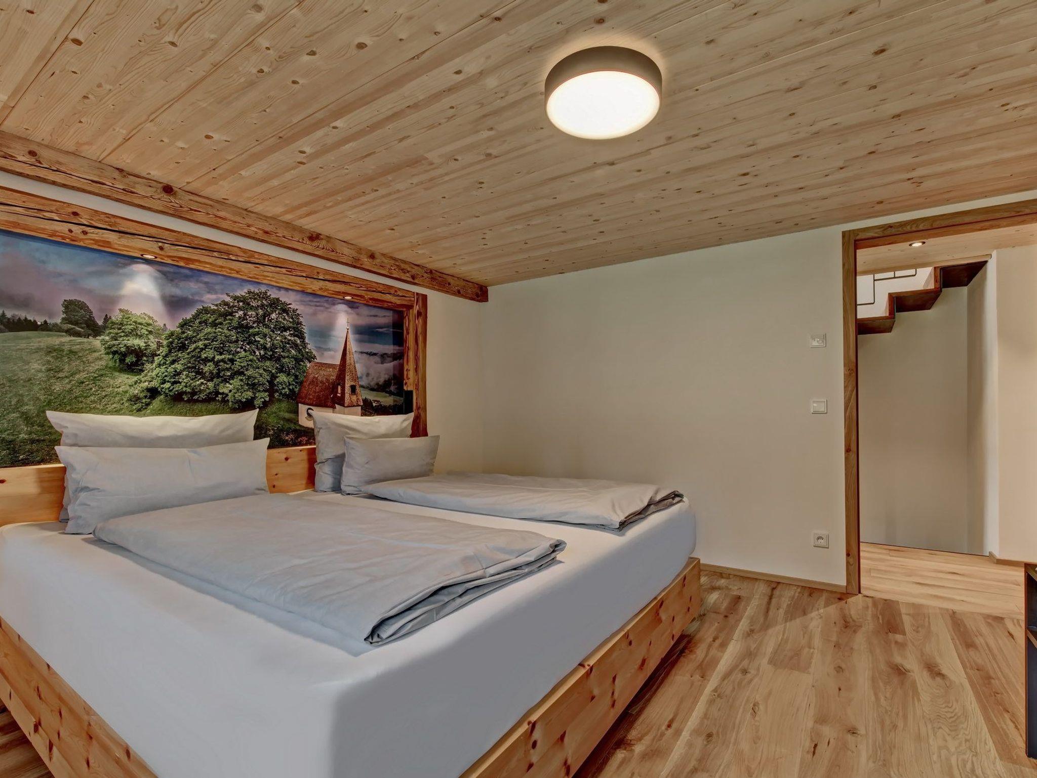 In den 3 Schlafzimmern erwartet sie je ein King-Size Doppelbett (200x200) mit wohlig weichen und bequemen Zirbelholz-Boxspringbetten, eingefasst in schickem Altholz. Bei Bedarf können Sie gerne auch Babybetten für Kinder bis maximal 3 Jahren bei uns buchen.