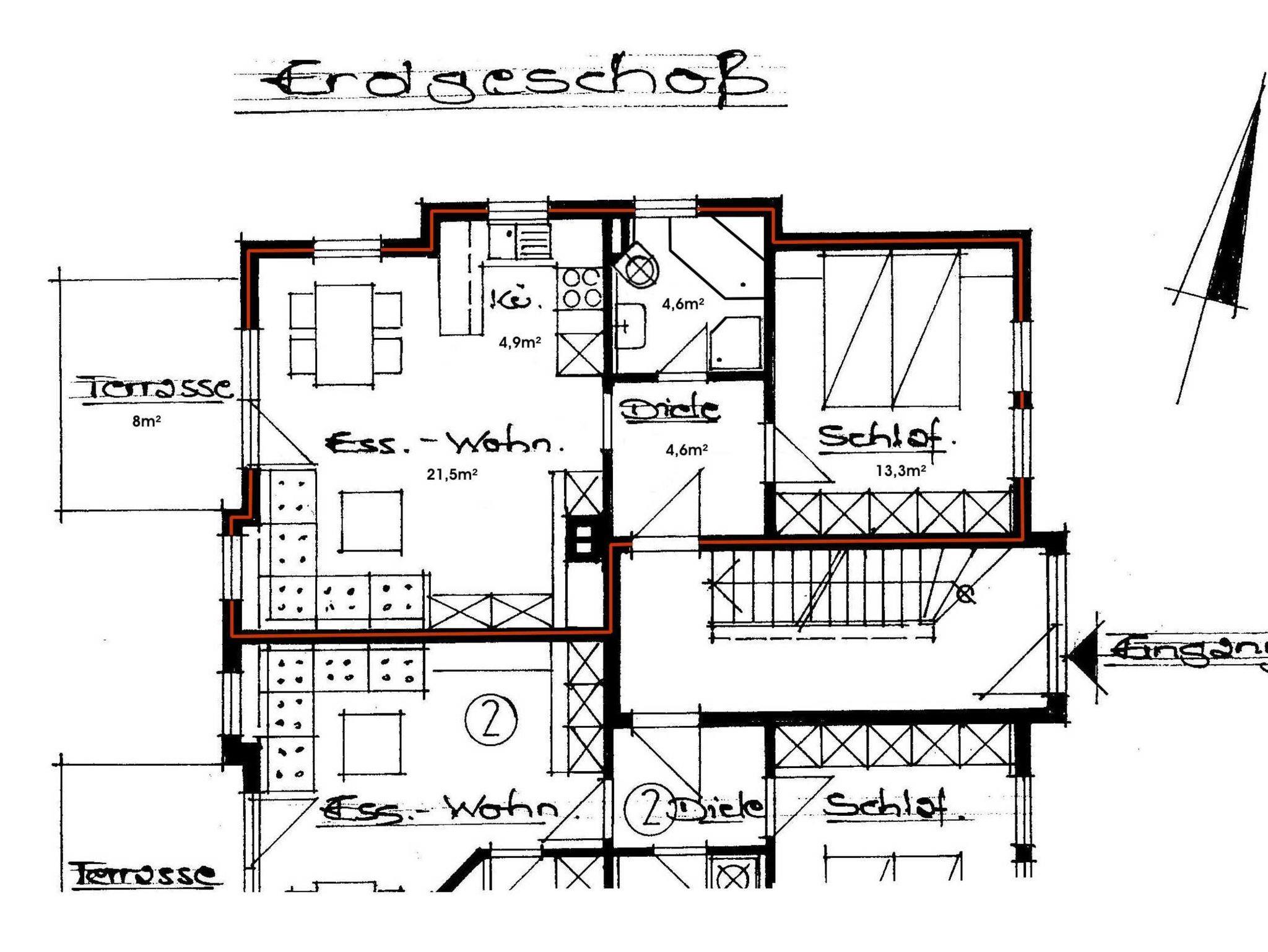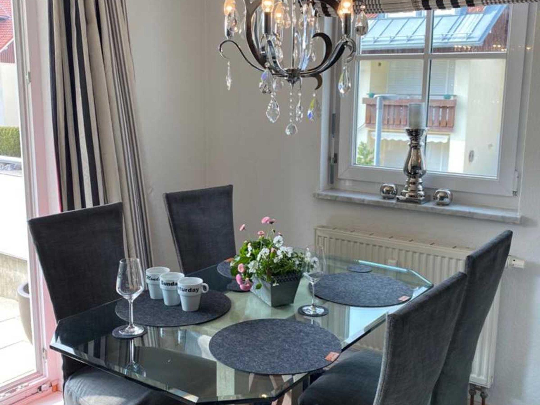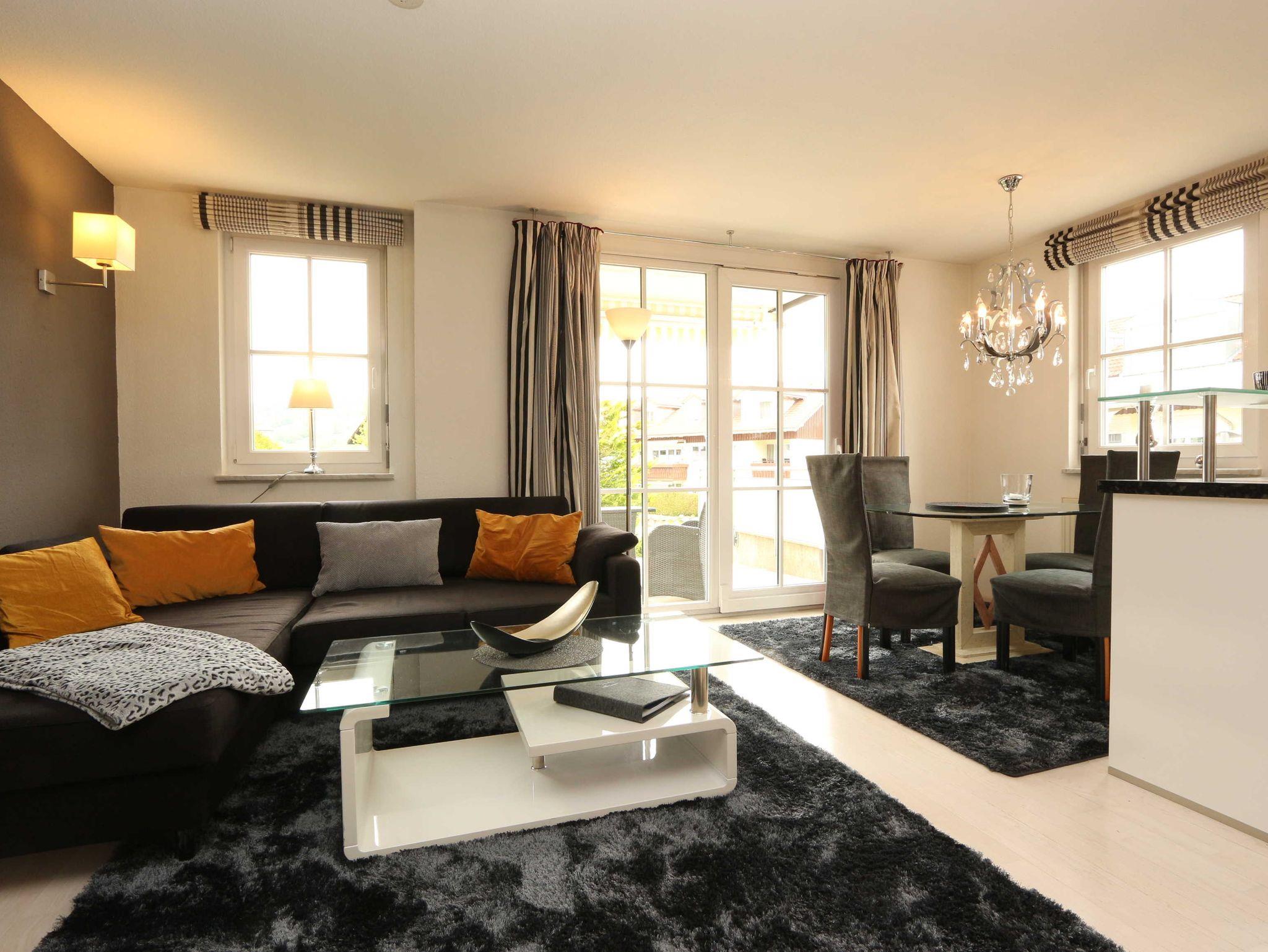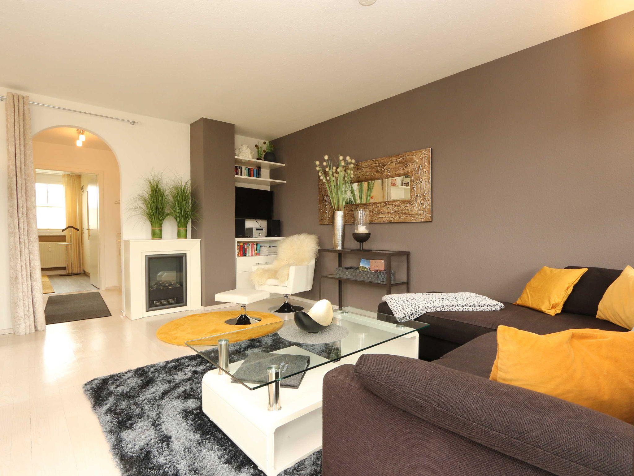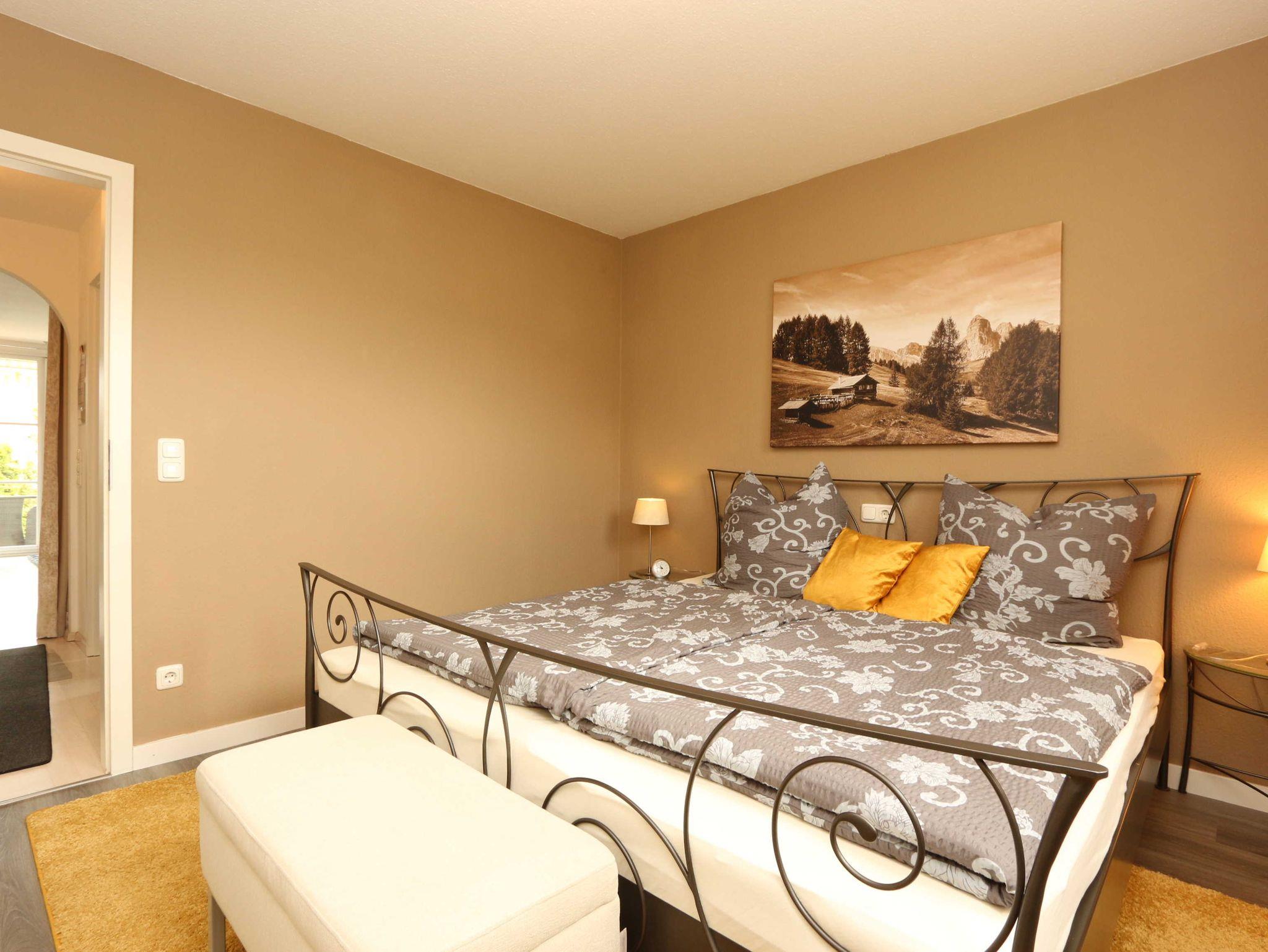 2-Zimmer-Wohnung mit gehobener Ausstattung für 2 - 3 Personen (ca. 52 m²) im Hochpaterre mit Schlafzimmer, Wohn- und Esszimmer, Terrasse, Küche und Bad.