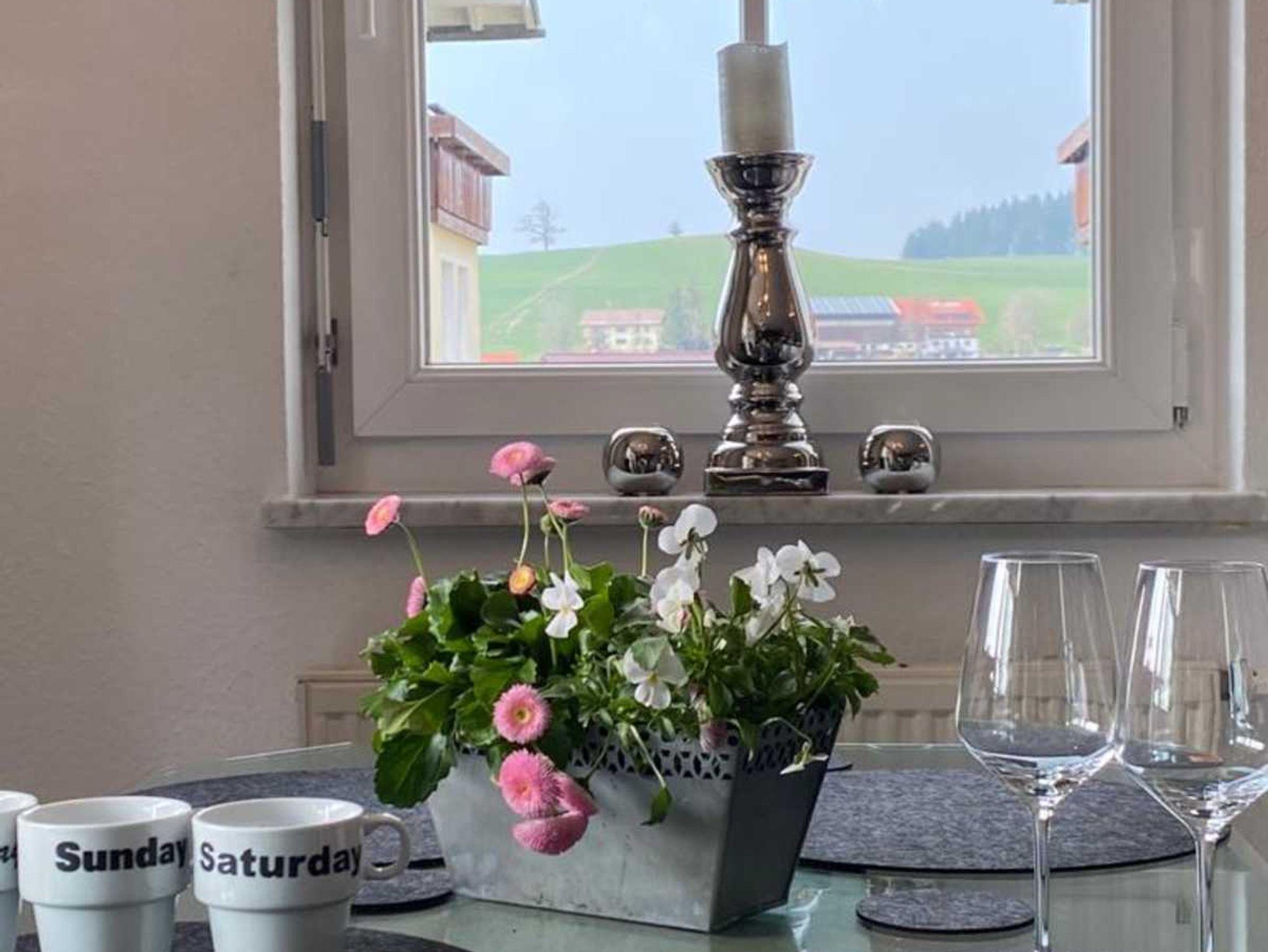 Wir bieten Ihnen dazu eine herrlich eingerichtete 2-Zimmer-Ferienwohnung in Oberstaufen, wenige Gehminuten (ca. 5 Min.) vom Zentrum und doch am Ortsrand gelegen, an.