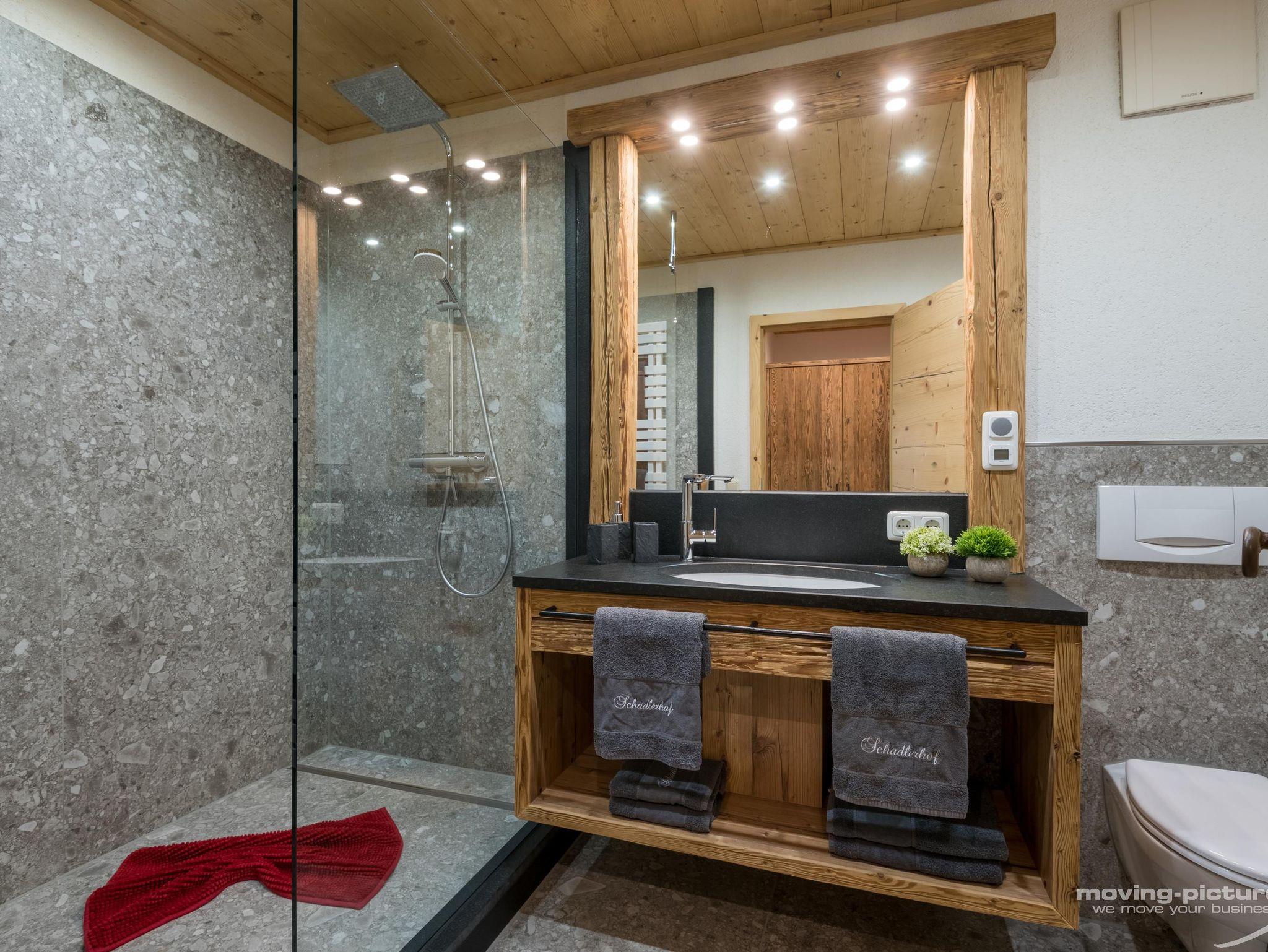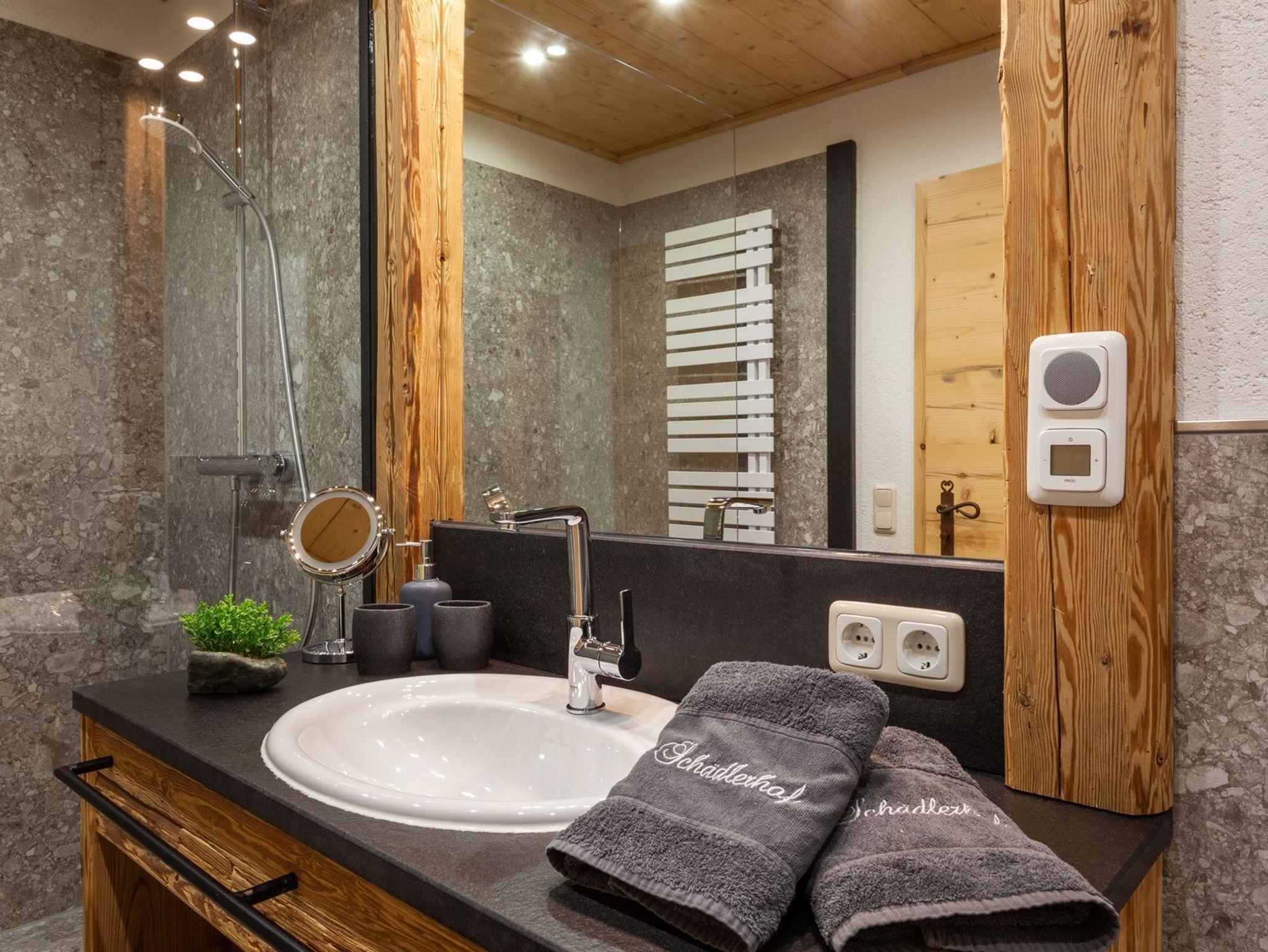 • Badezimmer mit Dusche und WC, Föhn, Schminkspiegel