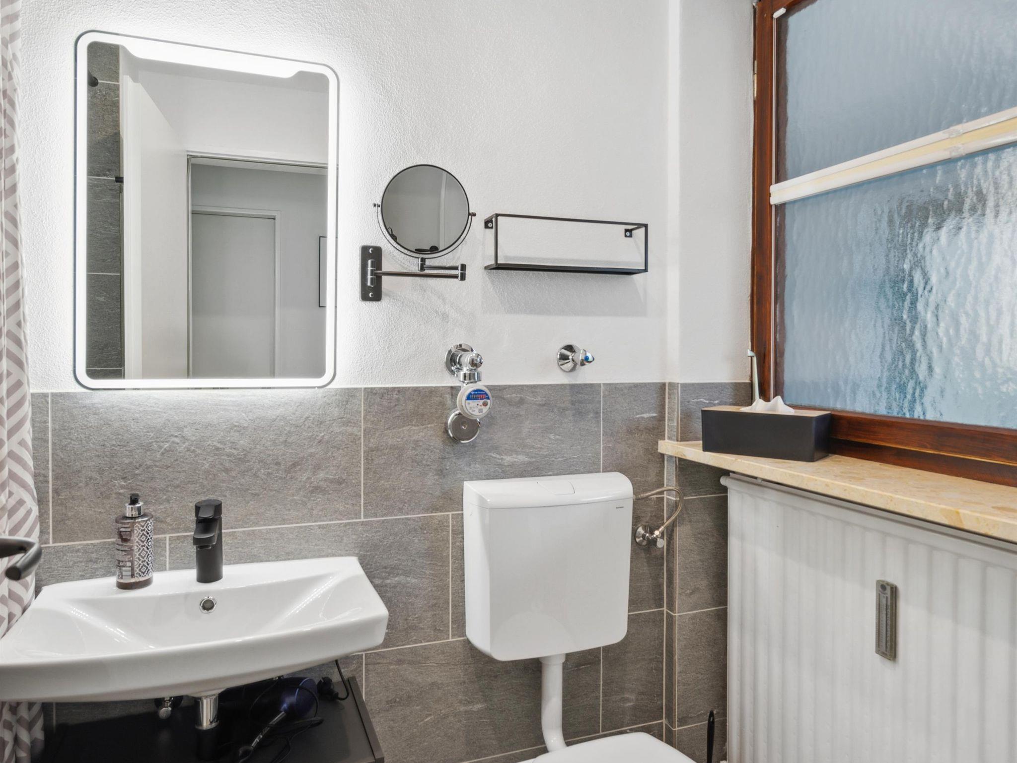 - Balkon: Möbliert, mit Blick auf die umliegenden Häuser – ideal für die erste Tasse Kaffee am Morgen.