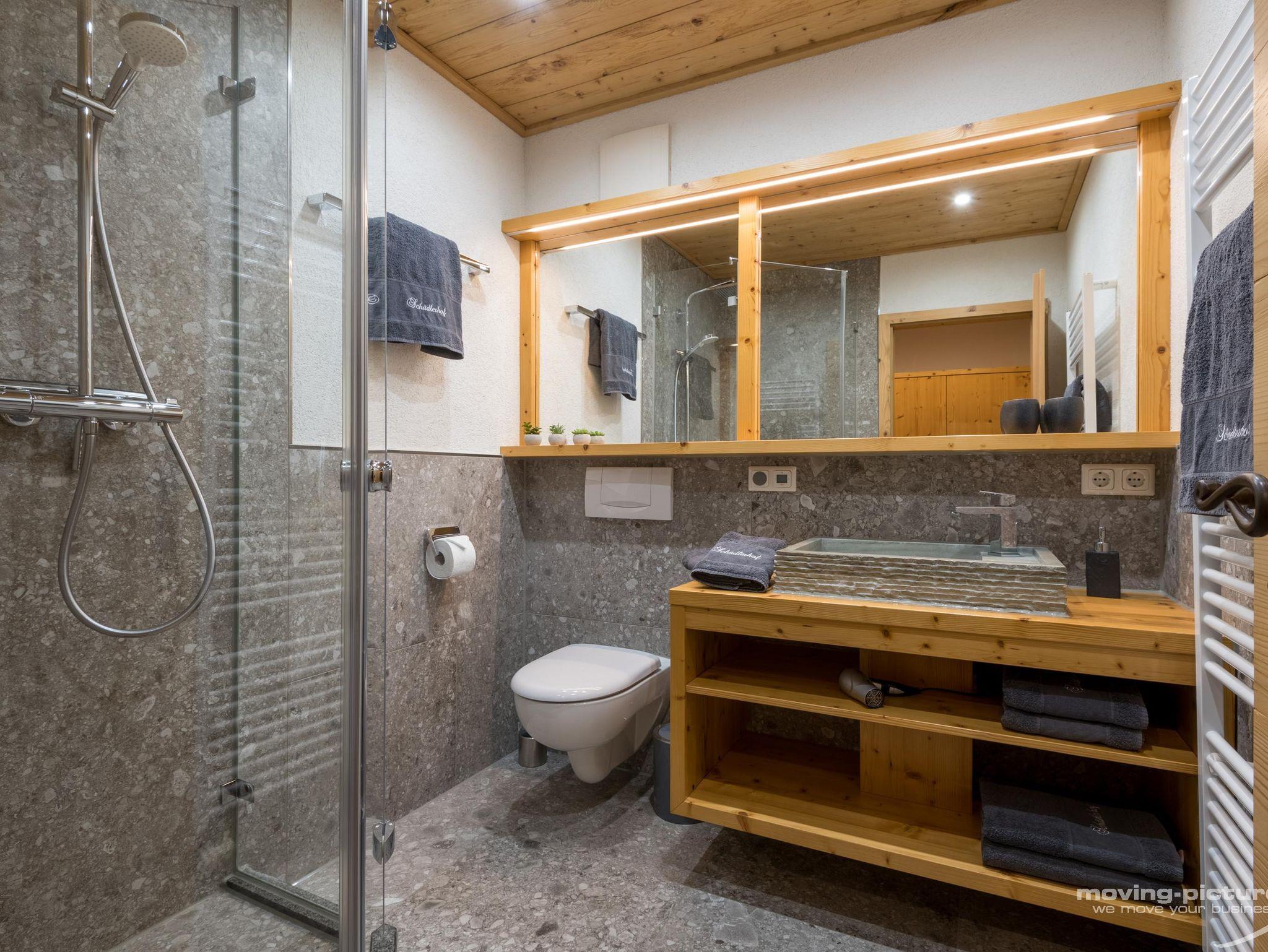 • Badezimmer mit Dusche und WC, Föhn, Schminkspiegel