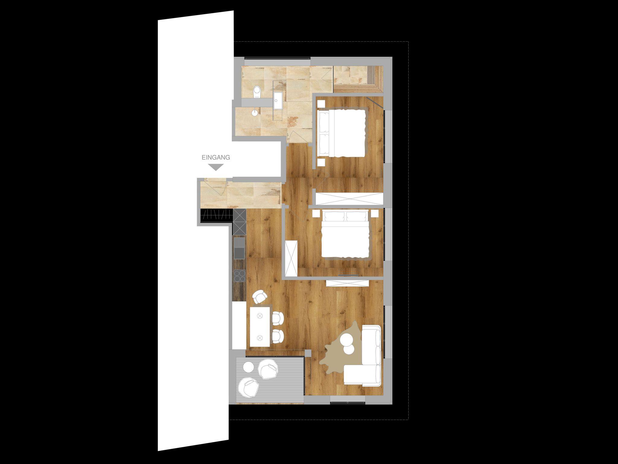 In den zwei ruhig gelegenen Schlafzimmern erwartet sie je 1 King-Size Doppelbett (200x200) mit wohlig weichen und bequemen Zirbelholz-Boxspringbetten für erholsame Nächte. Eine weitere Person hat bei Bedarf auf einem optionalen Beistellbett Platz.