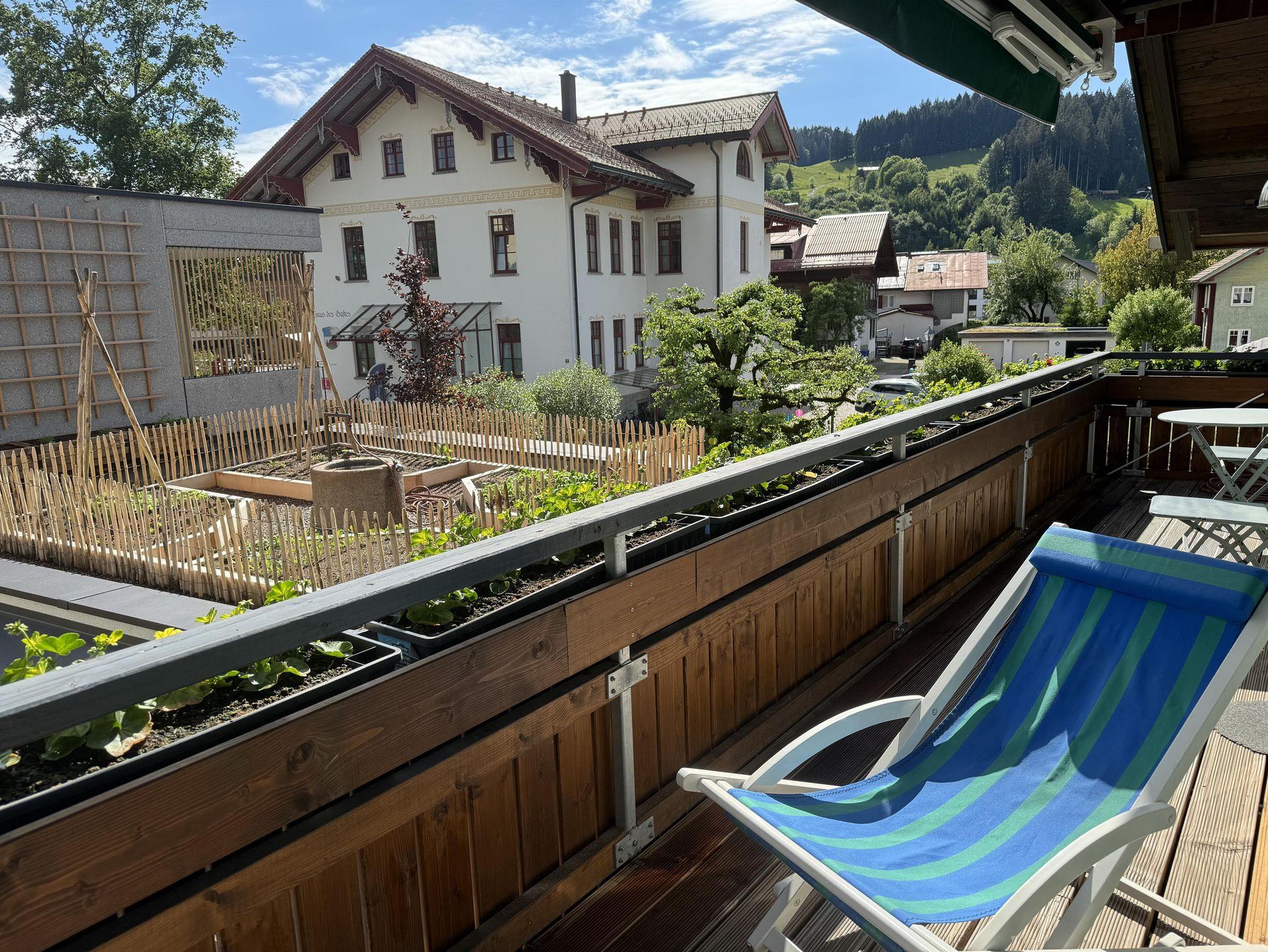Von beiden Räumen haben Sie Zugang zum sonnigen Südbalkon mit Blick auf die Ortsmitte rund um Rathaus, Haus des Gastes und Kirche. Hier können Sie im Sommer den Tag nach einer Rad- oder Wandertour ausklingen lassen.
