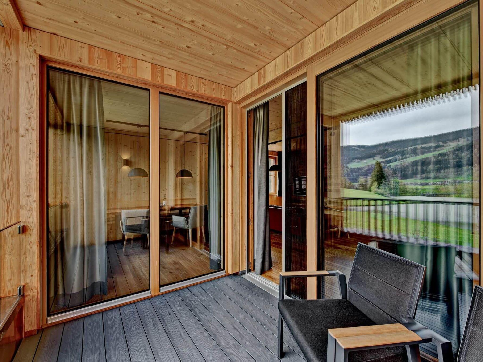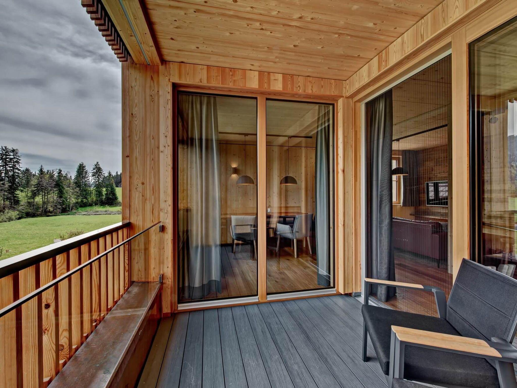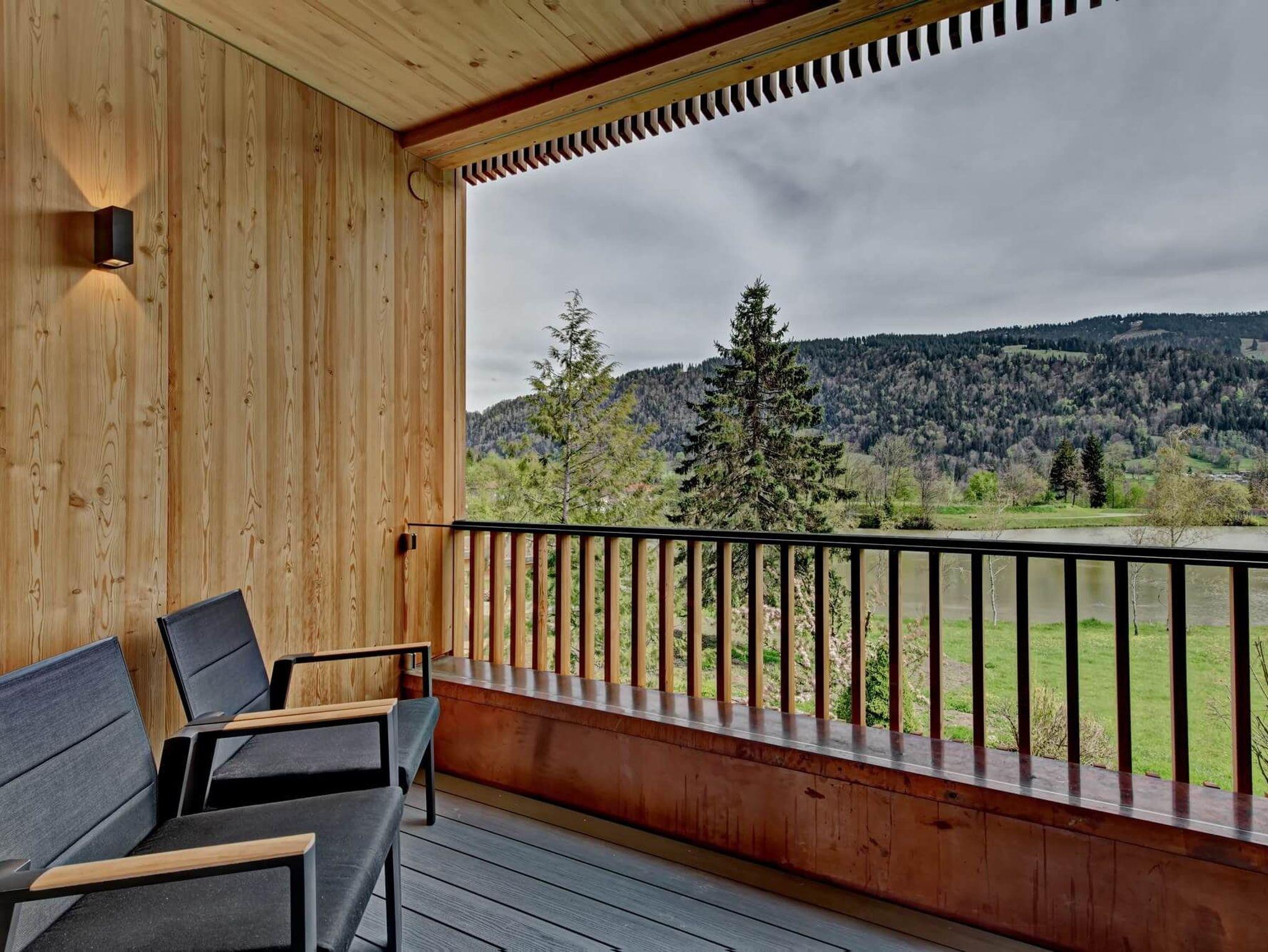 In jedem der Chalets empfängt Sie ein unverbauter Blick auf das Tal mit dem kleinen See, beschlossen von der bewaldeten Bergkette. Wanderwege beginnen direkt am Haus.