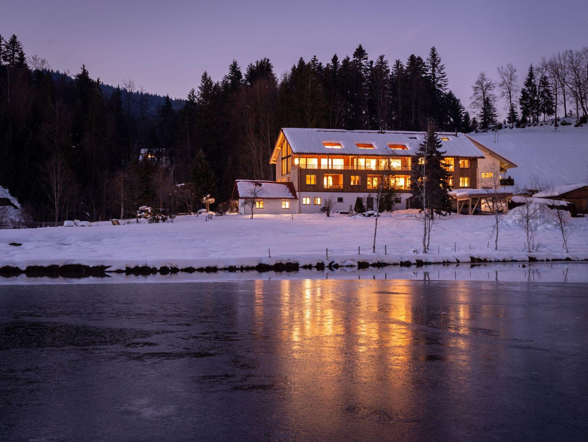Die Eibele Chalets befinden sich zwischen dem dreistufigen Eibele-Wasserfall und dem Eibelesee.