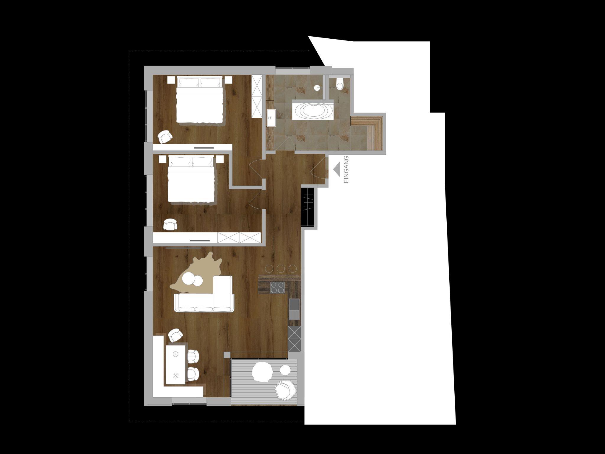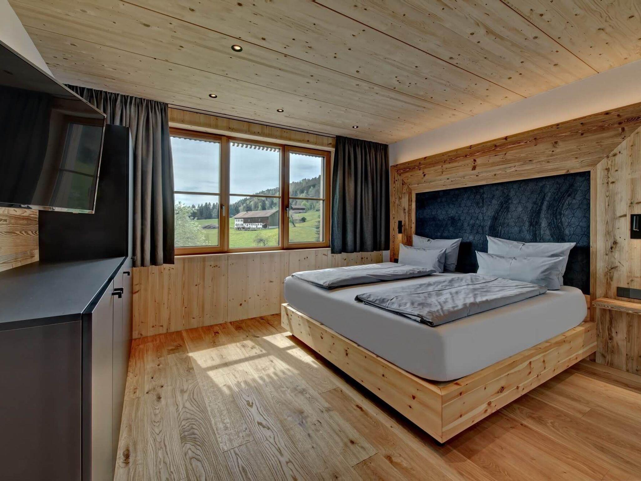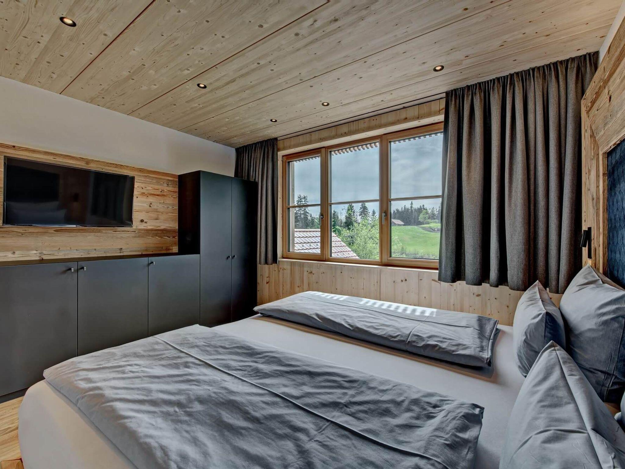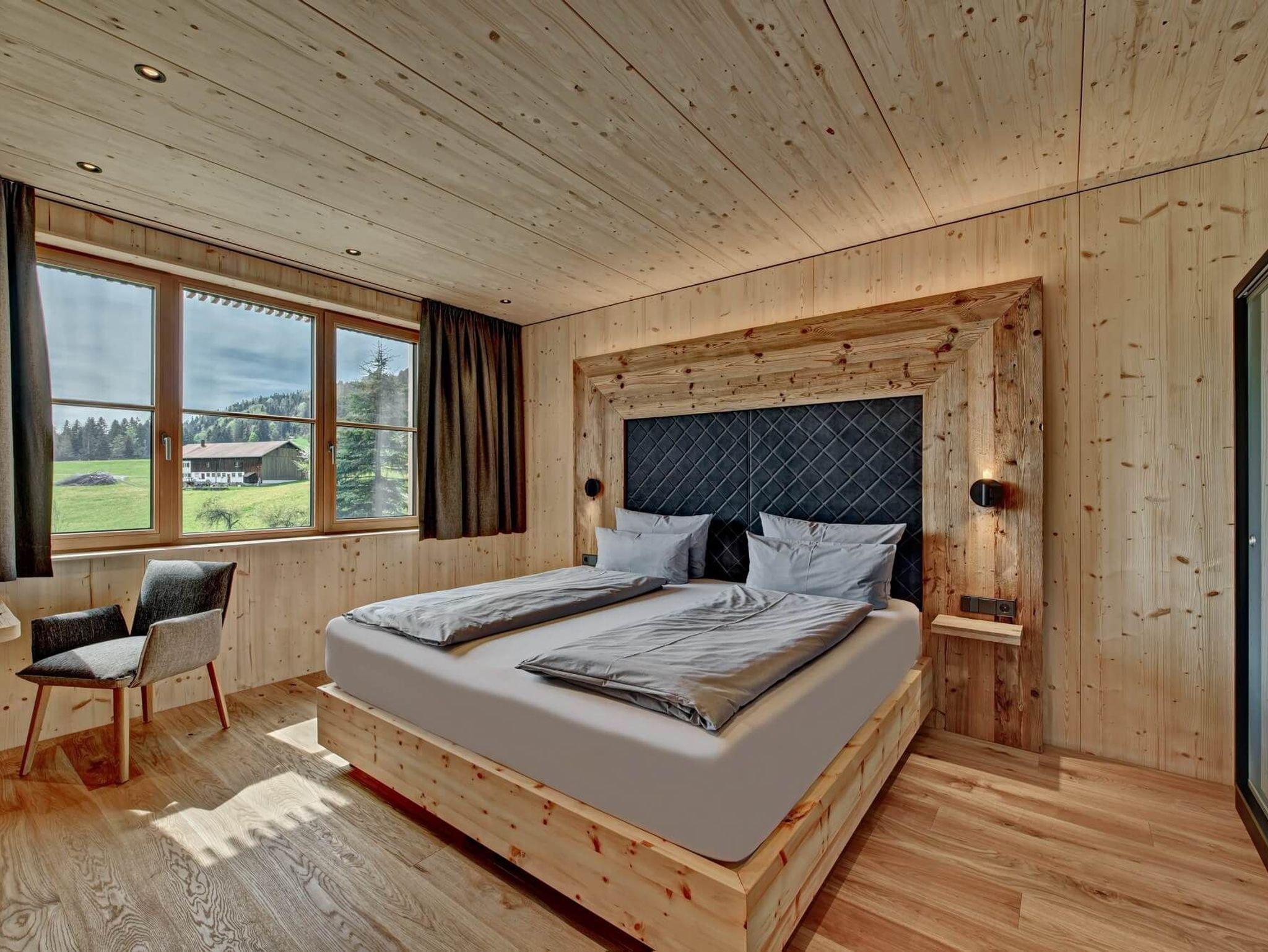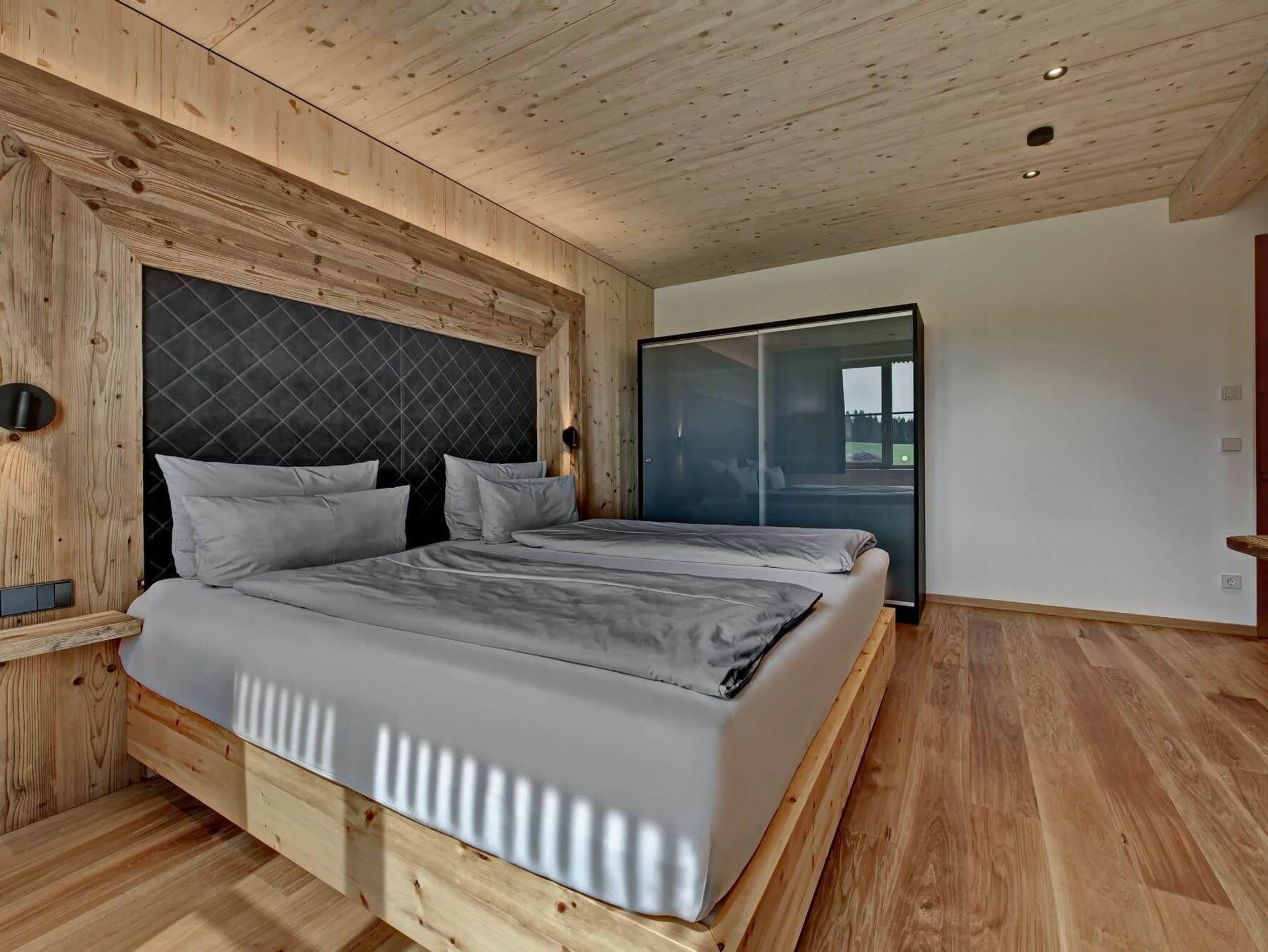 In den zwei ruhig gelegenen und ganz individuell gestalteten Schlafzimmern erwartet sie je 1 King-Size Doppelbett (200x200) mit wohlig weichen und bequemen Zirbelholz-Boxspringbetten für erholsame Nächte. Eine weitere Person hat bei Bedarf auf einem optionalen Beistellbett Platz.