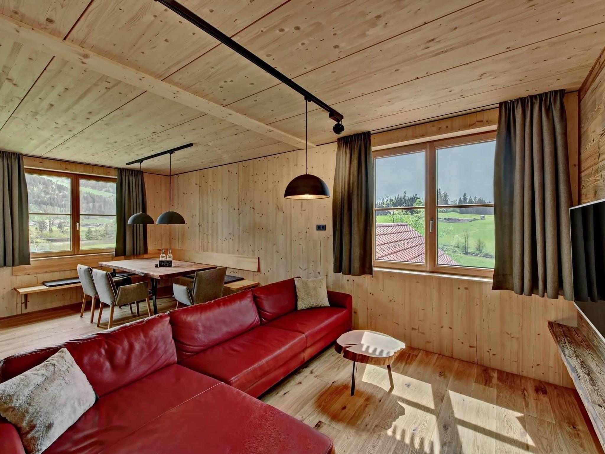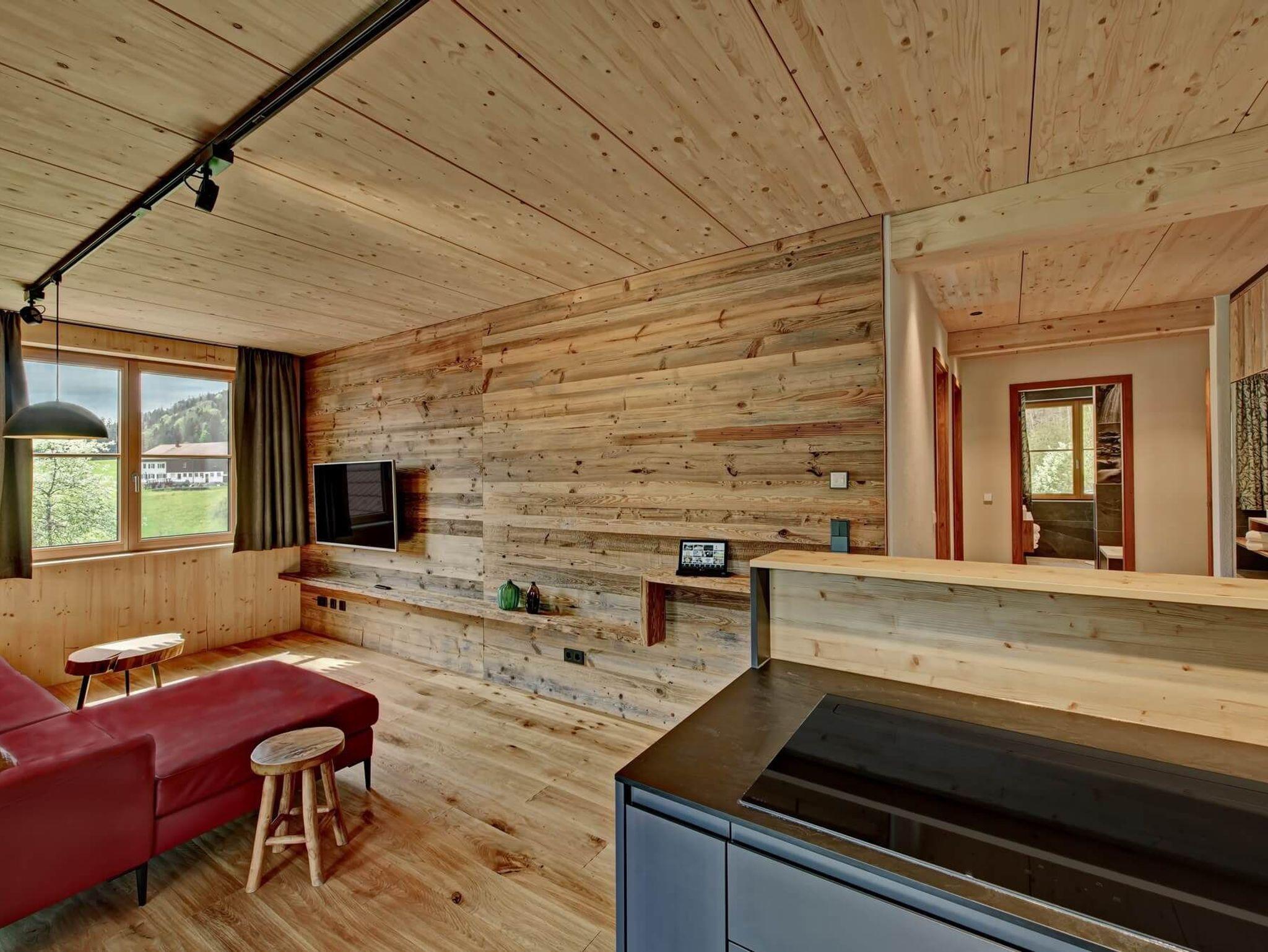Das Chalet Hochhäderich eignet sich perfekt für den Urlaub bis zu 5 Personen auf über 100 m², offener Wohnraum mit exklusiver Küche, Sofalandschaft und Loggia mit unverbautem Panoramablick.