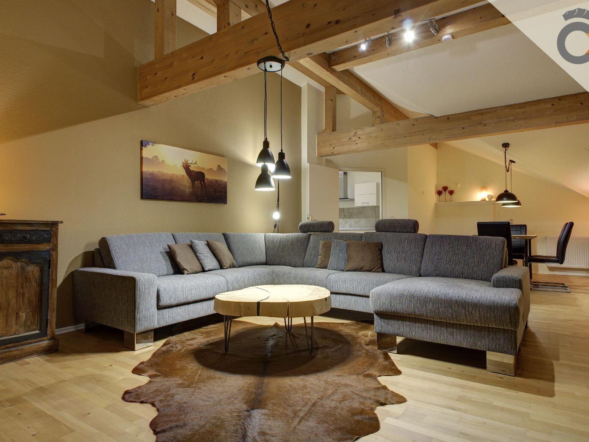 Ideal für Gruppen- und Mehrgenerationen-Urlaub! Die sehr großzügig geschnittene und helle Ferienwohnung erstreckt sich auf ca. 150qm über das gesamte Dachgeschoss des Mehrfamilienhauses.