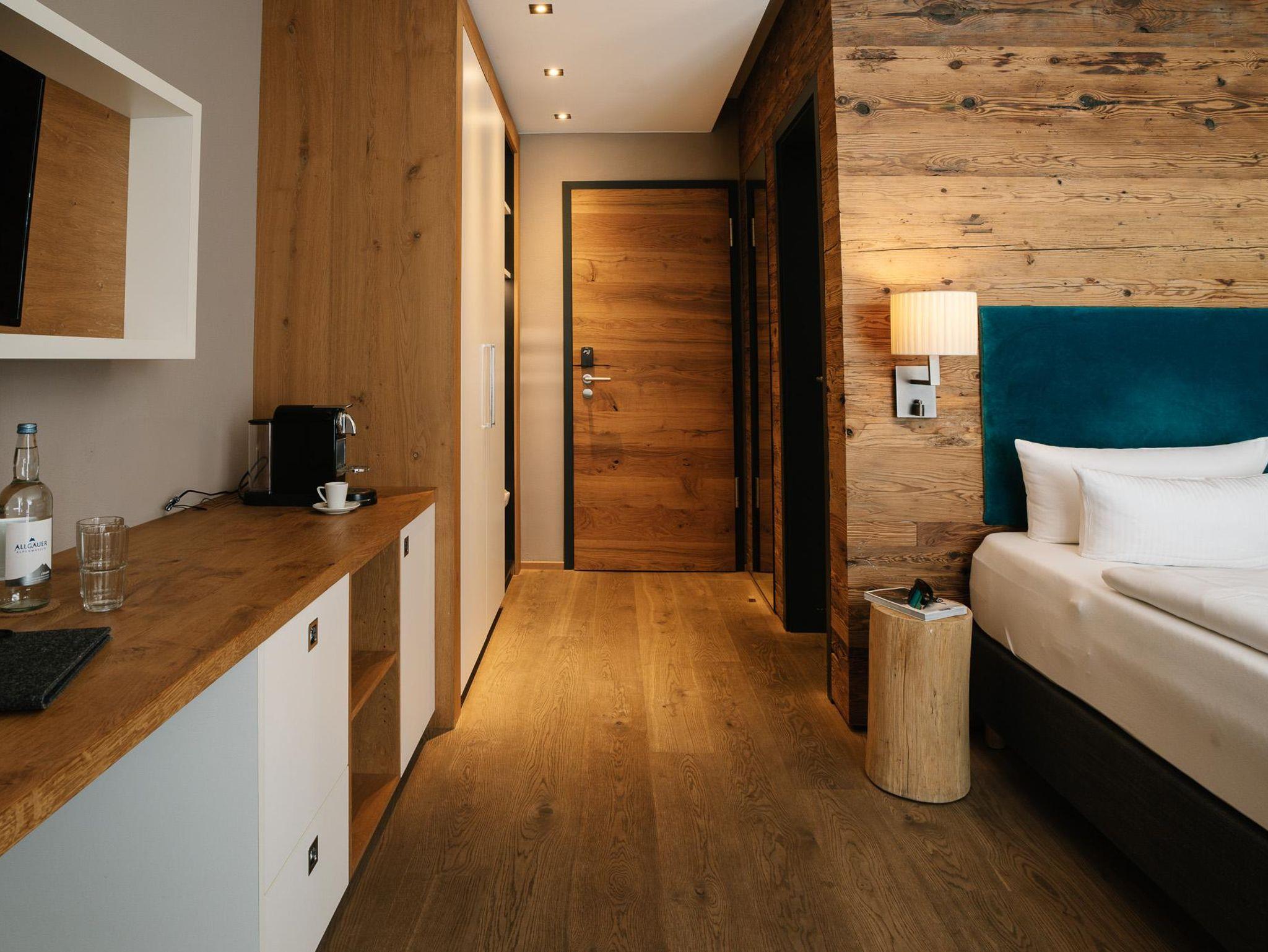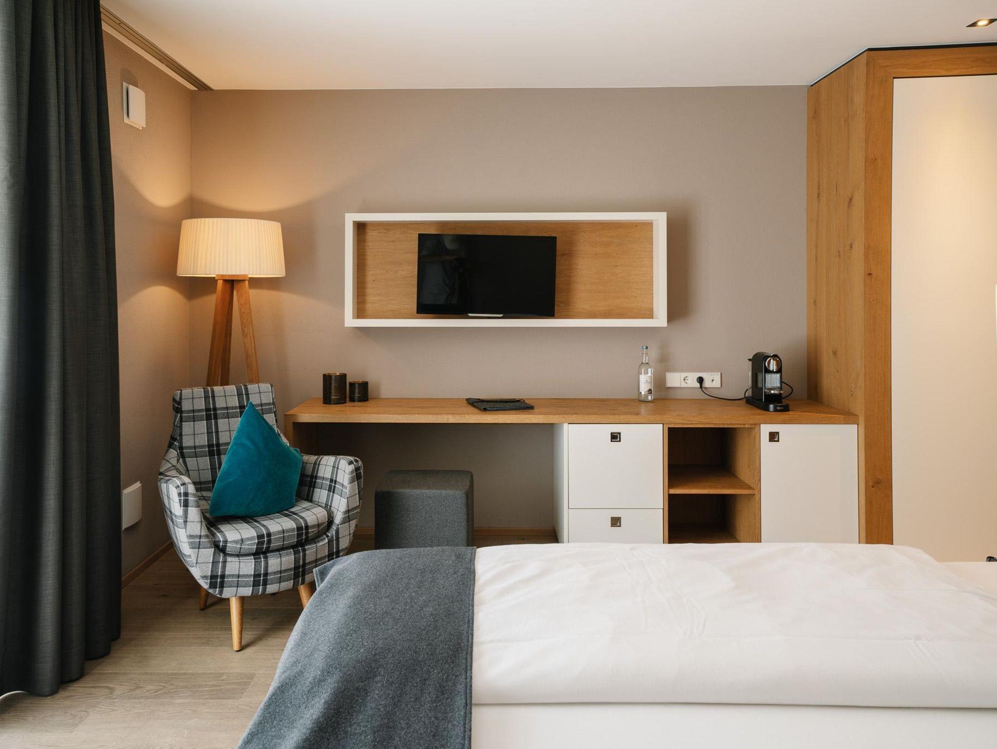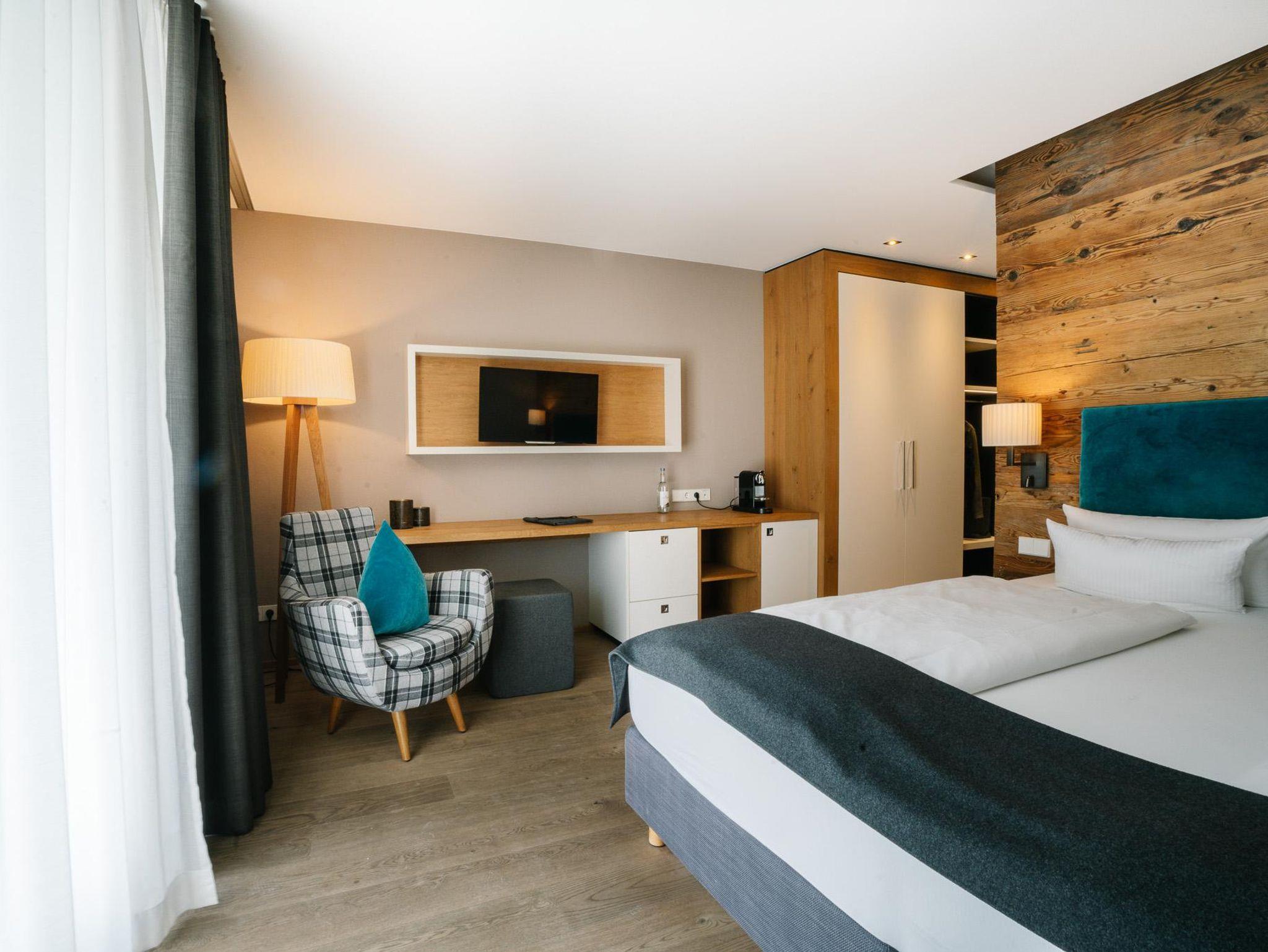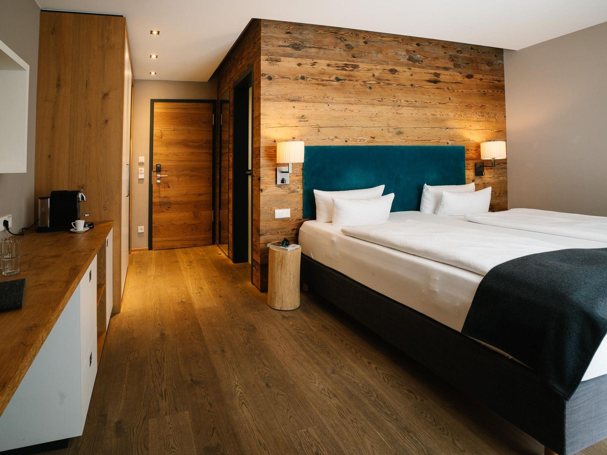 Unser gemütliches Junior-Chalet im Erdgeschoss für 1-2 Personen ist 27 m² groß und verfügt über eine kleine Terrasse. Es ist mit hochwertigen Materialien wie edlem Echtholzboden, Design-Bad mit Dusche und WC, Bett in Übergröße und TV ausgestattet. Eine Nespressomaschine und Wasserkocher stehen Ihnen zur Verfügung. Selbstverständlich sind WLAN-Nutzung sowie das Telefonieren ins deutsche Festnetz genauso inklusive, wie die Nutzung unseres Saunabereichs. Gerne können Sie ein Auto pro Chalet in unserer Tiefgarage gratis parken. Das Frühstück ist im Zimmerpreis enthalten.