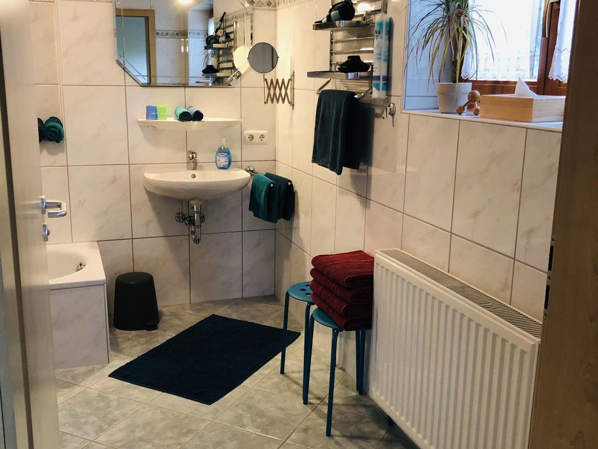 Lassen Sie den Tag im sehr geräumigen Badezimmer mit einem wohligen Erholungsbad ausklingen.