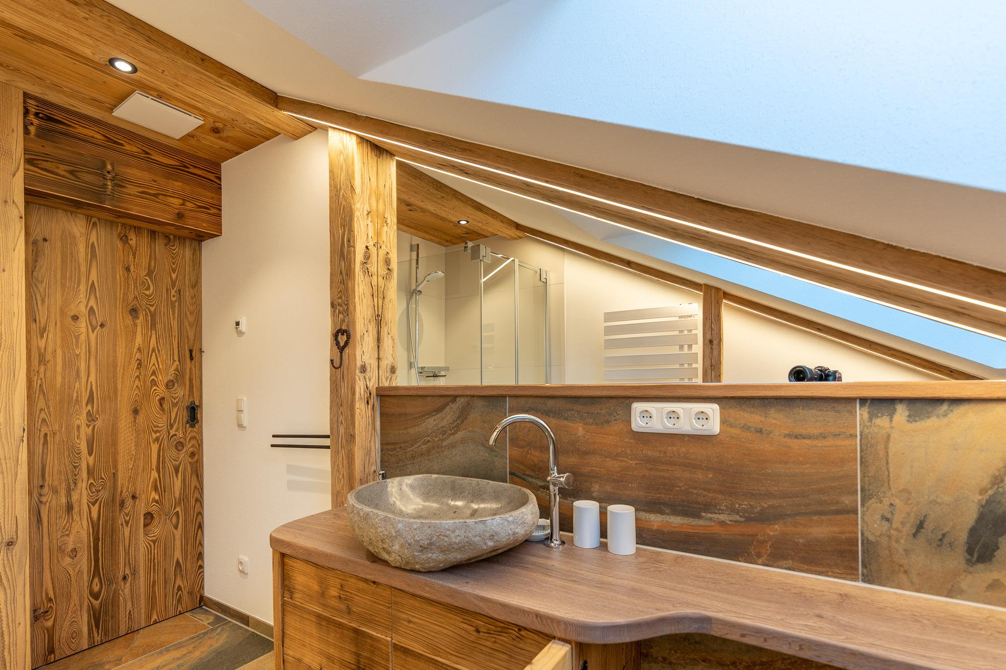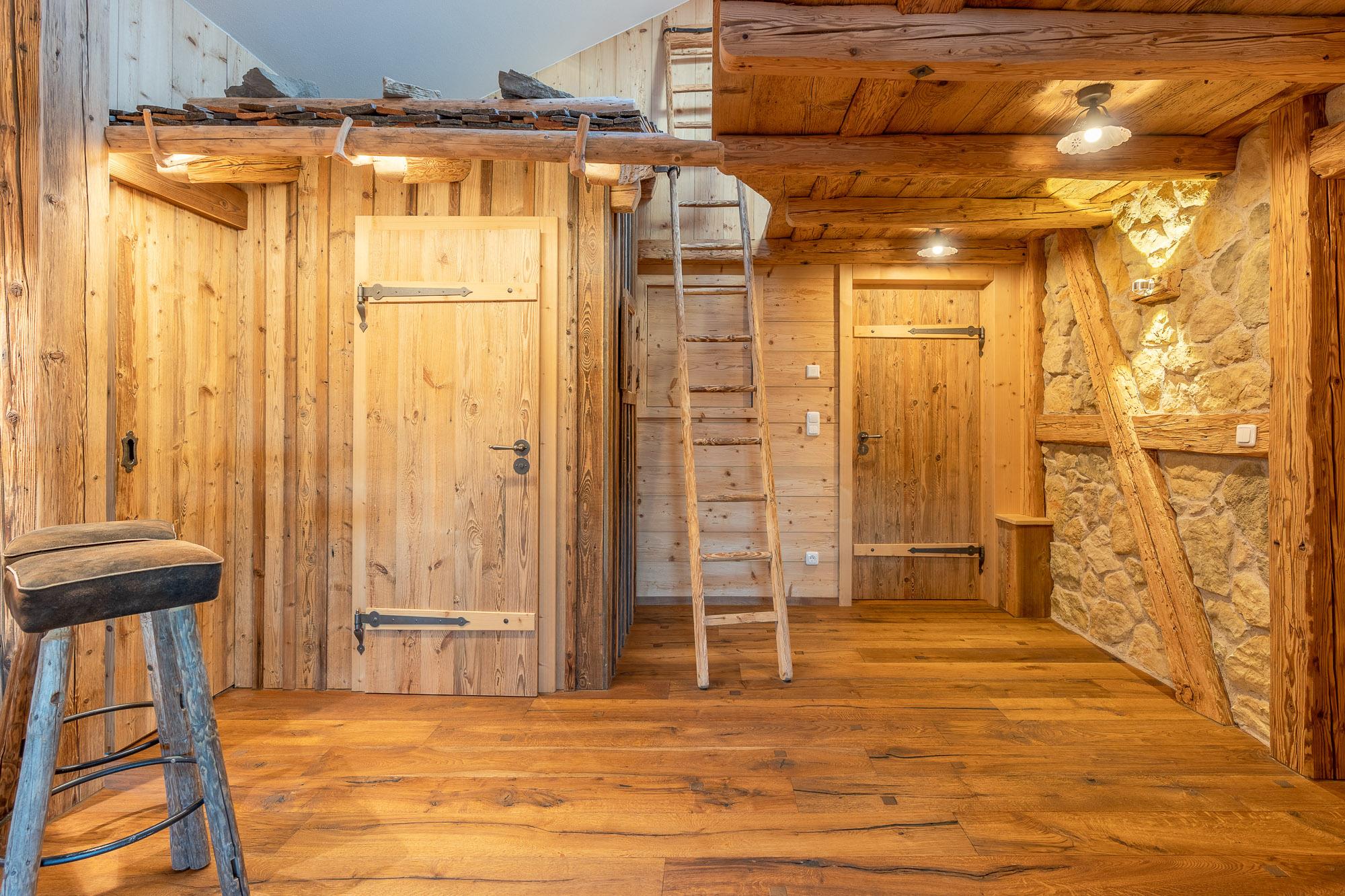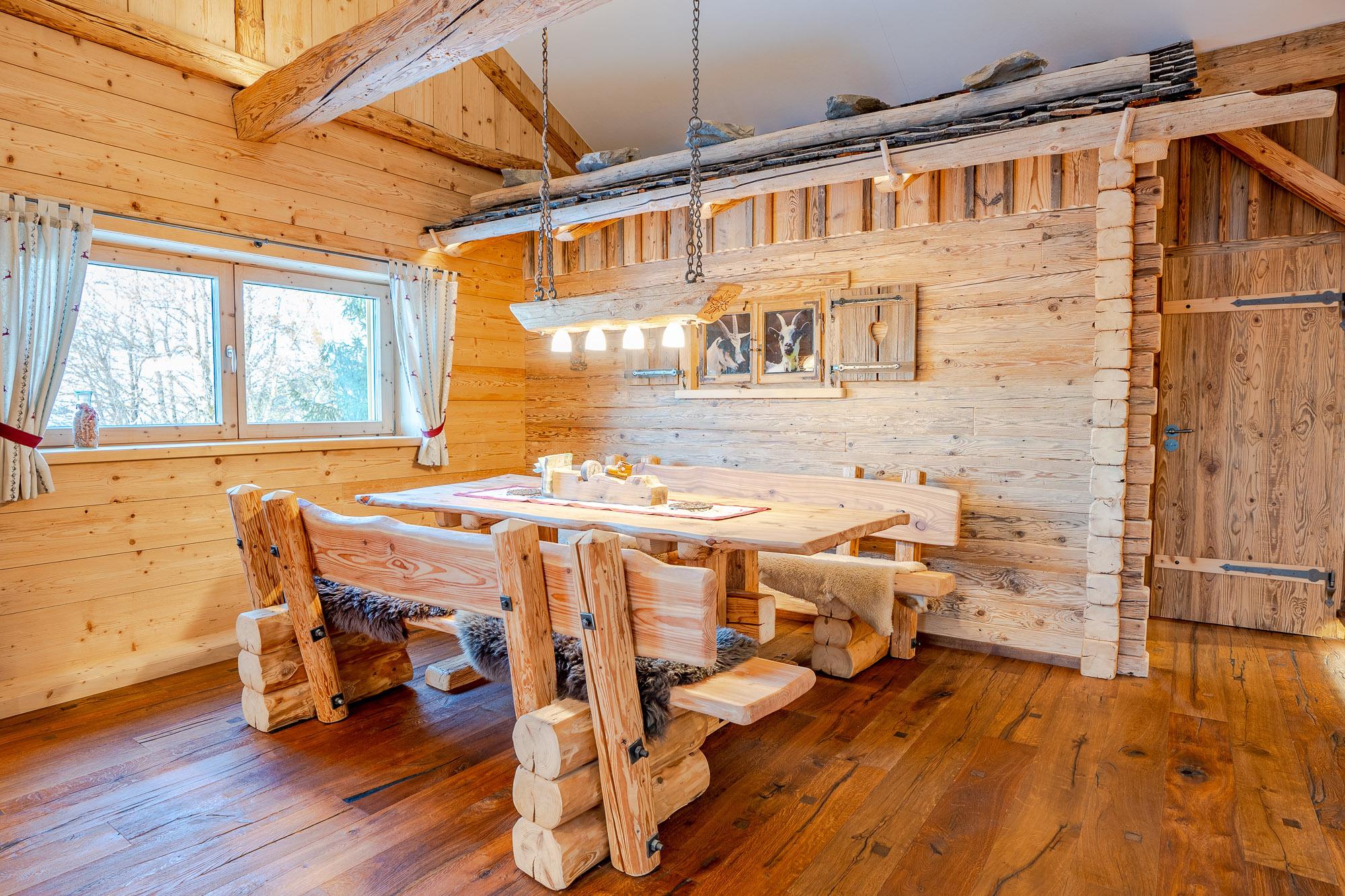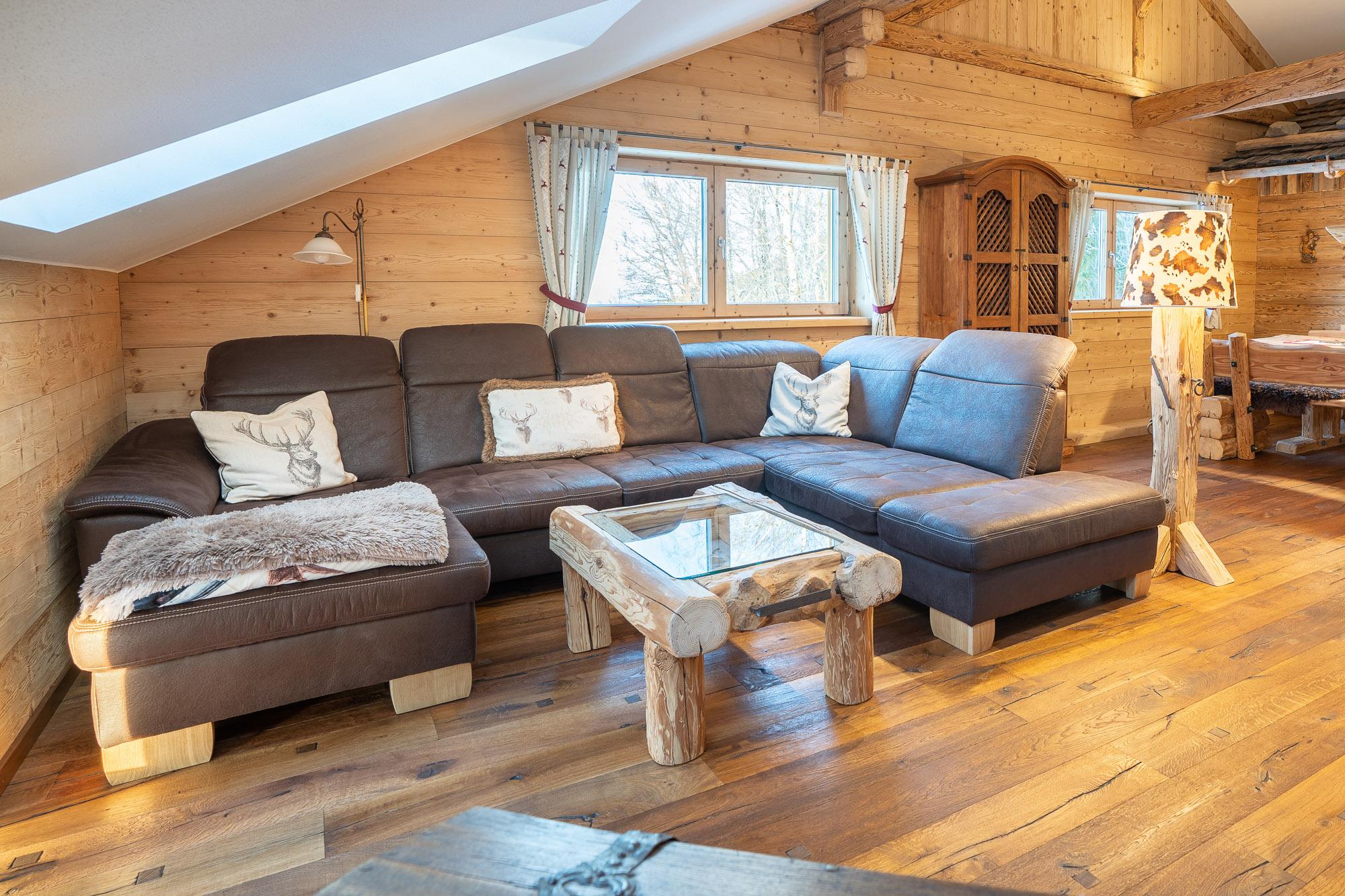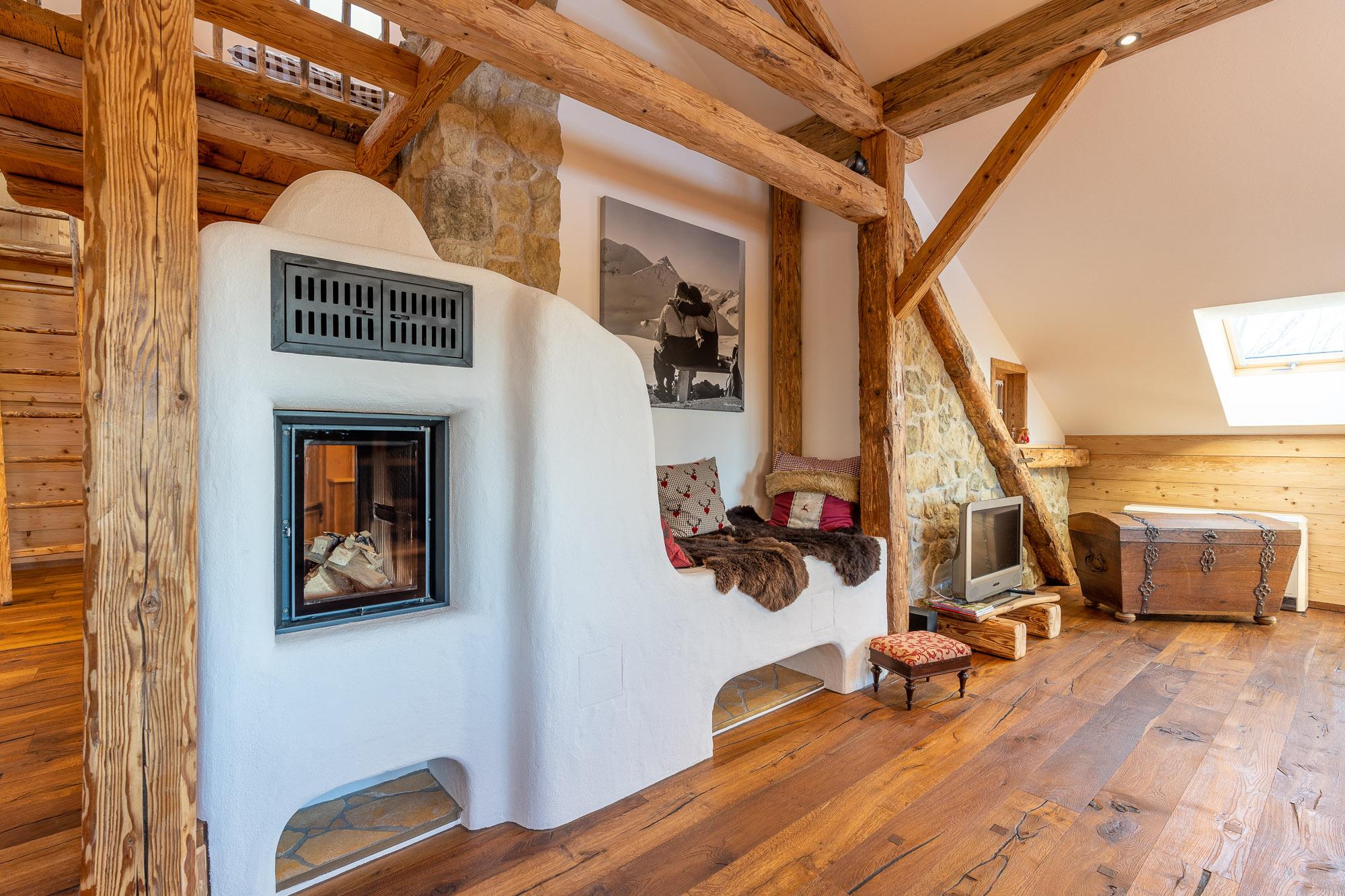 Ausgestattet ist sie mit einem hochwertigen Holzboden, Naturholzvertäfelungen an den Wänden und viele kleine Details die der Wohnung ihren gemütlichen Charme geben.