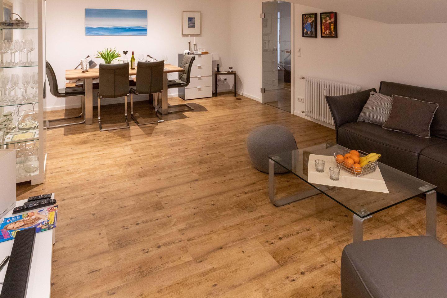 Die 80 m² große Wohnung wurde erst im Herbst 2019 komplett neu ausgebaut und hochwertig ausgestattet. Sie dürfen sich auf ein modernes, hochwertig möbliertes Feriendomizil freuen, in dem sich nicht nur Ihre Kinder, sondern gegebenenfalls auch Ihr "kleiner" vierbeiniger Freund "pudelwohl" fühlen werden.