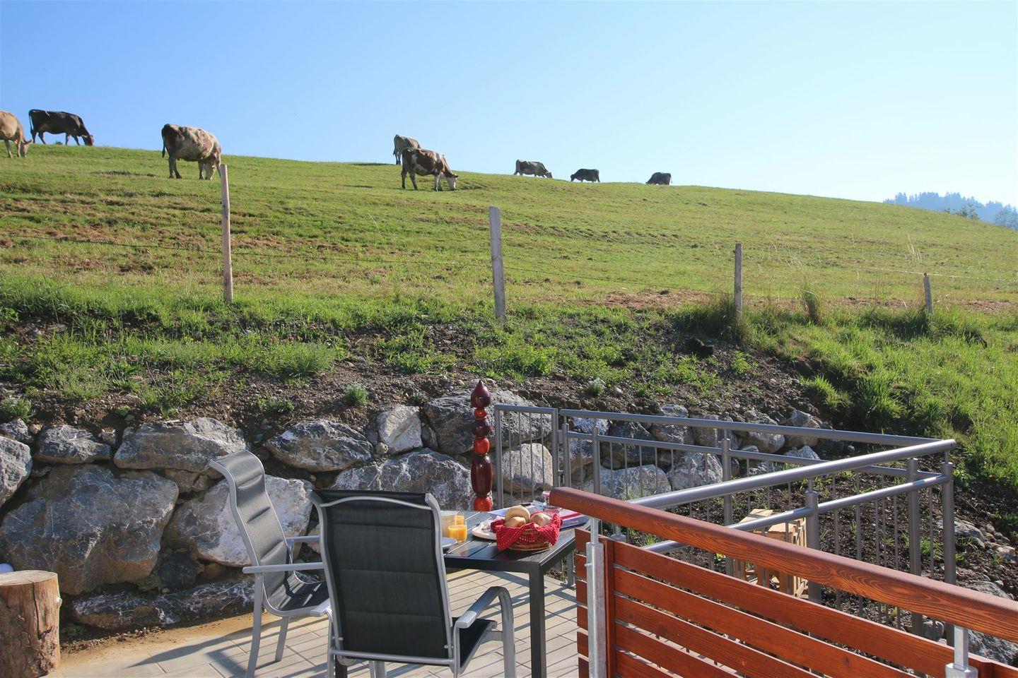 Die im Jahr 2018 neu gebaute Ferienwohnung "Glockenstüble" bietet Ihnen ein hochwertig eingerichtetes Feriendomizil, das nur 1,5 km vom Ortszentrum Oberstaufen entfernt im Ortsteil Kalzhofen liegt. Von der Terrasse und dem Balkon genießen Sie einen traumhaften Panoramablick. Im Nachbargebäude können Sie kostenlos Schwimmbad und Sauna nutzen. Haustiere auf Anfrage erlaubt.