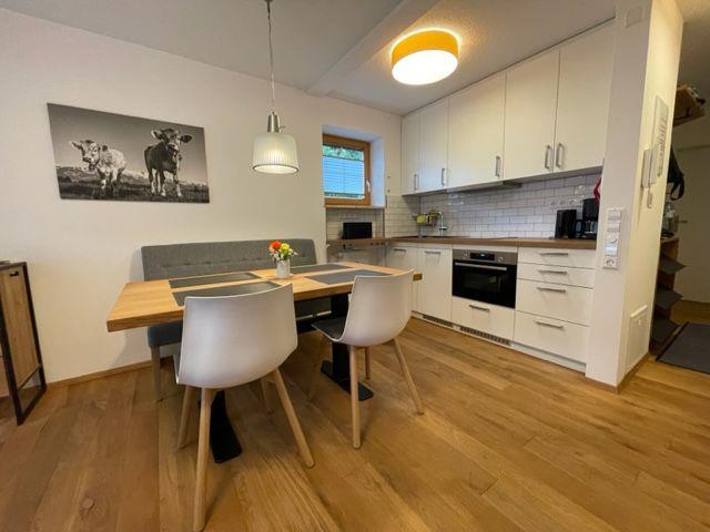 Unsere Ferienwohnung Bergzeit wurde 2021 neu renoviert. Die Wohnung liegt ruhig, ebenerdig und zentral in einer Wohnanlage im Bergdorf Steibis.