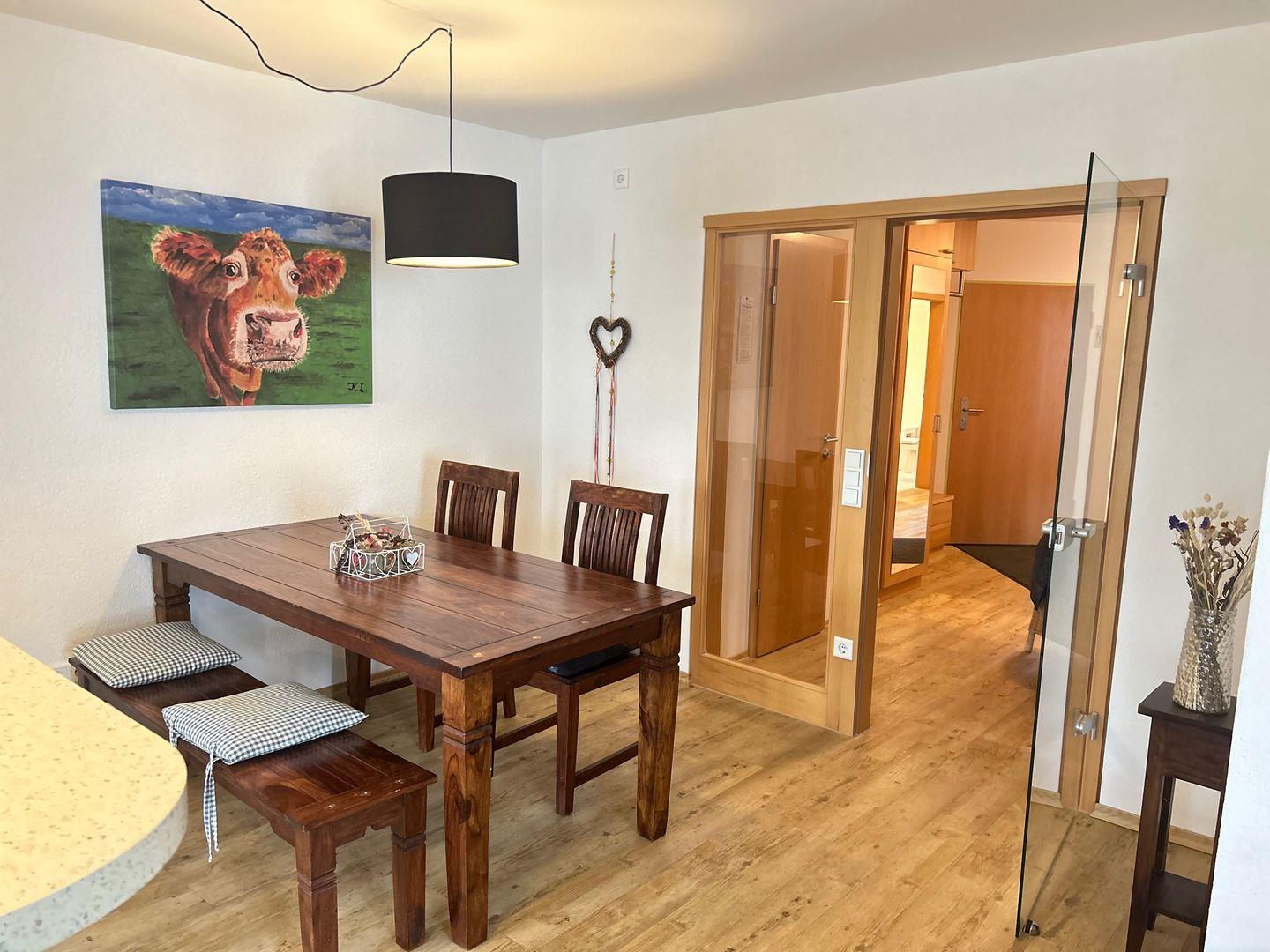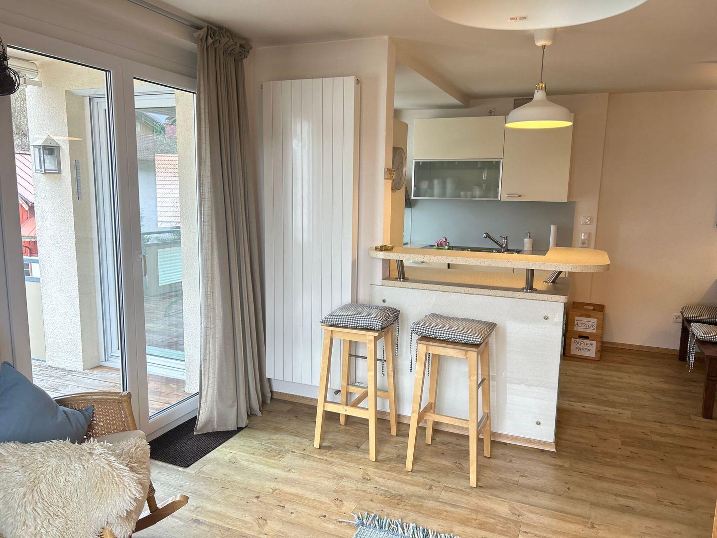 Diese 3-Zimmer-Ferienwohnung mit ca. 90 m² liegt im 1.OG eines Mehrfamilienhauses, sehr zentral in Oberstaufen.