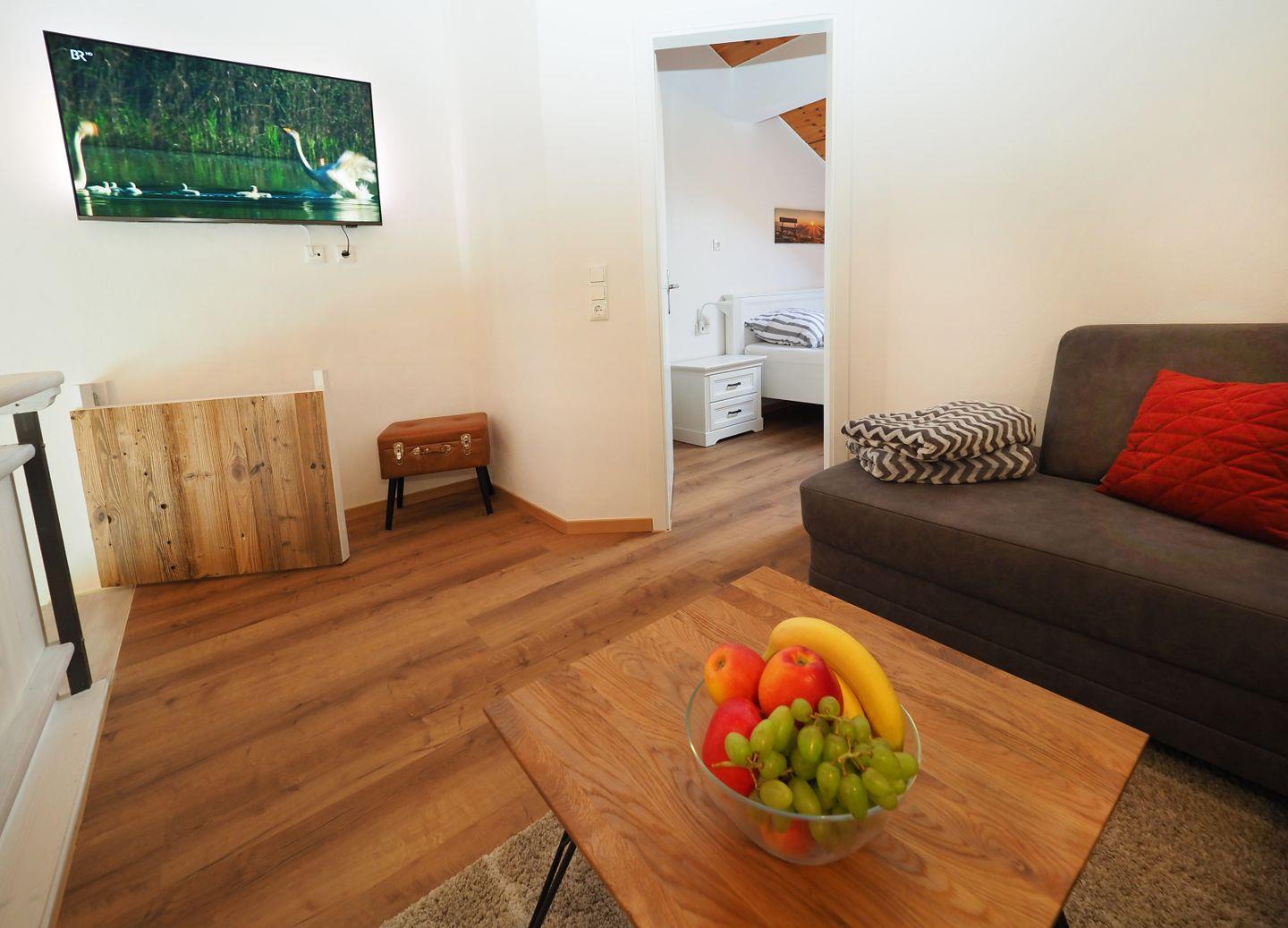 Bis Herbst 2024 wurde die Wohnung komplett renoviert und neu eingerichtet. Die bodentiefe Fensterfront in Kombination mit einem modernen Allgäuer-Stil bringen das Allgäu direkt in die Wohnung.