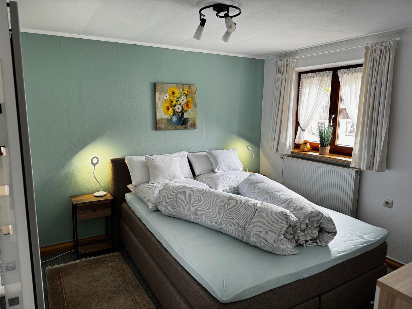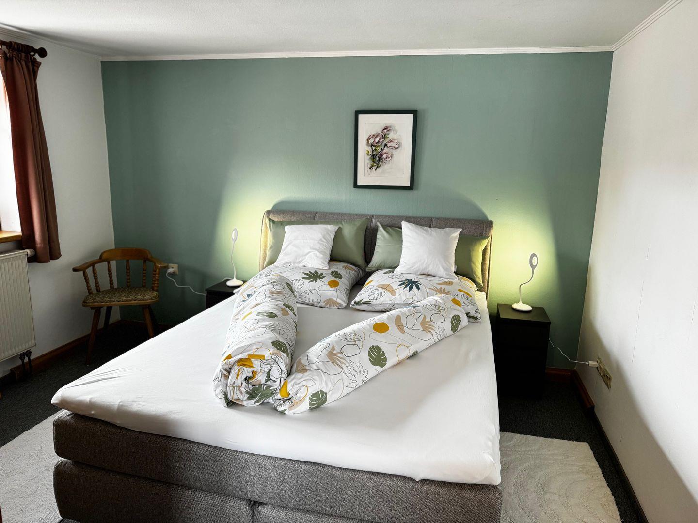 Das Haus "Linde" ist gemütlich eingerichtet und bietet auf zwei Etagen Platz für bis zu 4 Personen. Die Schlafräume mit Boxspringbetten, ein großes Bad, sowie die seperate Toilette liegen im 1. OG. Unten sind Wohn- und Essbereich, sowie ein kleiner Balkon. Das Haus hat einen eigenen Eingang, einen Parkplatz und verfügt über kostenfreies WLAN.