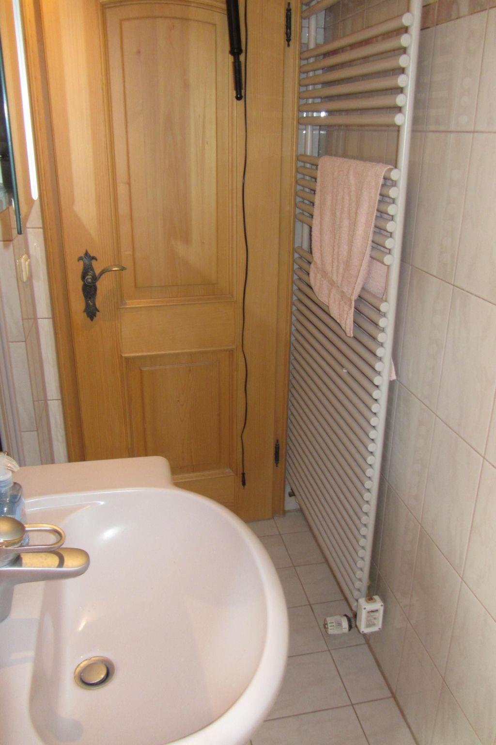 The 3 1/2 room flat in country house style is located on the 1st floor and is south-east facing with a surrounding south-facing balcony. The master bedroom also has an extra east-facing balcony. The flat is exclusively furnished to a high standard. The living and dining room area has a handcrafted beamed and coffered ceiling and an electric tiled stove with stove bench. Open-plan kitchen to the living room with large dining area, couch corner with leather couch, leather armchair and couch stick, TV;