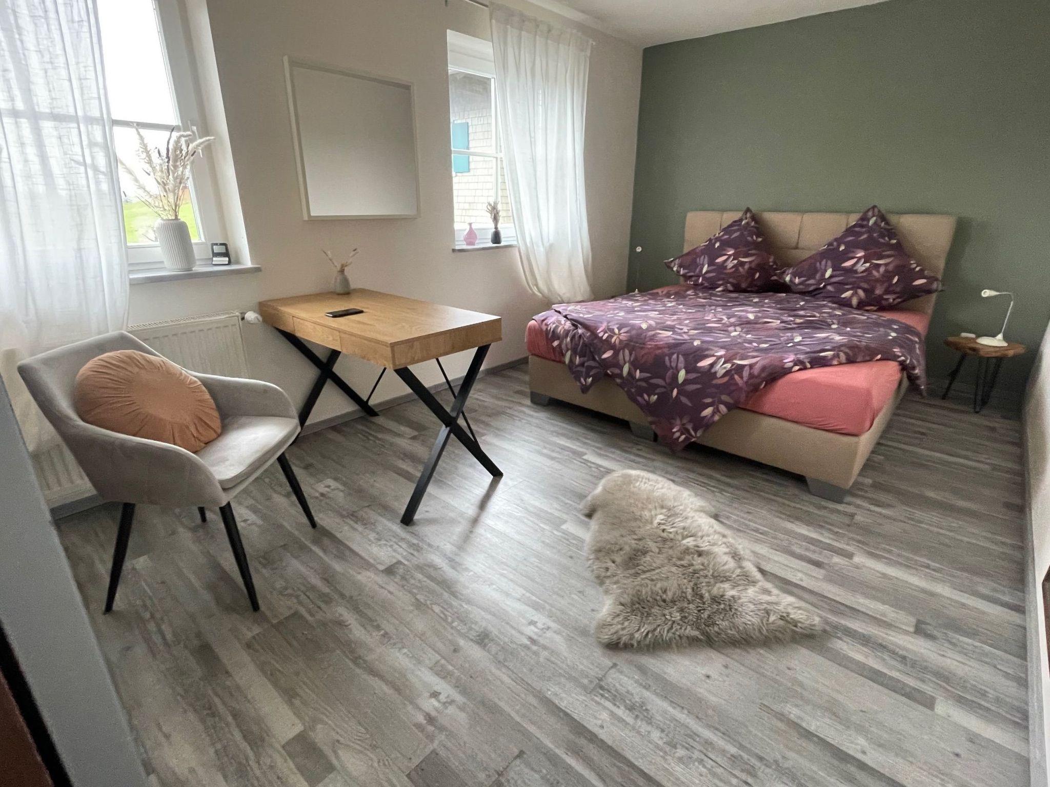 Four comfortably furnished bedrooms and two bathrooms await you. A fully equipped kitchen with ceramic hob, filter coffee machine, kettle and dishwasher offers space for a shared cooking experience. The spacious living and dining room with a cosy wood-burning stove and bright windows is the perfect place to spend time together.