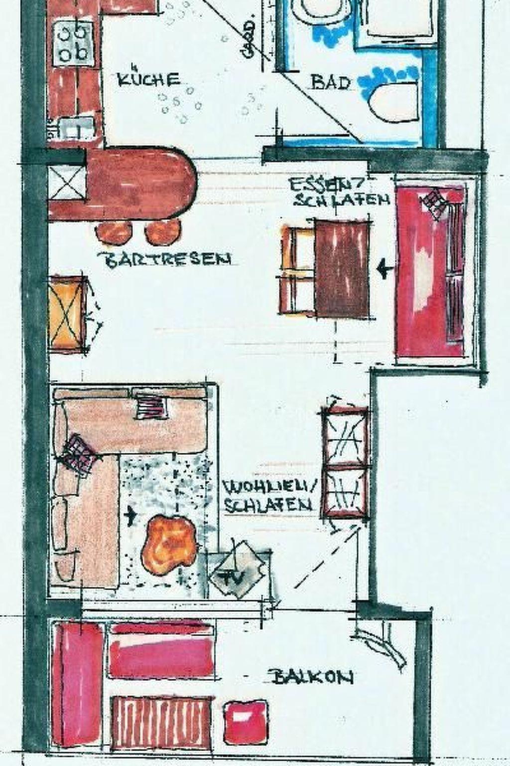 Flat no. 19 on the 1st floor with south-facing balcony has a marvellous mountain view of the Allgäu Alps. The 1-room flat was renovated in 2007 and is bright, individually and modernly furnished. 1 sitting area with double sofa bed (1.60 x 2.00 m), dining table with 4 seats, 1 double sofa bed (1.40 m x 2.00 m); open-plan kitchen with dining counter. The bathroom is equipped with shower/washbasin/WC. Non-smoking flat and suitable for allergy sufferers.