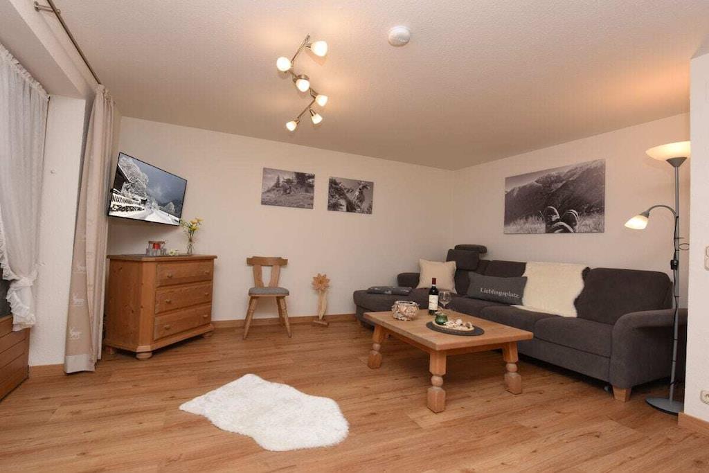 3-værelses lejlighed, charmerende møbleret i landlig stil, ca. 55 m² i stueetagen, satellit-tv, radio med Bluetooth, gratis Wi-Fi Hyggelig stue med integreret køkken, spiseplads, fuldt udstyret nyt køkken, keramisk kogeplade, kaffemaskine, brødrister, elkedel, æggekoger osv. To soveværelser med dobbeltsenge og garderobeskabe Badeværelse med bruser/toilet, hårtørrer Smuk sydvendt terrasse med fantastisk udsigt over Oberstdorf-bjergene. Parkering tilgængelig Bjerglifte: Da vi ikke tilbyder liftkort, har du mulighed for at købe Oberstdorf-Allgäu-bjergliftenes toppas i 7 eller 14 dage.