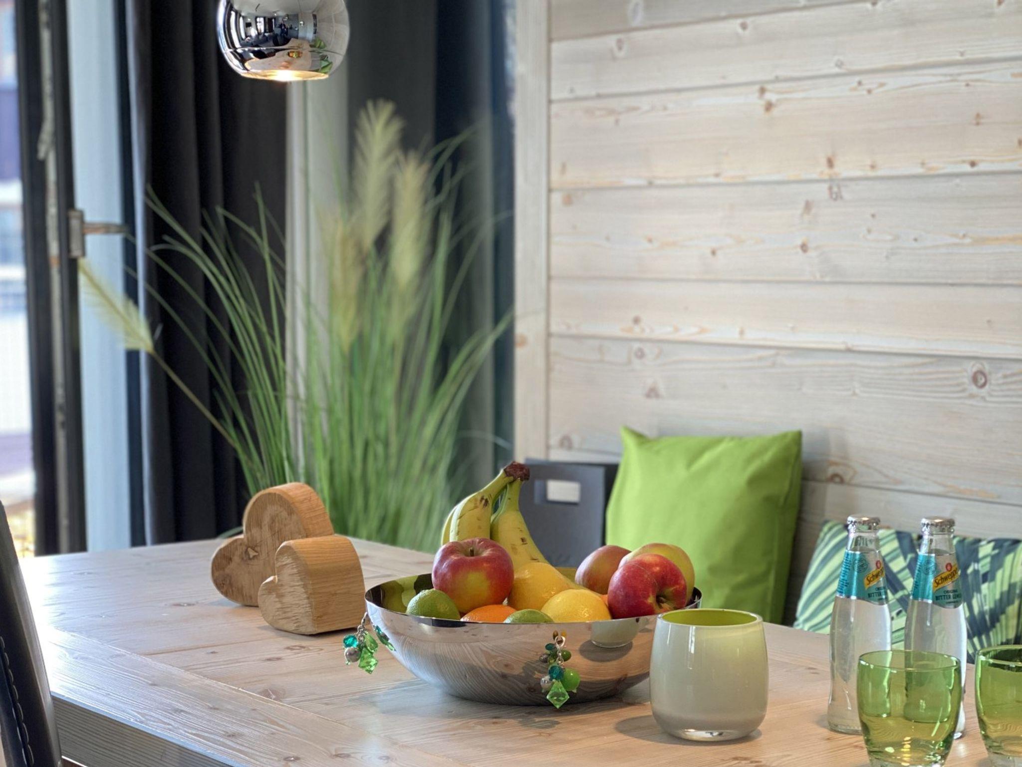 Sonnenhell begrüßt Sie die 55m² große 4-Sterne-Südwohnung mit attraktivem Süd-Sonnenbalkon. Nachts lacht der Mond durch die bodentiefen Fenster. Im stilvollen Wohnraum mit Flat TV und komfortabler Möblierung werden Sie sich so wohl wie daheim fühlen.