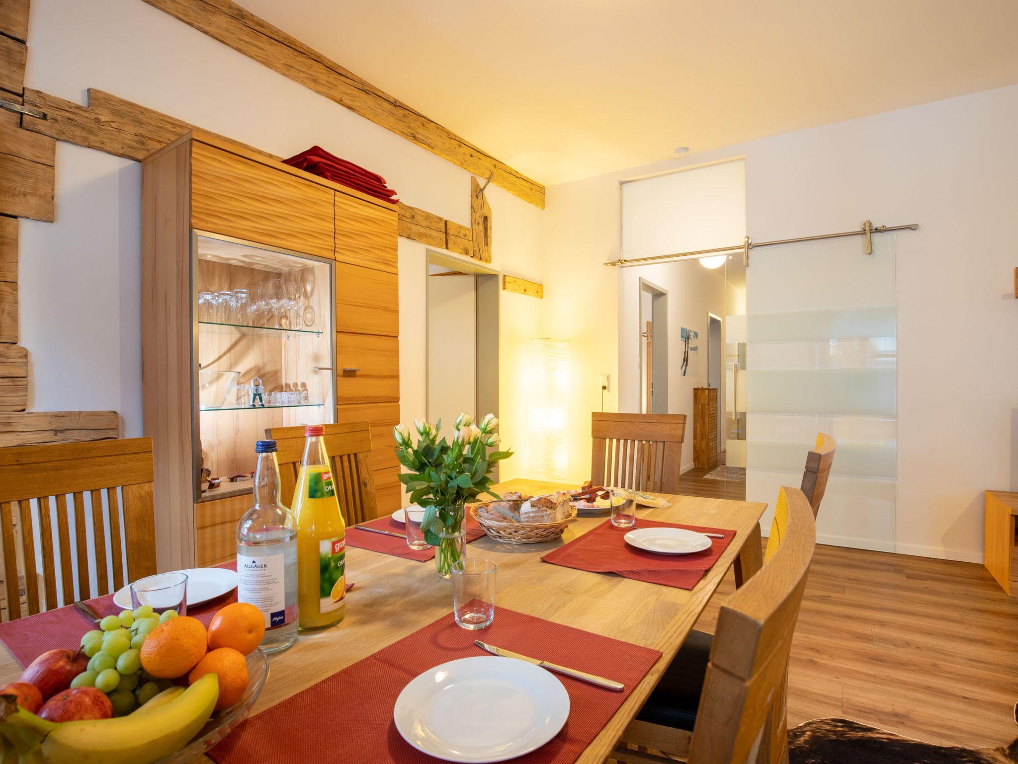 3 Zimmer, Küche. Bad Ferienwohnung mit 73 m² für 1 bis 4 Personen, 2 Schlafzimmer, großes Wohnzimmer, separate Küche, 2. Obergeschoß/Dachgeschoß, Westbalkon, Kinderzustellbett und Kinderhochstuhl auf Anfrage möglich
