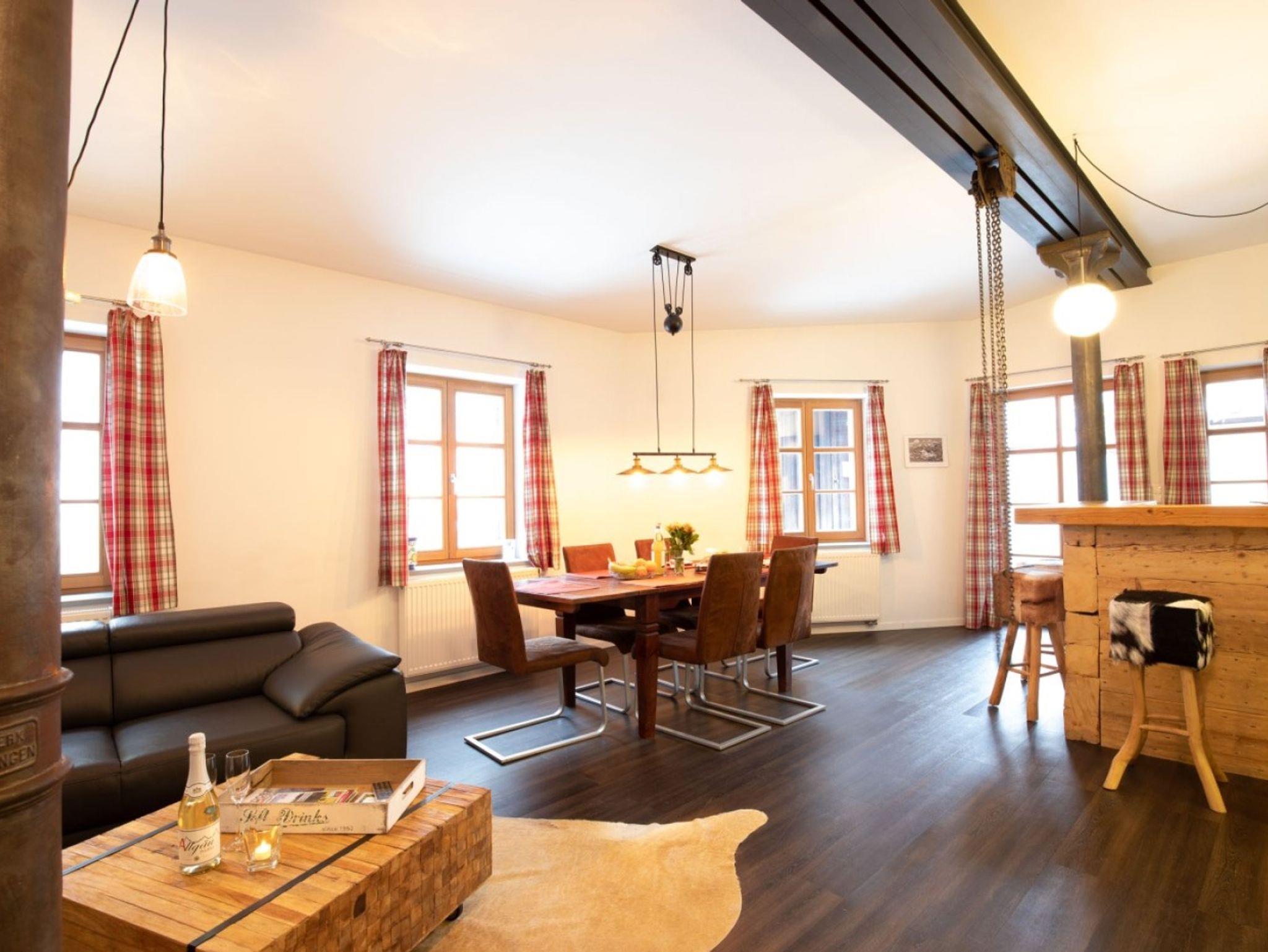 8 moderne, gemütliche Ferienwohnungen 49-102 m² für 1-6 Personen, im Zentrum, Fußgängerzone, Terrasse/ Balkone teilweise Bergblick, Sauna/Infrarot, Fahrradschuppen, beheizter Skikeller, ohne Auto erreichbar, Bahnhof in der Nähe, Parkplätze buchbar, Bergbahn Unlimited, Ski Oberstdorf Kleinwalsertal