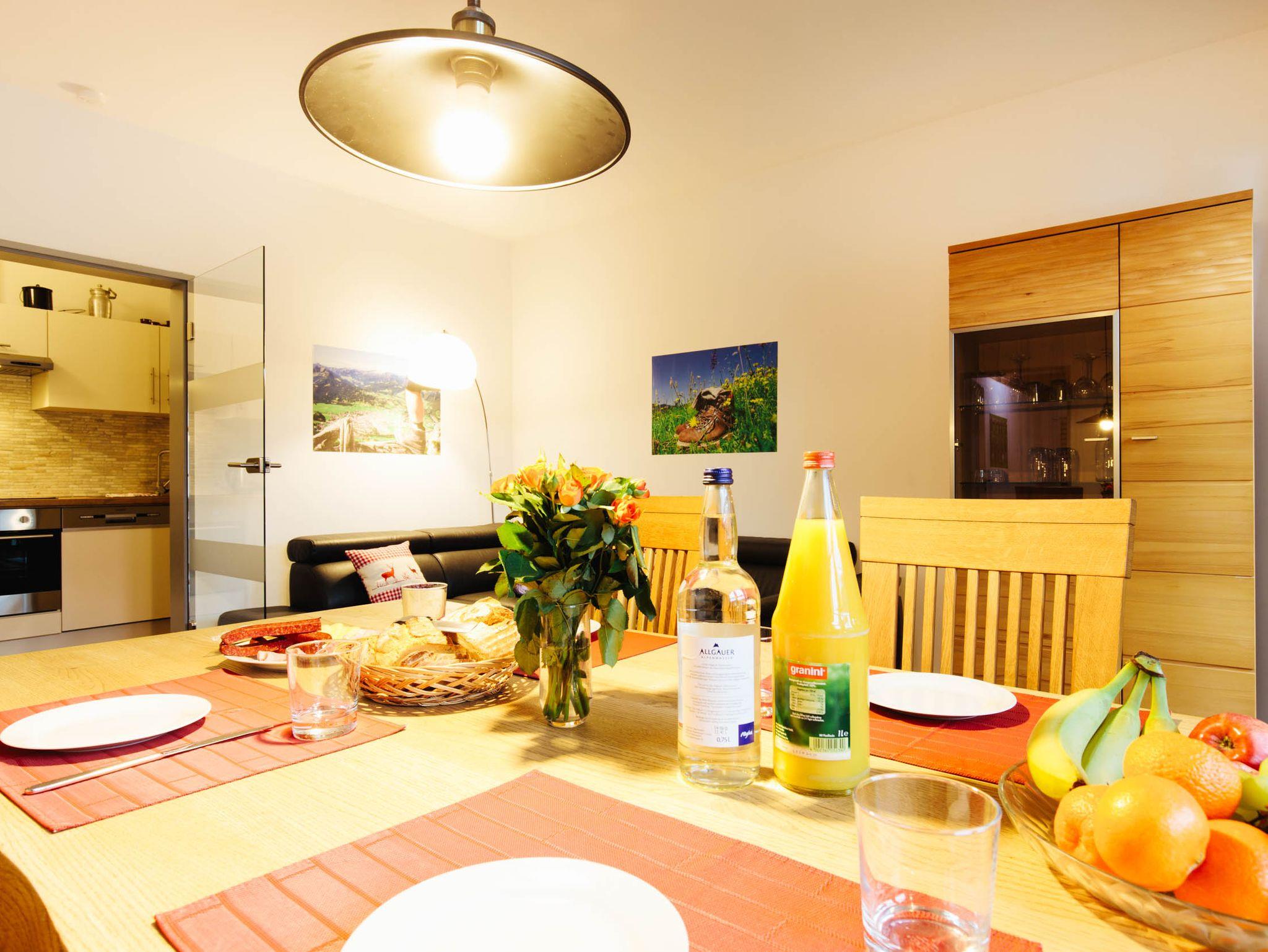 8 moderne, gemütliche Ferienwohnungen 49-102 m² für 1-6 Personen, im Zentrum, Fußgängerzone, Terrasse/ Balkone teilweise Bergblick, Sauna/Infrarot, Fahrradschuppen, beheizter Skikeller, ohne Auto erreichbar, Bahnhof in der Nähe, Parkplätze buchbar, Bergbahn Unlimited, Ski Oberstdorf Kleinwalsertal