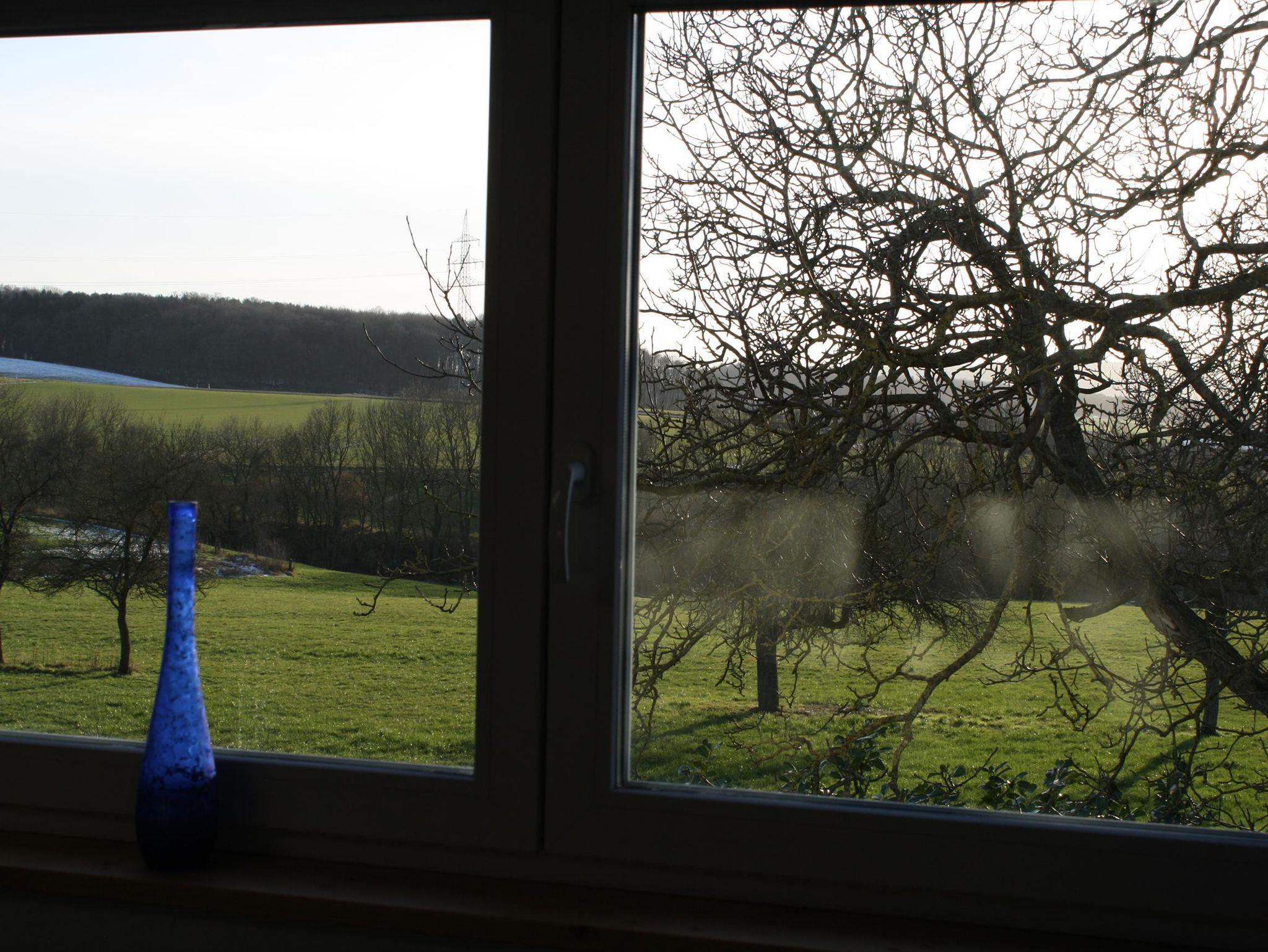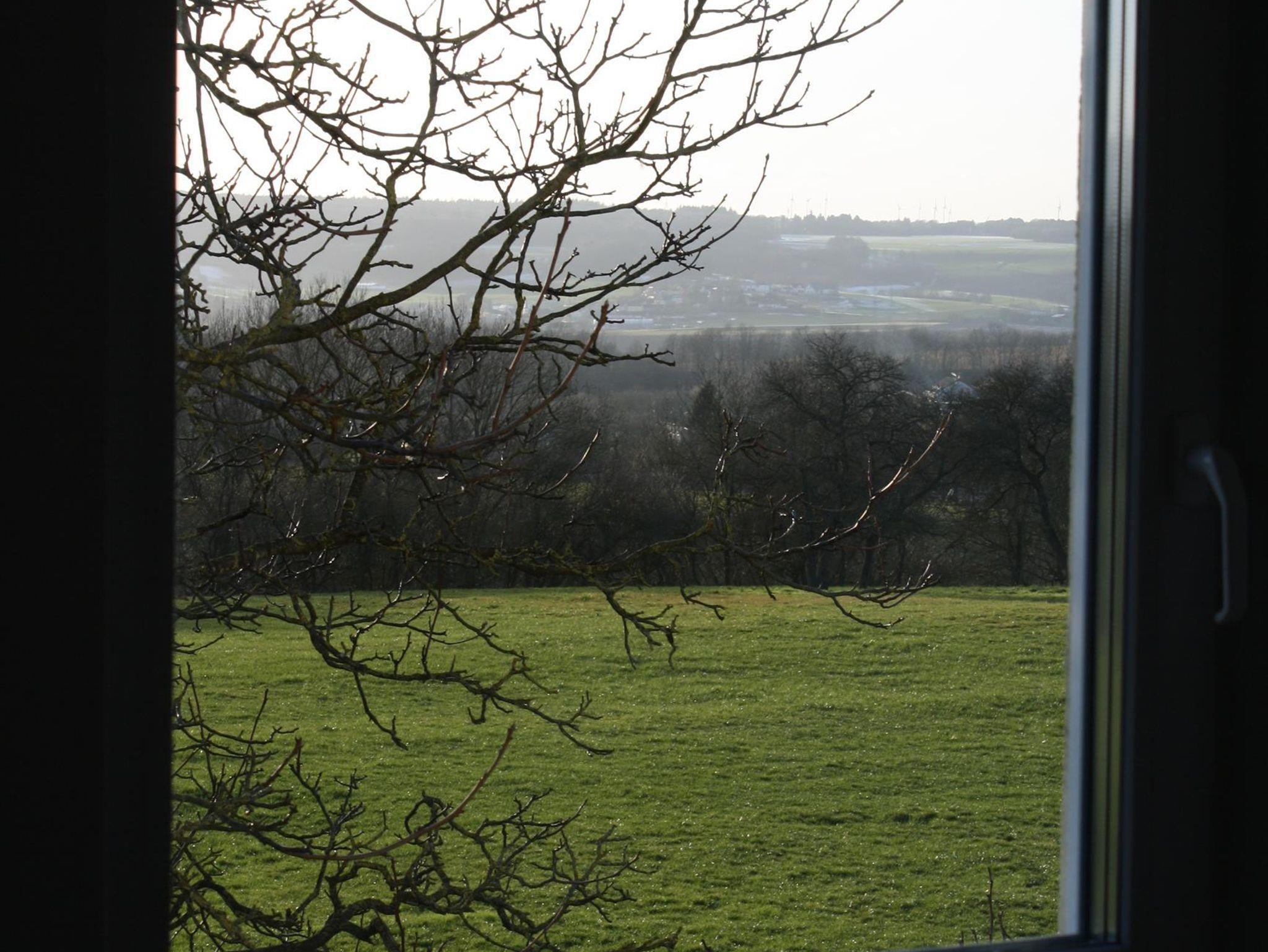 Eifelblick, die großzügige Wohnung auf der 1. Etage mit eigenem Zugang bietet neben Flur, Küche mit großem Essplatz, 1 großes Esszimmer, 2 Doppelschlafzimmer, 1 Duschbad, ein großes Wohnzimmer mit herrlichem Weitblick über das Nimstal und als Besonderheit eine separate kleine Bibliothek mit mehreren hundert Büchern aus den verschiedensten Bereichen. Diese Wohnung bietet viel Raum für vier Personen. Ausstattung: Küche mit Kühl-Gefrier-Kombi., 4-fach-Ceran-Kochfeld, Backofen, Dunstesse, Spülmaschine, Mikrowelle sowie diverse Elektro-Kleingeräte, Flachbild-Fernseher, Radio mit CD-Player, div. Gesellschaftsspiele, im Wohnzimmer ein Kaminofen für gemütliche Stunden. In den Schlafzimmern je 1 Doppelbett, sowie 2 Bademäntel und 1 Schranktresor, im großzügigen Duschbad sind Handtücher, Seife, Duschgel sowie ein Fön vorhanden