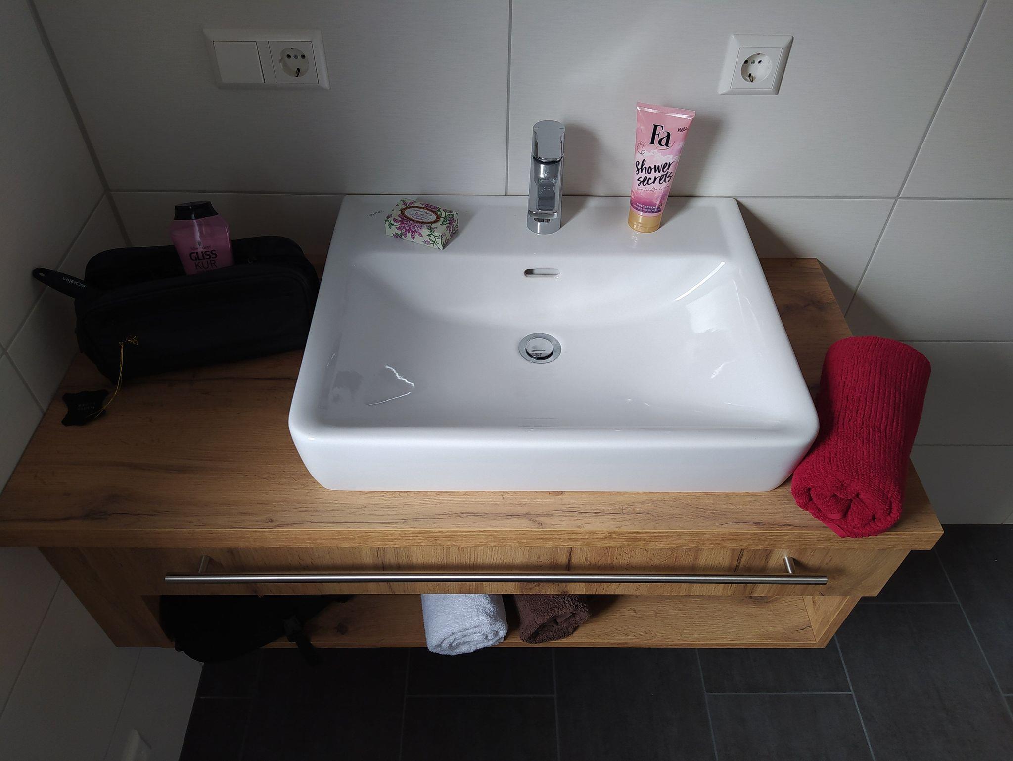 Bad: Handtücher, Fön.