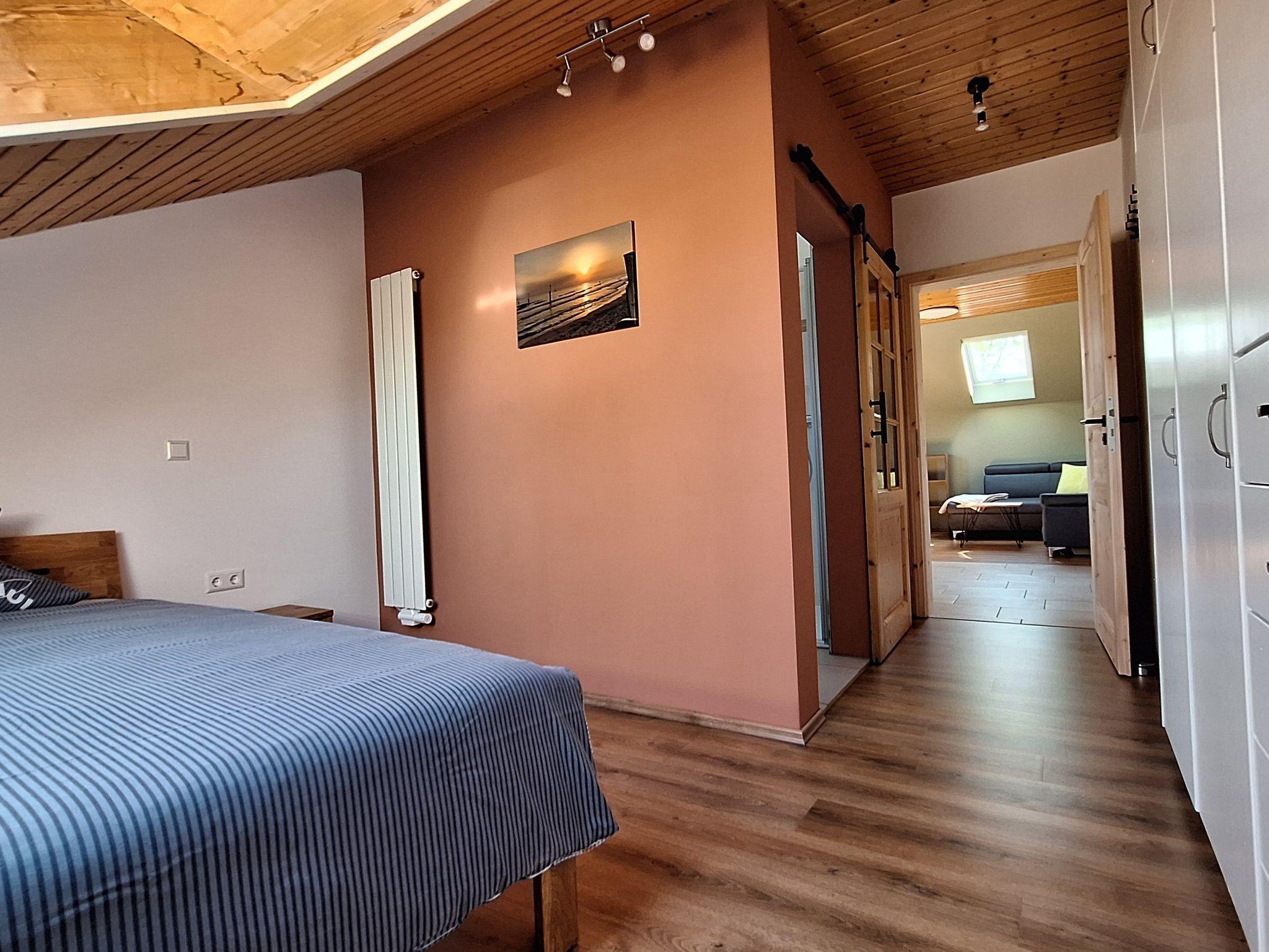 Das separate Schlafzimmer mit französischem Bett (140x200 cm) bietet Platz für 1-2 Personen.