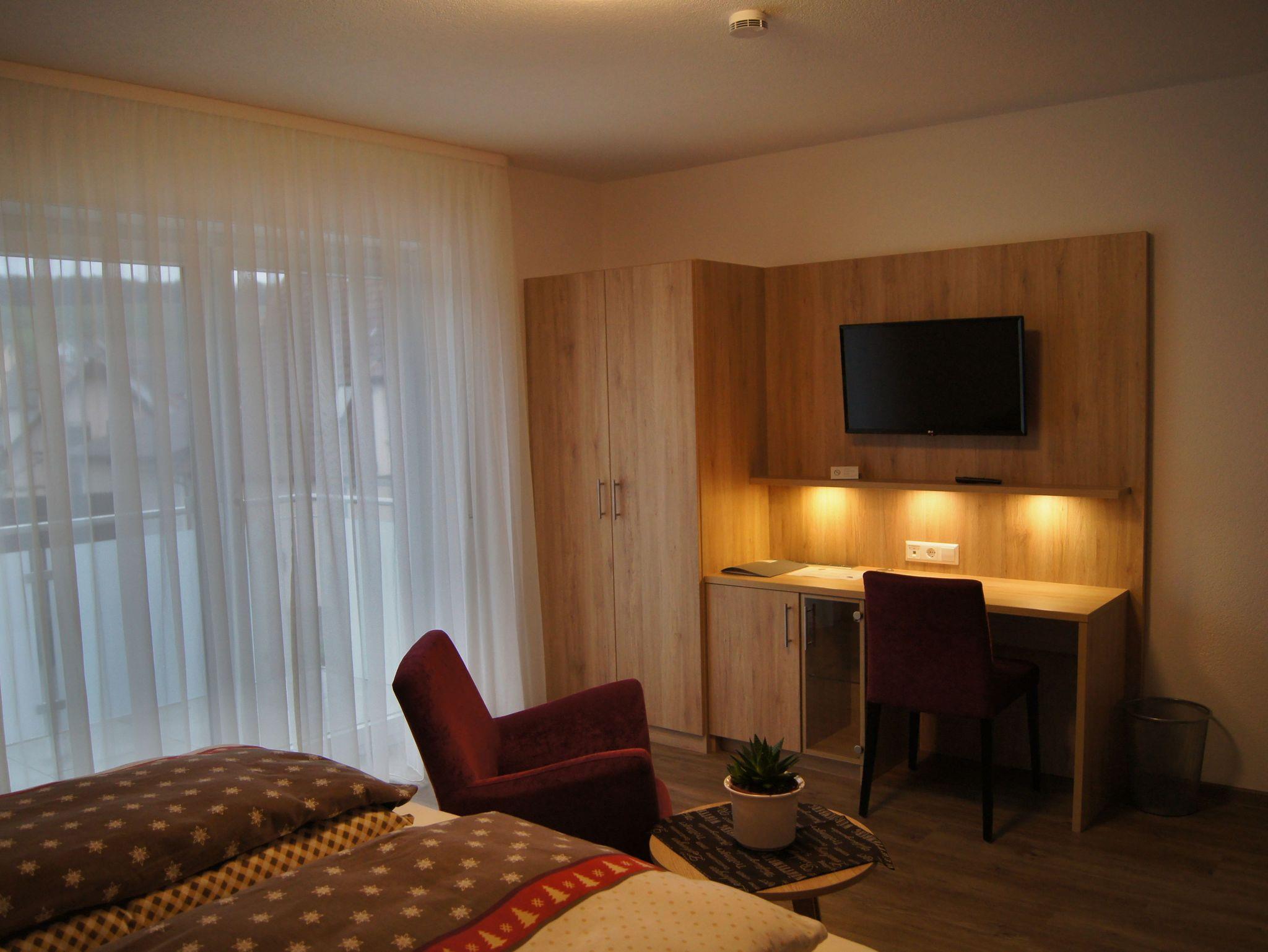 Ausstattung: Doppelbett,Schreibtisch,Fernseher, Tresor und einen Spiegel.
