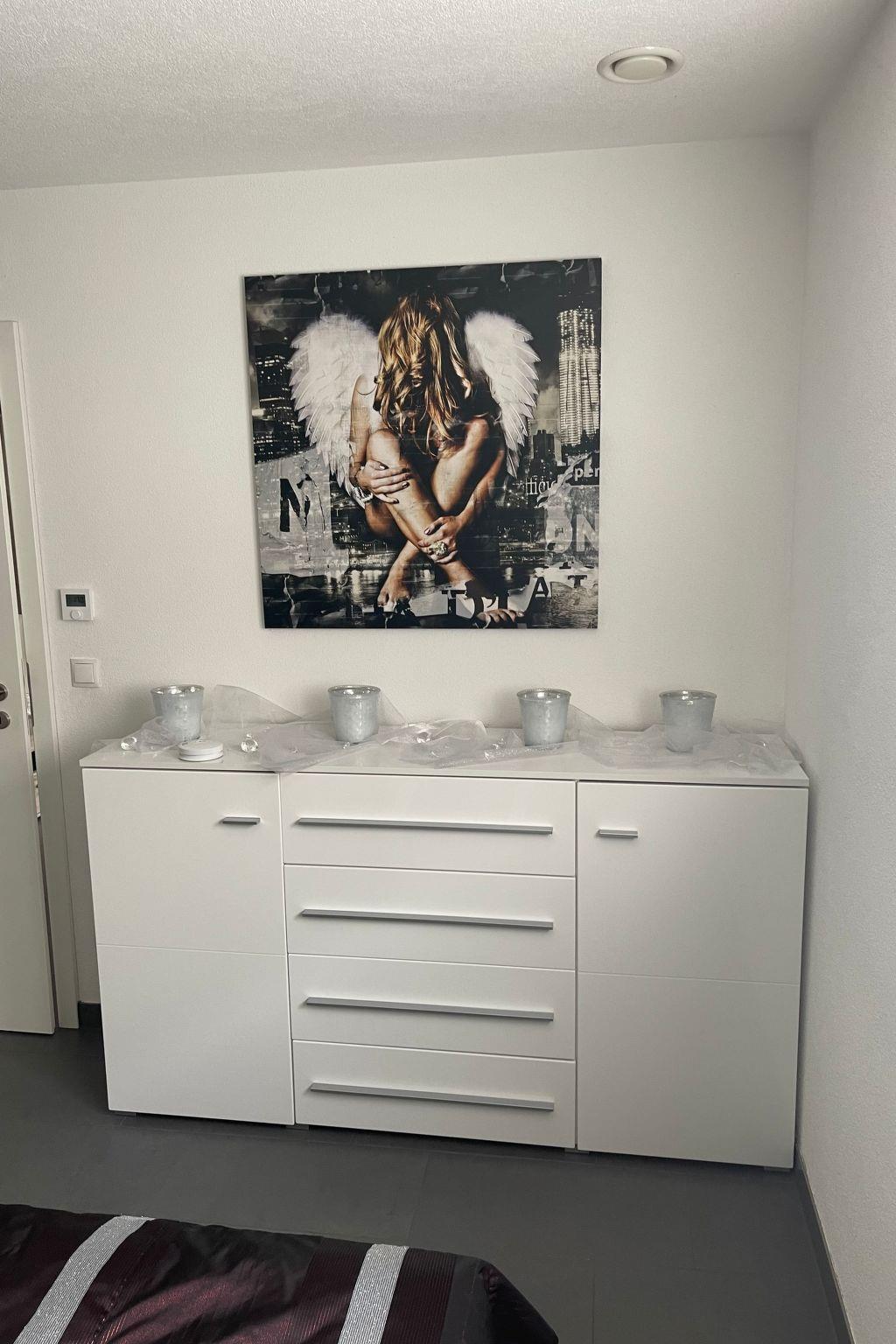 The bedroom offers plenty of storage space so that you don't have to live out of a suitcase. The left and right-hand sections of the wardrobe are completely at your disposal, as is the entire sideboard.