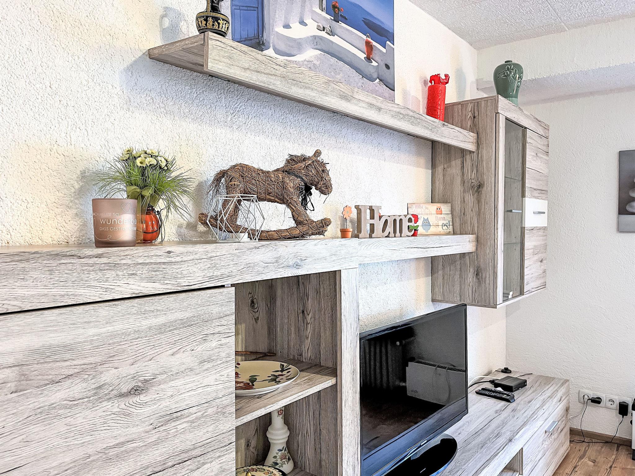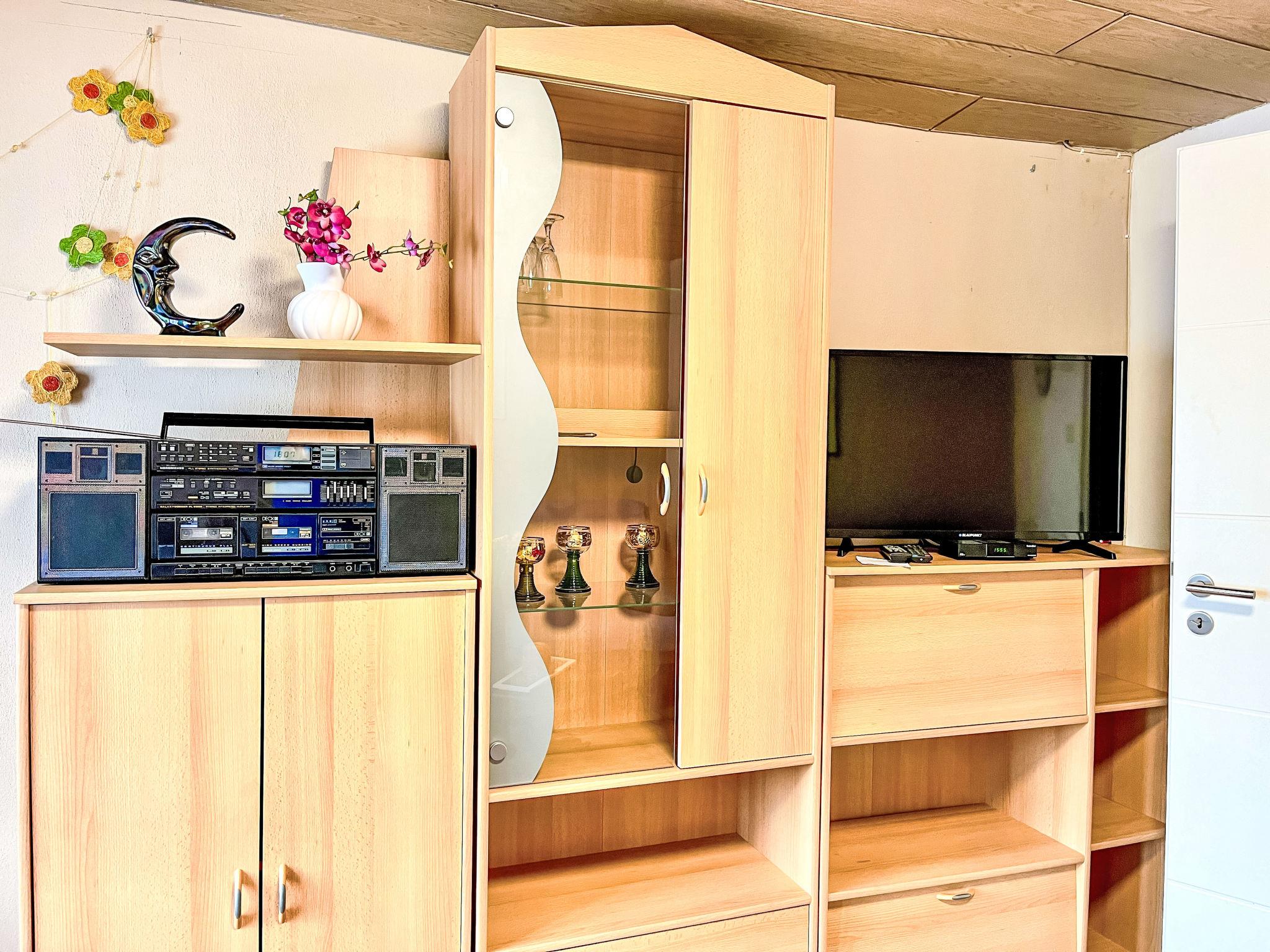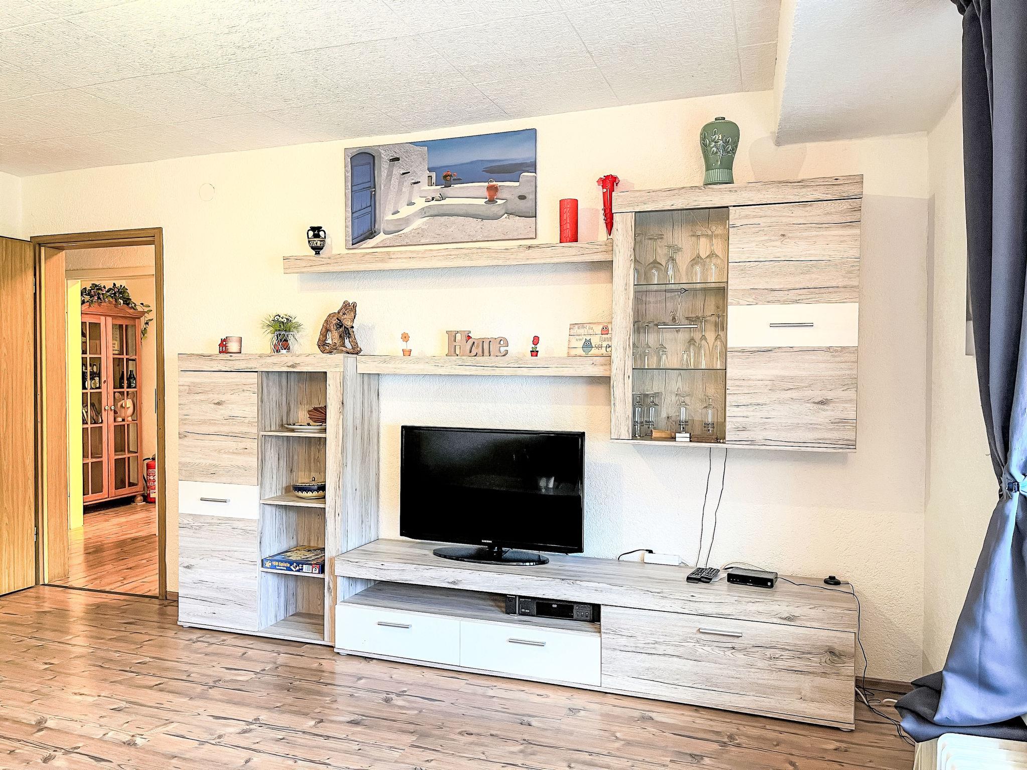"Holiday Home am Bostalsee", 5-room apartment 120 m2 on 1st floor. Object suitable for 8 adults. Modern and tasteful furnishings: living/dining room with 1 double sofabed (160 cm, length 180 cm), TV (flat screen). Living room with 1 double sofabed (350 cm, length 220 cm), TV (flat screen). 2 double bedrooms, each room with 1 double bed. Dining room with dining table. Kitchen (oven, dishwasher, 4 ceramic glass hob hotplates, toaster, kettle, microwave, electric coffee machine) with dining nook. 2 showers/WC. Oil heating. Facilities: children's high chair, baby cot for up to 2 year olds. Internet (WiFi, free). Parking at the house. Please note: non-smokers only. Maximum 1 pet/ dog allowed. Smoke alarm, fire extinguisher. Please note: This holiday apartment is a combination of the apartments DE6692.601.1 and DE6692.601.2, each with a fully equipped kitchen. The apartments are connected by a small hallway. Covered smoking area outside.