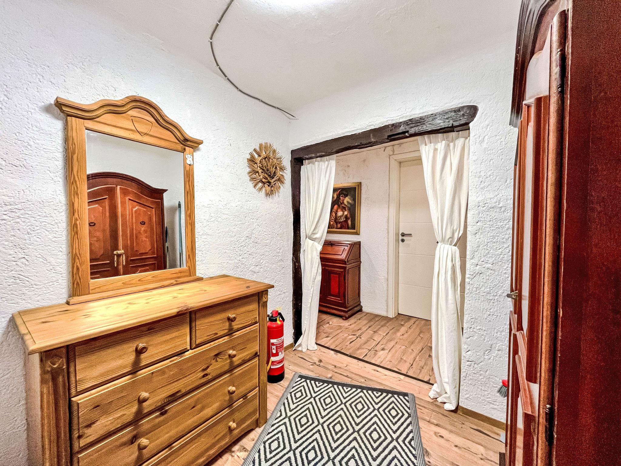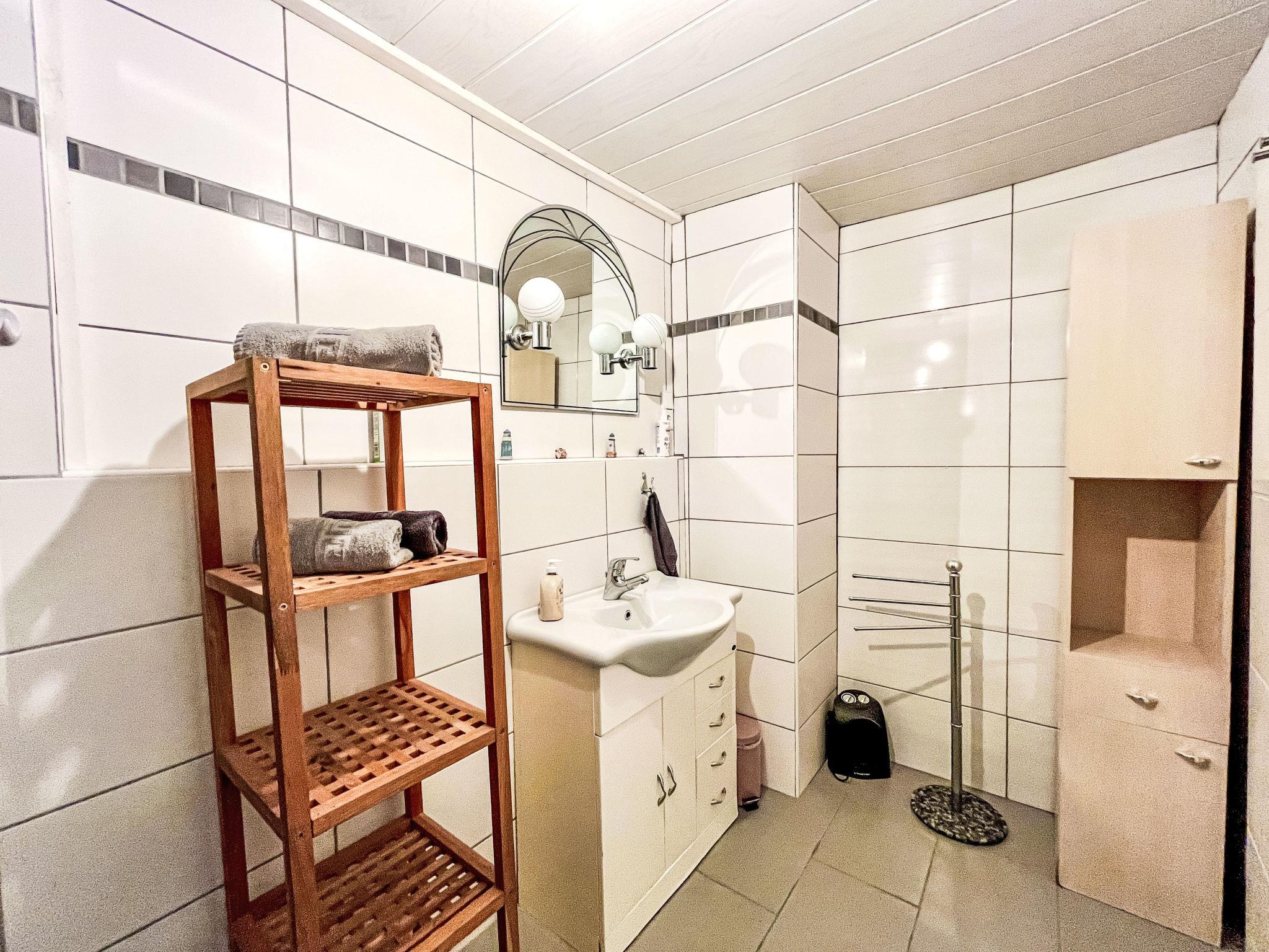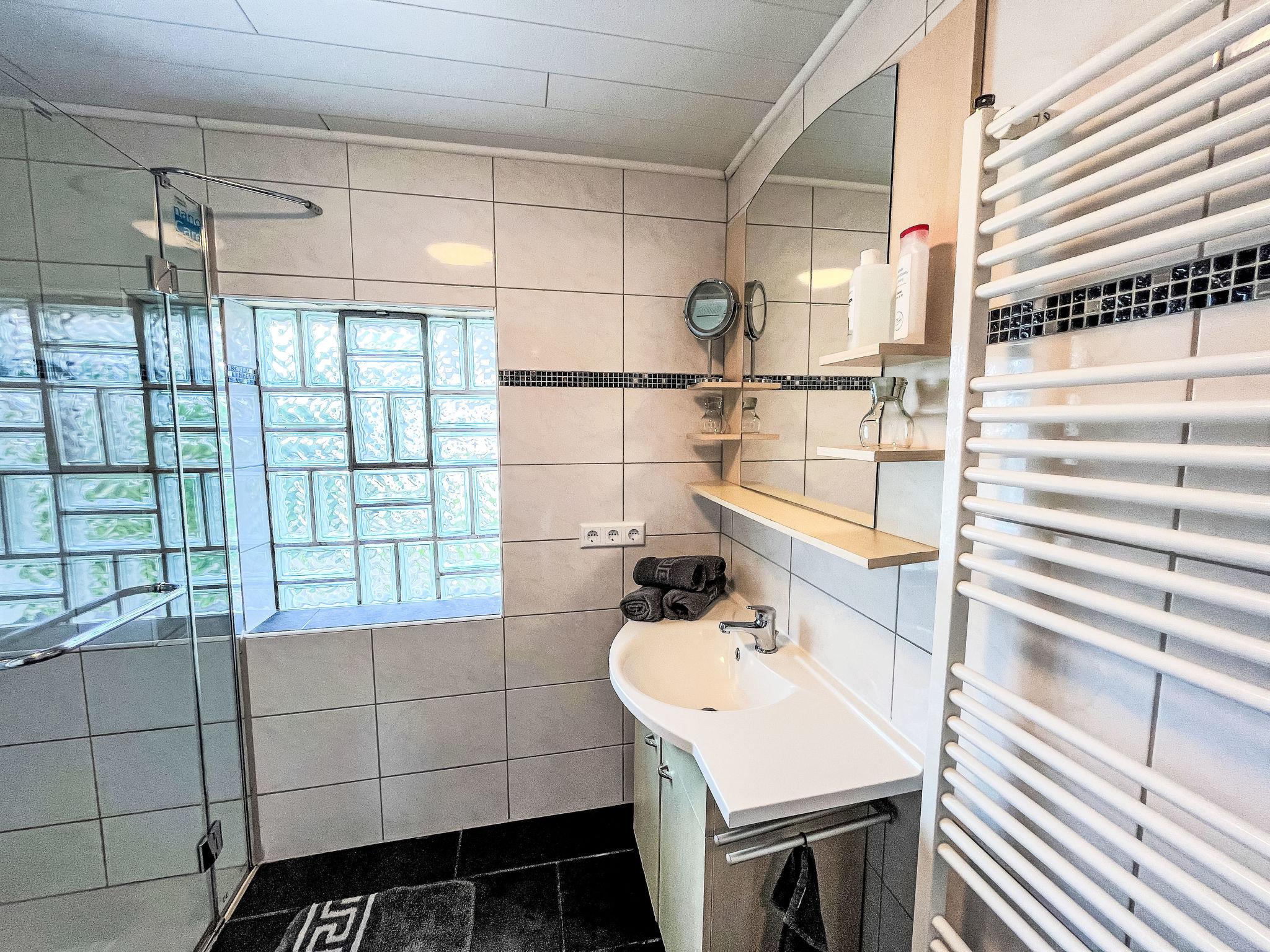 "Holiday Home am Bostalsee", 5-room apartment 120 m2 on 1st floor. Object suitable for 8 adults. Modern and tasteful furnishings: living/dining room with 1 double sofabed (160 cm, length 180 cm), TV (flat screen). Living room with 1 double sofabed (350 cm, length 220 cm), TV (flat screen). 2 double bedrooms, each room with 1 double bed. Dining room with dining table. Kitchen (oven, dishwasher, 4 ceramic glass hob hotplates, toaster, kettle, microwave, electric coffee machine) with dining nook. 2 showers/WC. Oil heating. Facilities: children's high chair, baby cot for up to 2 year olds. Internet (WiFi, free). Parking at the house. Please note: non-smokers only. Maximum 1 pet/ dog allowed. Smoke alarm, fire extinguisher. Please note: This holiday apartment is a combination of the apartments DE6692.601.1 and DE6692.601.2, each with a fully equipped kitchen. The apartments are connected by a small hallway. Covered smoking area outside.