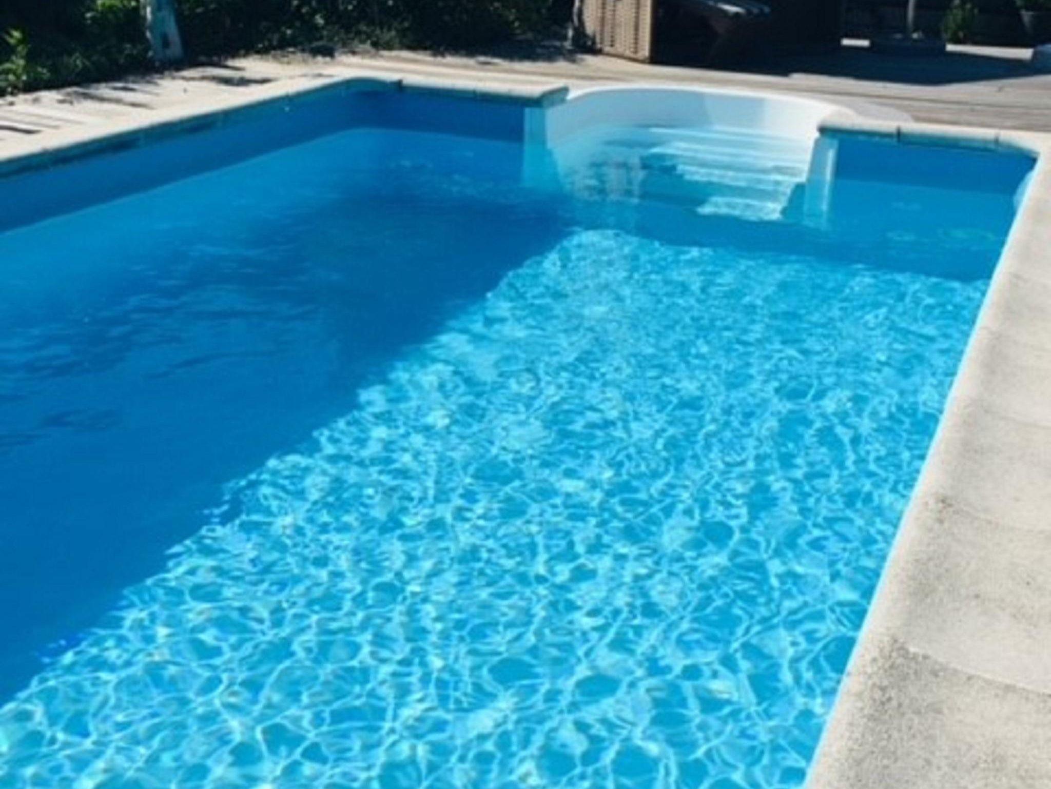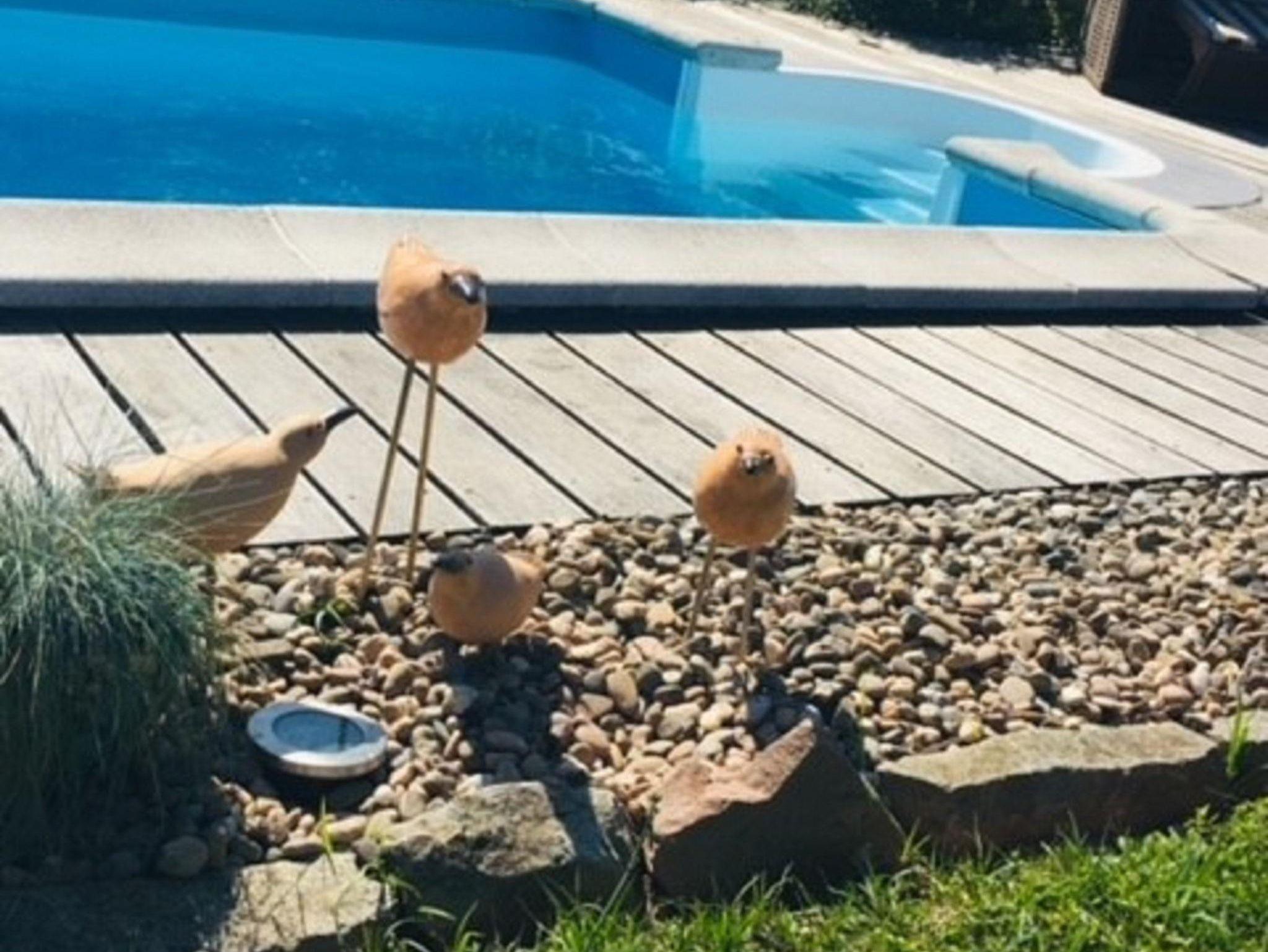 Der große Garten mit Pool, der auf Anfrage von den Gästen im Sommer gerne mitbenutzt werden darf, befindet sich hinter dem Haus.