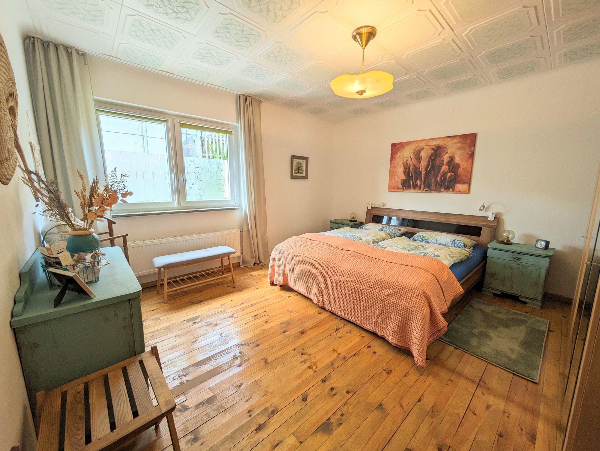 Die neu renovierte, ruhige Ferienwohnung befindet sich im Erdgeschoss. Wohnzimmer und Wintergarten befinden sich auf der Südseite. Eine kleine Sitzecke hinter dem Haus lädt zum Verweilen ein. Der nahe gelegene Wald ist für ausgedehnte Spaziergänge und Wanderungen bestens geeignet (Bostalsee ca. 45 min).
