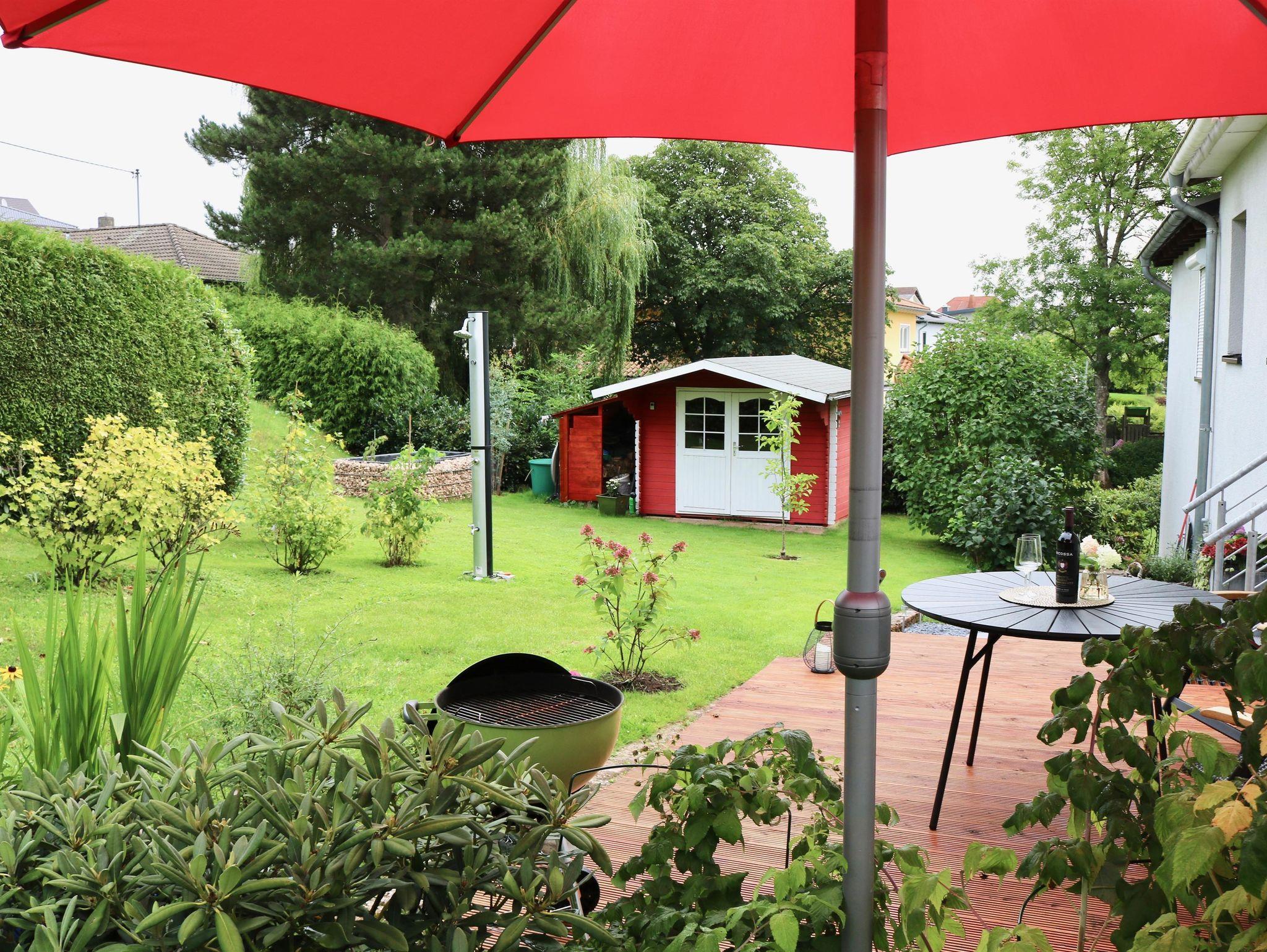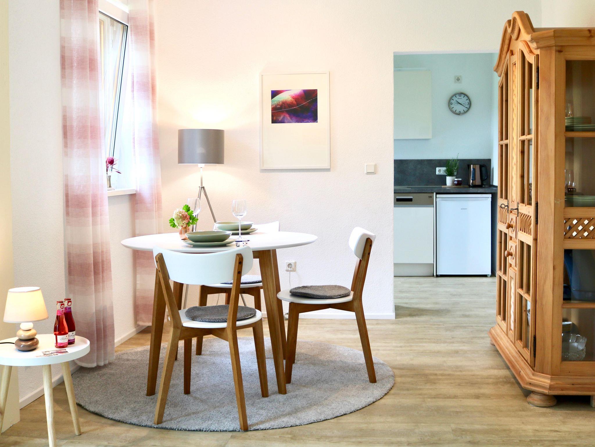 Unsere helle, gemütliche Wohnung hat einen separaten Eingang, einen überdachten Sonnenbalkon und eine Terrasse im Garten und bietet auf ca. 90 m² ausreichend Platz zum Schlafen, Kochen und Beisammensein, zum Durchatmen und auf neue Gedanken kommen. Einfach mal Zeit haben für sich, zu Zweit oder als Familie.