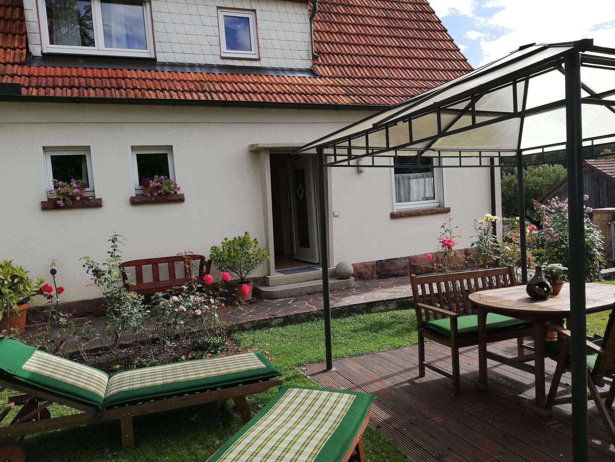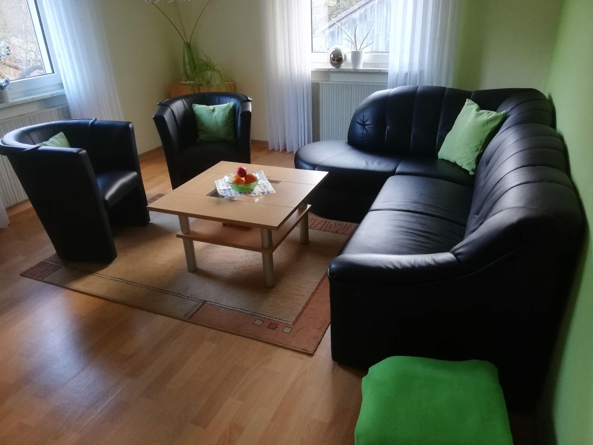 Unsere freundliche und sonnige Ferienwohnung liegt im Biosphärenreservat Rhön und bietet mit 104 m² Wohnfläche über 2 Etagen Platz für 1 bis 6 Personen. Das fränkische Wohnhaus hat einen separaten Eingang und eigenen Garten. Im Erdgeschoss lädt das gemütliche Wohnzimmer mit Couch-Ecke, Sesseln und Flachbild-TV zum Verweilen ein. Die Küche ist komplett ausgestattet mit Geschirrspüler, Kühlschrank inkl. Gefrierfach, Herd mit Backofen, Mikrowelle, Wasserkocher, Eierkocher, Toaster, eine Kaffeefiltermaschine und einem großen Esstisch. Weiterhin befinden sich im Erdgeschoss 1 Schlafzimmer mit einem Doppelbett, ein geräumiges Badezimmer mit großer Dusche und ein separates WC. Im Obergeschoss stehen 3 weitere Schlafzimmer zur Verfügung. Dabei verfügt ein Schlafzimmer über ein Doppelbett, ein Schlafzimmer über ein Einzelbett und ein Schlafzimmer über 1 Schlafcouch mit Waschbecken. Ein Kinderbett ist vorhanden und kann bei Bedarf zusätzlich beigestellt werden. Im Garten mit einer überdachten Tischgruppe können Sie entspannte Tage auf unseren Liegen und lauschige Abende verbringen. Bitte beachten Sie, dass keine Haustiere erlaubt sind und im Haus nicht geraucht wird, da unsere Wohnung allergikerfreundlich geführt wird. Das WLAN ist für Sie kostenfrei und als Willkommensgruß stehen eine Obstschale und ein regionales Mineralwasser für Sie bereit. Wir freuen uns auf Familien, für Paare oder Einzelpersonen ist der Wohnbereich im Erdgeschoss ideal. Eine Vermietung an Monteure ist nicht gewünscht.