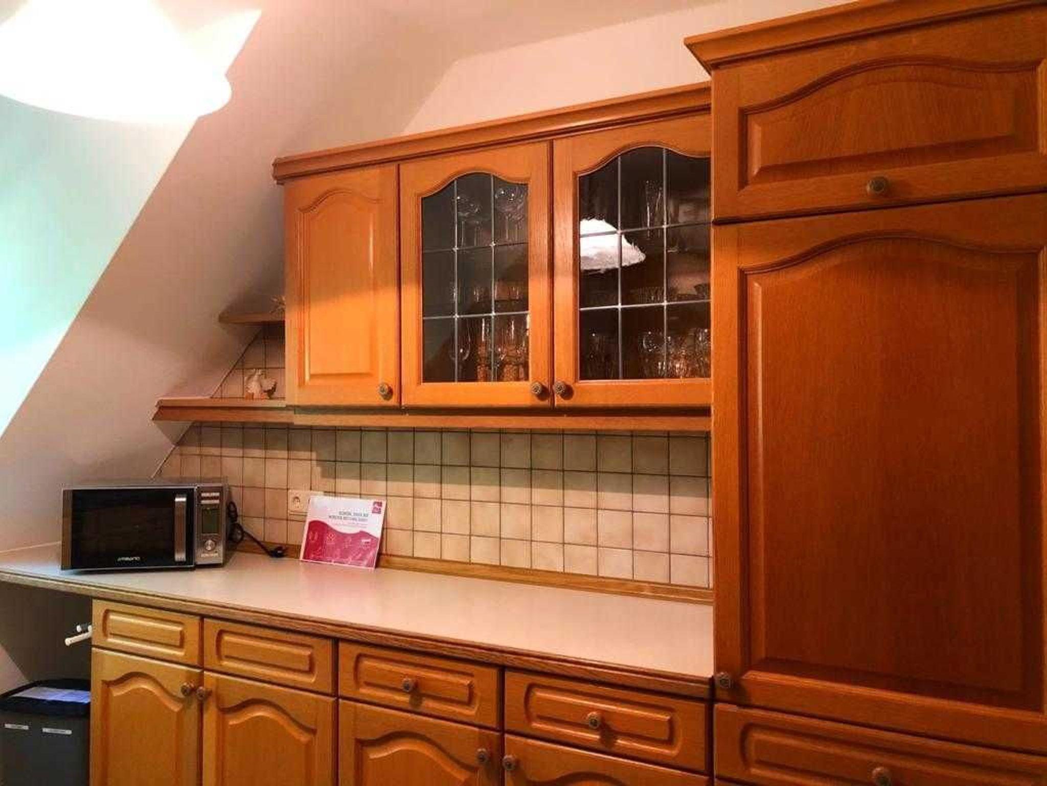 Die Küche ist folgendermaßen ausgestattet: E-Herd mit Backröhre, Geschirrspülmaschine, Mikrowelle, Kaffeemaschine, Toaster, Kühlschrank, Geschirr und Töpfe usw.. Sie werden alles finden, um Ihre Liebste/ Liebsten kulinarisch verwöhnen zu können.