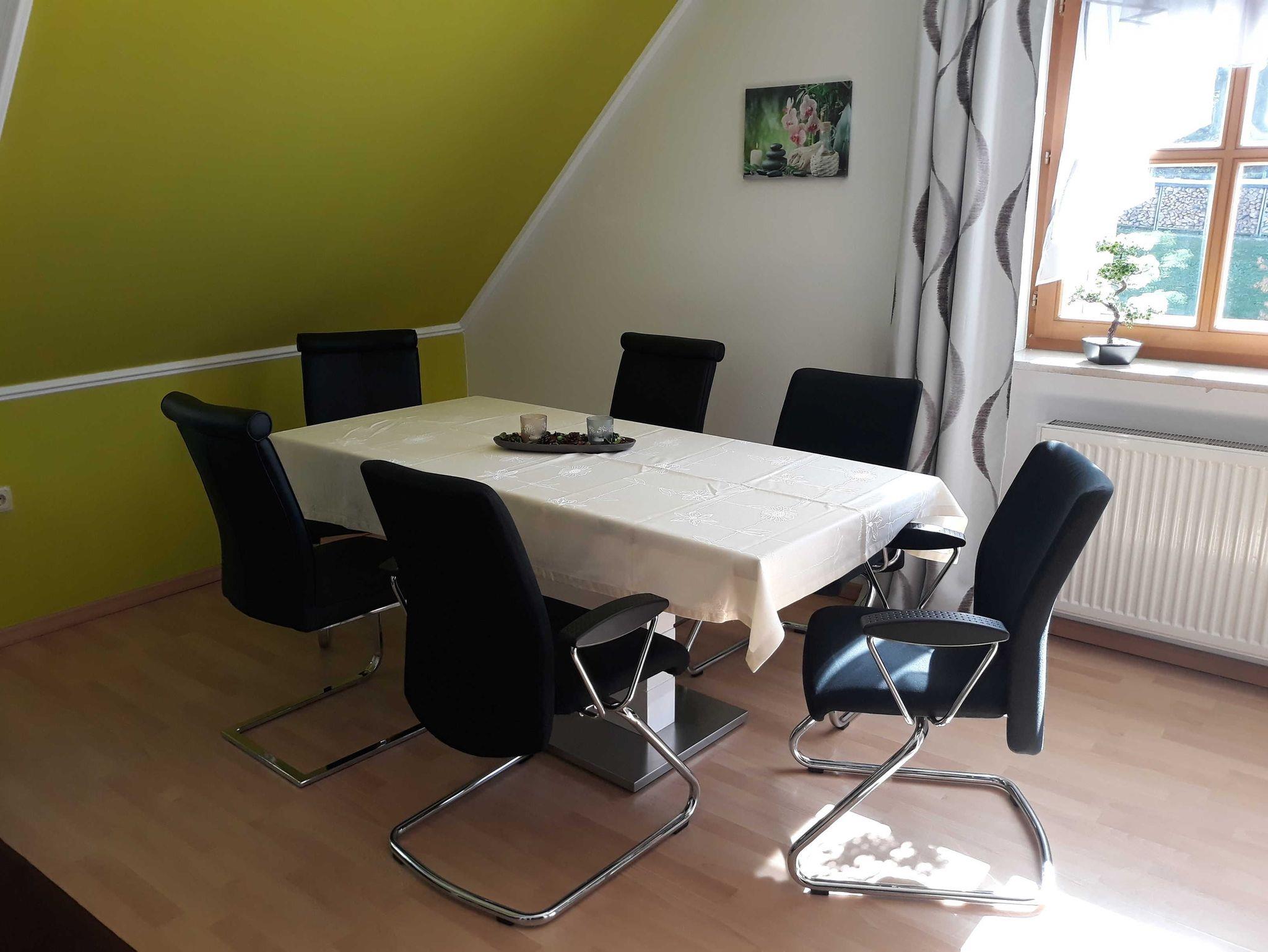 Die 100m² große Fewo liegt im 1. OG und hat Platz für bis zu 6 Erwachsene + 2 Kinder (bis 3 Jahre).