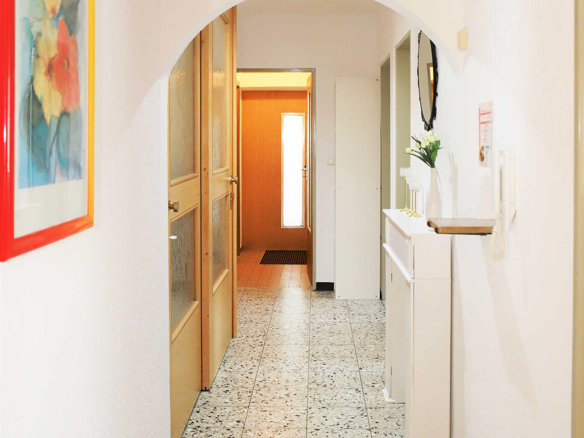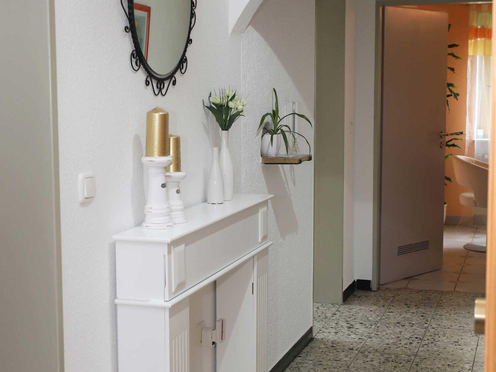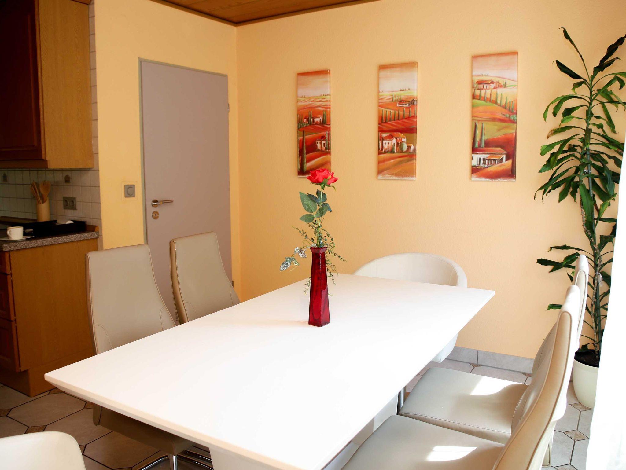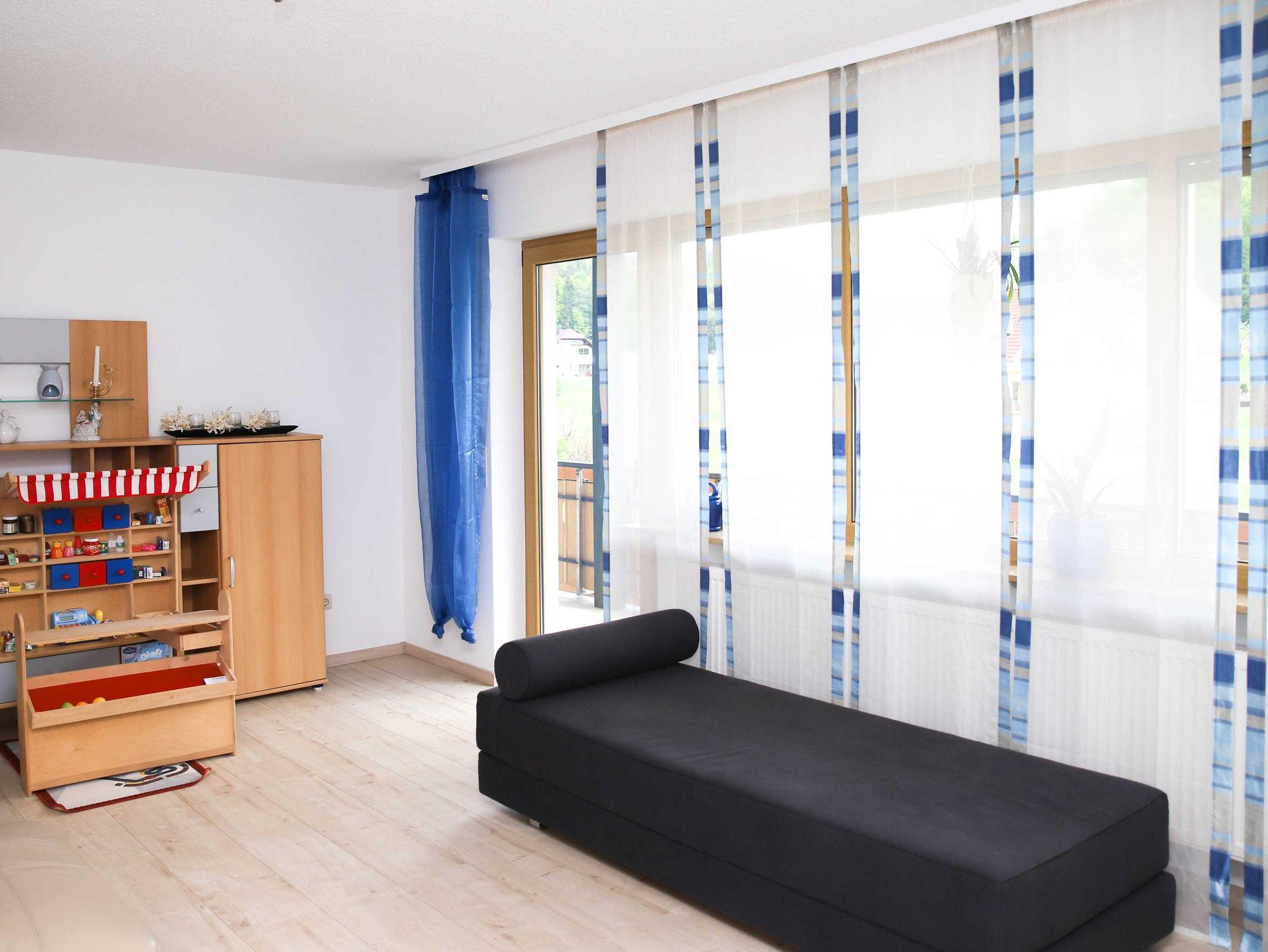 Unsere geräumige Ferienwohnung bietet auf ca. 100m² Platz für 2-5 Personen. Das Wohnzimmer ist mit einem 2-teiligen Sofa, TV/Radio und einer Spielekonsole Wii ausgestattet. Hier gelangen Sie auch direkt auf den langen Balkon. Die Wohnung besitzt ebenso eine abgeschlossene und vollausgestattete Küche mit Elektroofen sowie einem Holzofen und einer gemütlichen Essecke. Das Schlafzimmer 1 verfügt über einen großen Kleiderschrank mit Doppelbett, das Schlafzimmer 2 über 2 Einzelbetten, die als Etagenbett oder nebeneinander aufgestellt werden können. Das Badezimmer ist mit Wanne und WC ausgestattet, Fön ist vorhanden. Ein weiteres Zustellbett ist möglich.