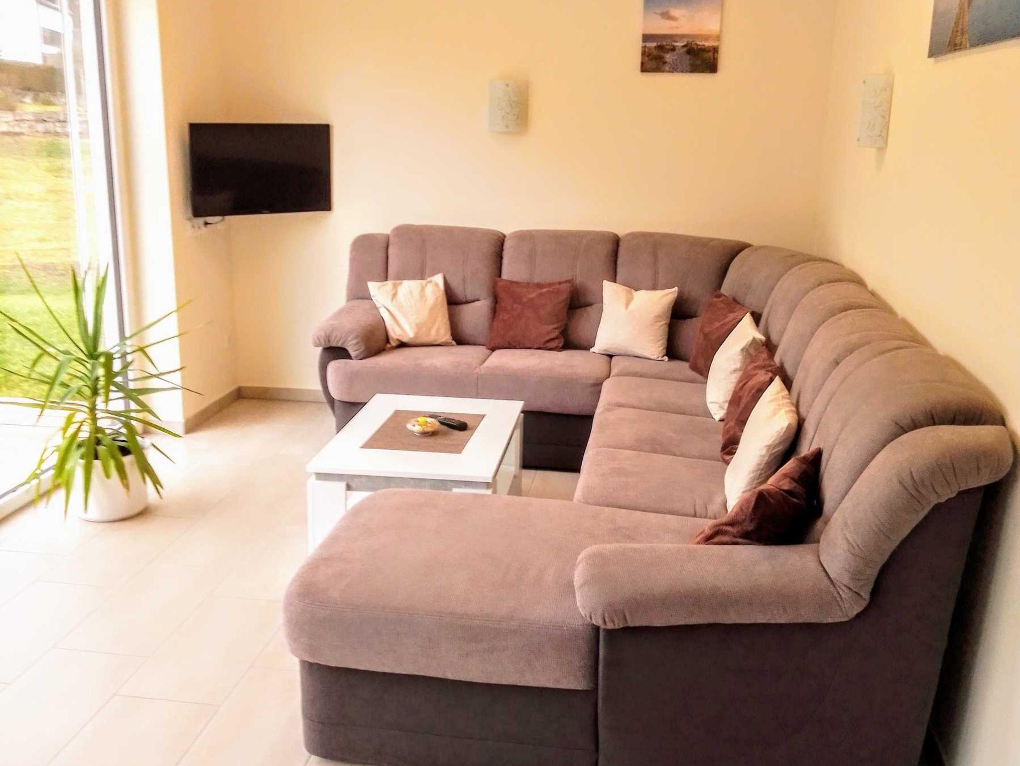 Unser Ferienhaus bietet Platz für 2-4 Personen und ein Kleinkind. Es besteht aus einem sonnigen, lichtdurchflutetem Wohnraum mit großer Fensterfront. Dieser ist eingerichtet mit einer gemütlichen Couchgarnitur einem schönen Essplatz für 6 Personen sowie einer komplett ausgestatteten Einbauküche. Außerdem hat das Haus 2 Schlafzimmer, eines davon mit Doppelbett, einem großen Schiebetürenschrank und Platz für ein Kinderbett (dies ist natürlich vorhanden). Das zweite Schlafzimmer ist eingerichtet mit 2 Einzelbetten und einem Kleiderschrank. Das Bad verfügt über eine bodentiefe Dusche mit Regenduschkopf, einem Handtuchheizkörper und natürlich einem Fön. Außerdem hat unser Ferienhaus kostenloses W-Lan und Telefon, Fußbodenheizug und elektrische Rollos im ganzen Haus sowie einen Flachbildfernseher mit Sat/TV. Vom Wohnraum gelangen sie direkt auf die große Terrasse, welche mit einer elektrischen Markise beschattet werden kann. Bettwäsche und Handtücher sind ebenfalls vorhanden.