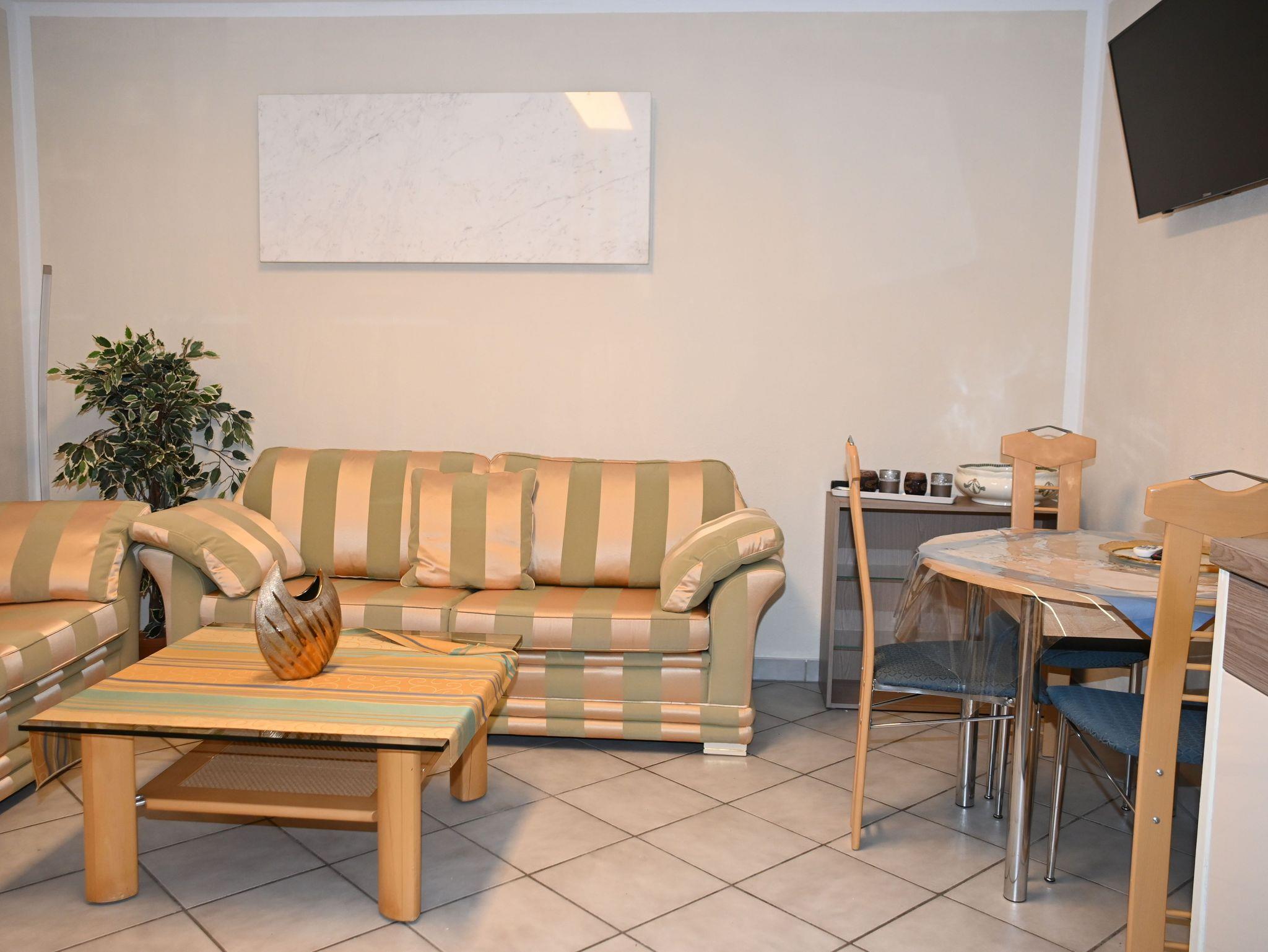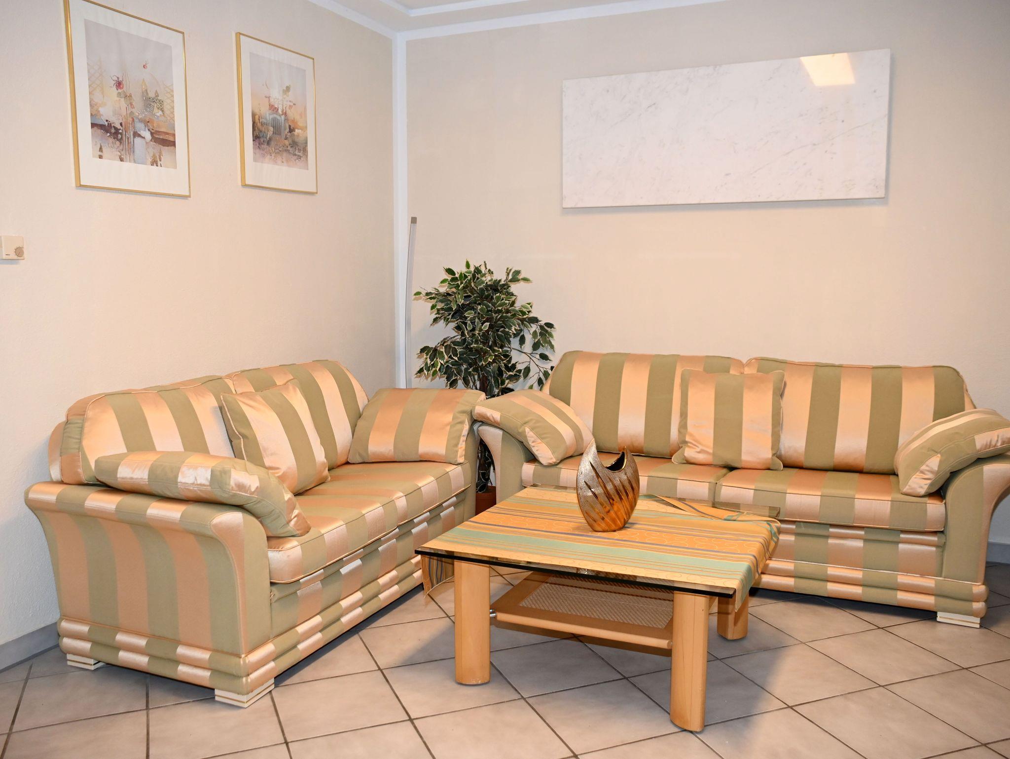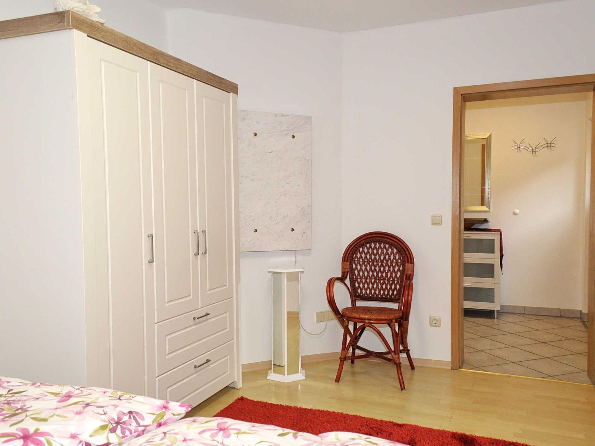 Die Ferienwohnung befindet sich in einem gepflegten Einfamilienhaus und bietet Platz für 3 Personen. Ein Zustellbett für Kinder bis 4 Jahre ist möglich. Die Wohnung wird 2020 erstmalig vermietet, ist ca. 60 qm groß und besitzt einen separaten Eingang. Die gemütliche Wohnküche ist ausgestattet mit einer modernen Küchenzeile, der Wohnbereich mit einer Ledercouch und einem kleinen Essplatz für 3 Personen. Das geräumige Schlafzimmer mit modernem Doppelbett lädt zum Ausruhen ein. Ein weiteres Zimmer ist mit einem Einzelbett ausgestattet. Das Badezimmer ist mit Dusche und Doppelwaschbecken ausgebaut. Eine moderne Elektroheizung mit Ökostrom beheizt die gesamte Wohnung. Für kalte Tage bietet ein Kaminofen gemütliche Wären. Kostenloses WLAN ist in der Wohnung verfügbar. Im Aussenbereich befindet sich eine Sitzgruppe mit Grillmöglichkeit. Ein kostenloser Parkplatz direkt vor der Wohnung steht zur Verfügung.
