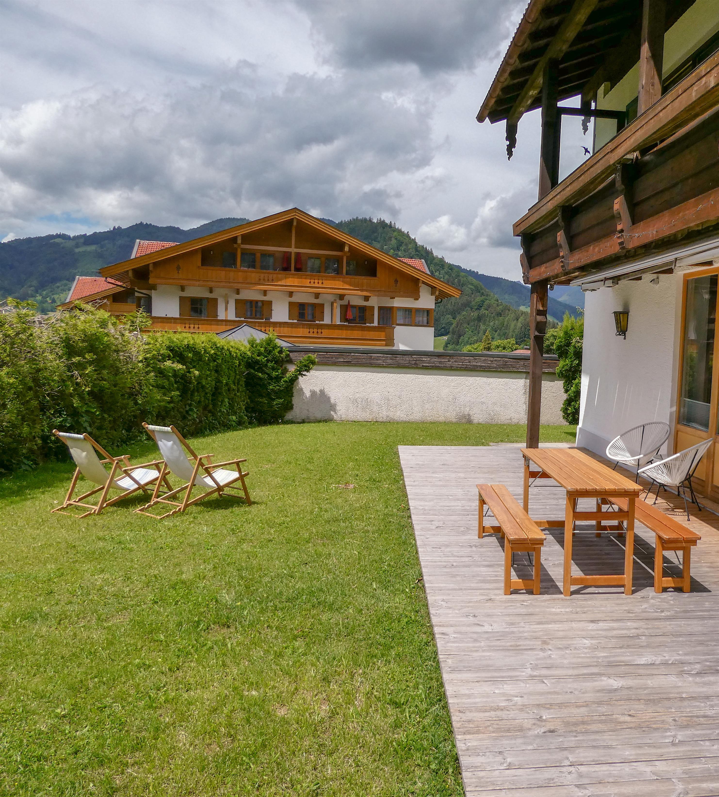 Das Apartment im Erdgeschoss besticht mit einer riesigen Terrasse auf der sonnigen Südseite. Hier kannst du von früh bis spät die wärmenden Strahlen genießen und den Blick auf das imposante Bergmassiv der Kampenwand schweifen lassen. Im Schlafzimmer weckt dich morgens sanft die Sonne, während du bereits den nächsten erlebnisreichen Tag planst.